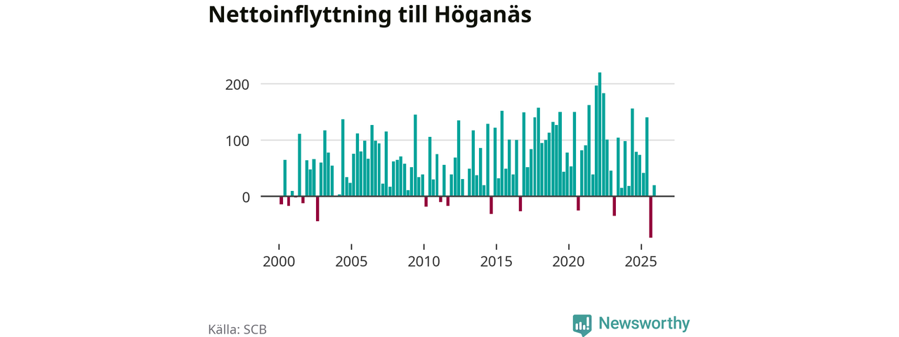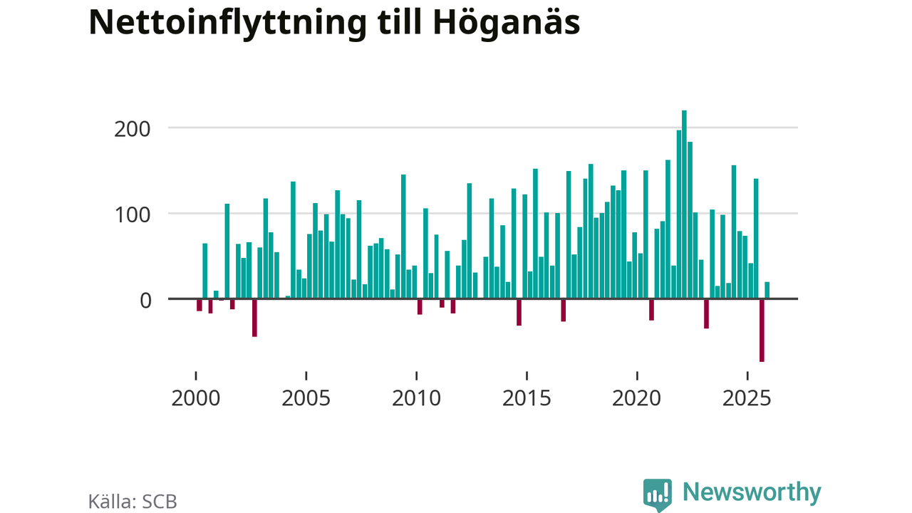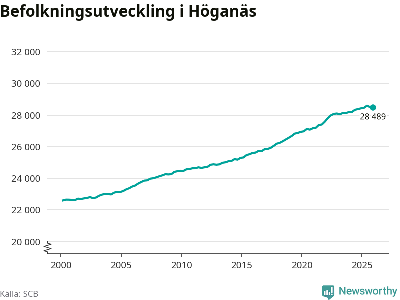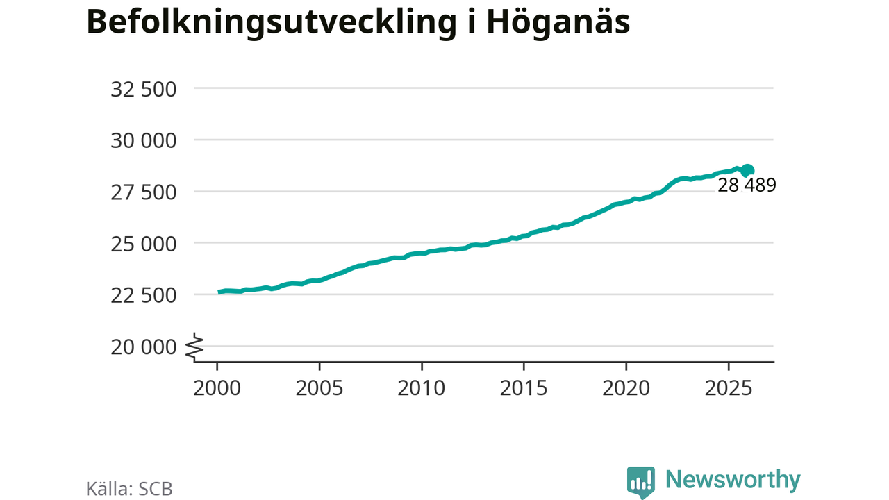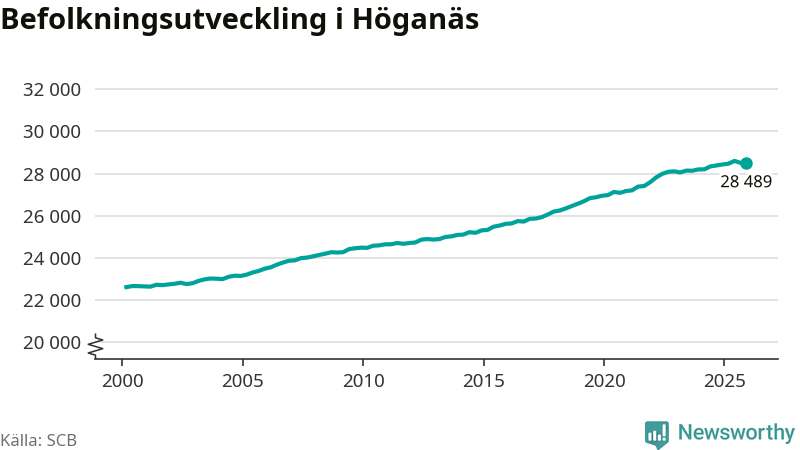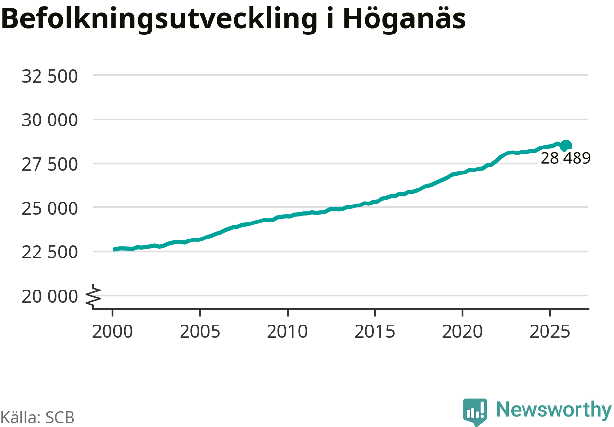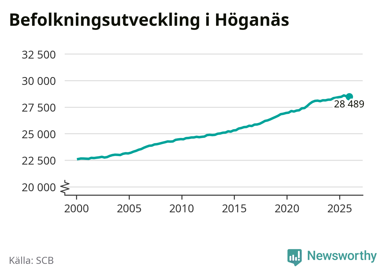 Befolkningen minskade i Höganäs kommun under det fjärde kvartalet 2025. Den 31 december bodde enligt SCB:s senaste siffror 28 489 personer i kommunen, vilket är 20 färre än i slutet av tredje kvartalet.