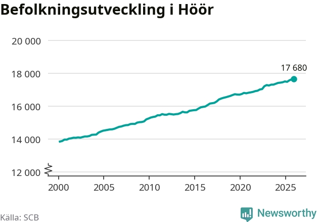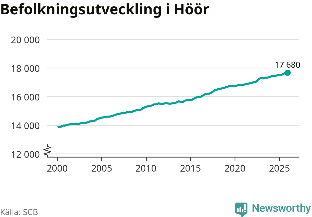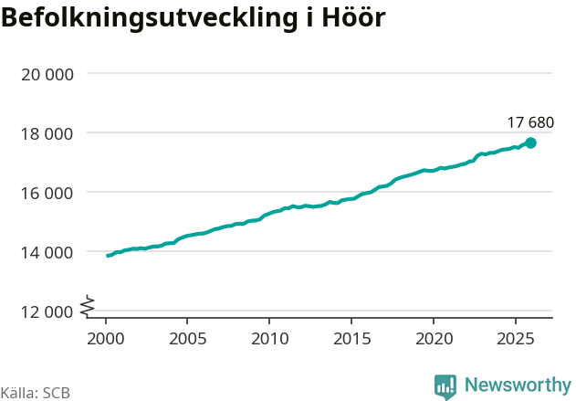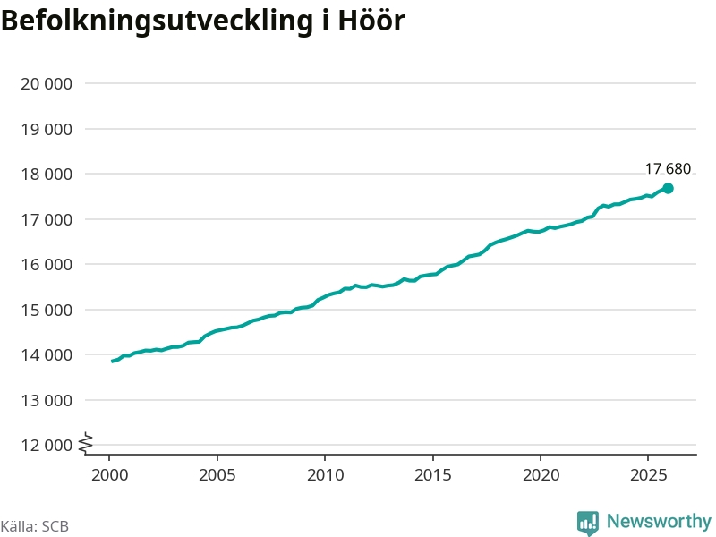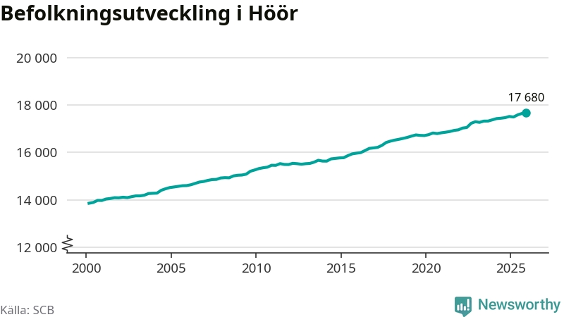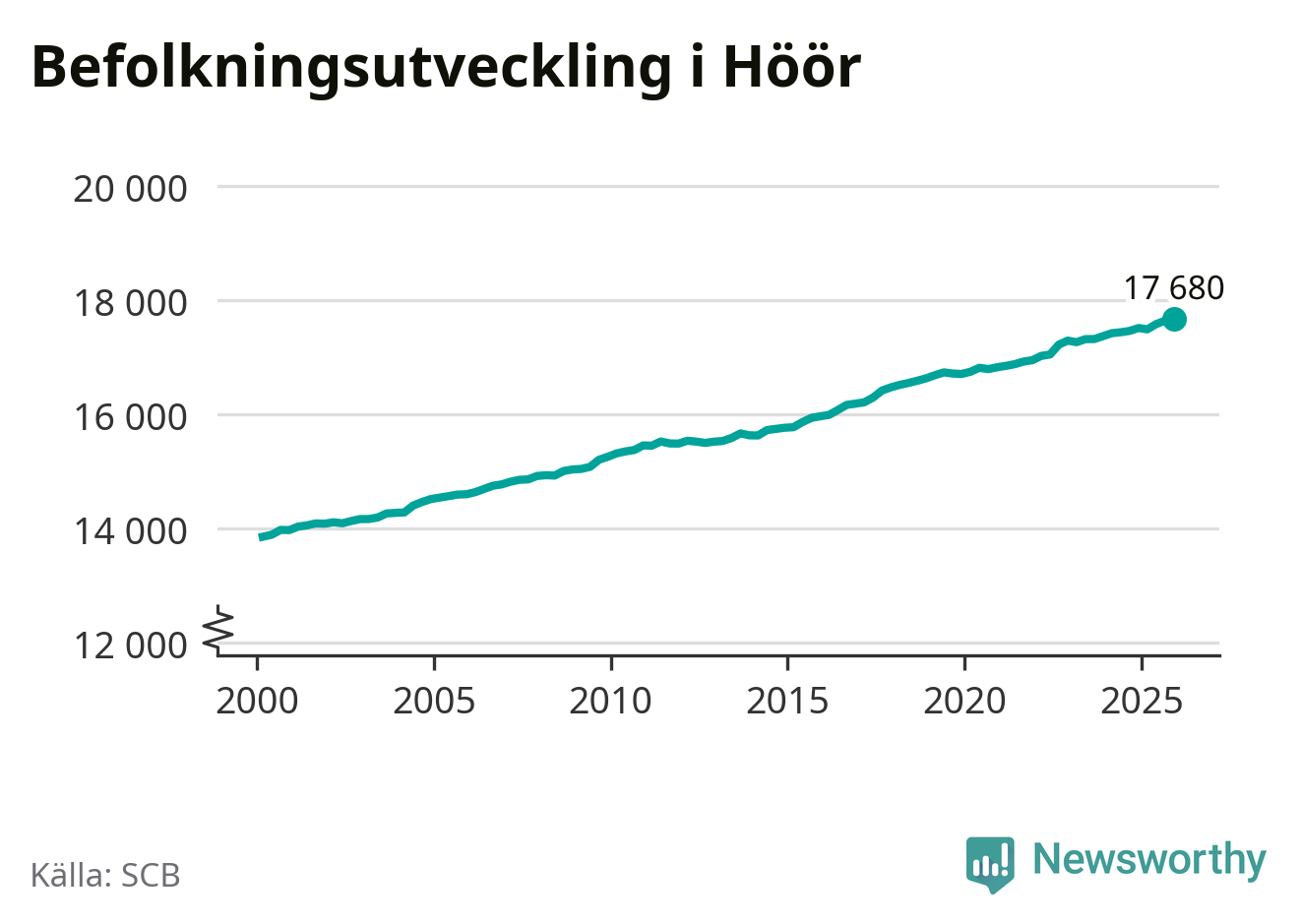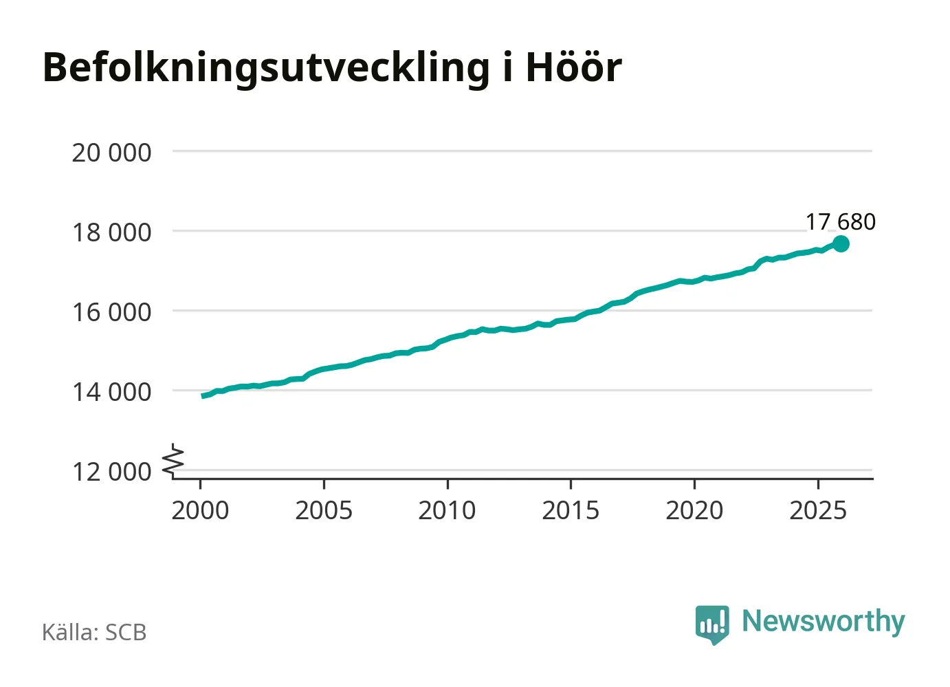 Befolkningen ökade i Höörs kommun under det fjärde kvartalet 2025. Den 31 december bodde enligt SCB:s senaste siffror 17 680 personer i kommunen, vilket är 33 fler än i slutet av tredje kvartalet.