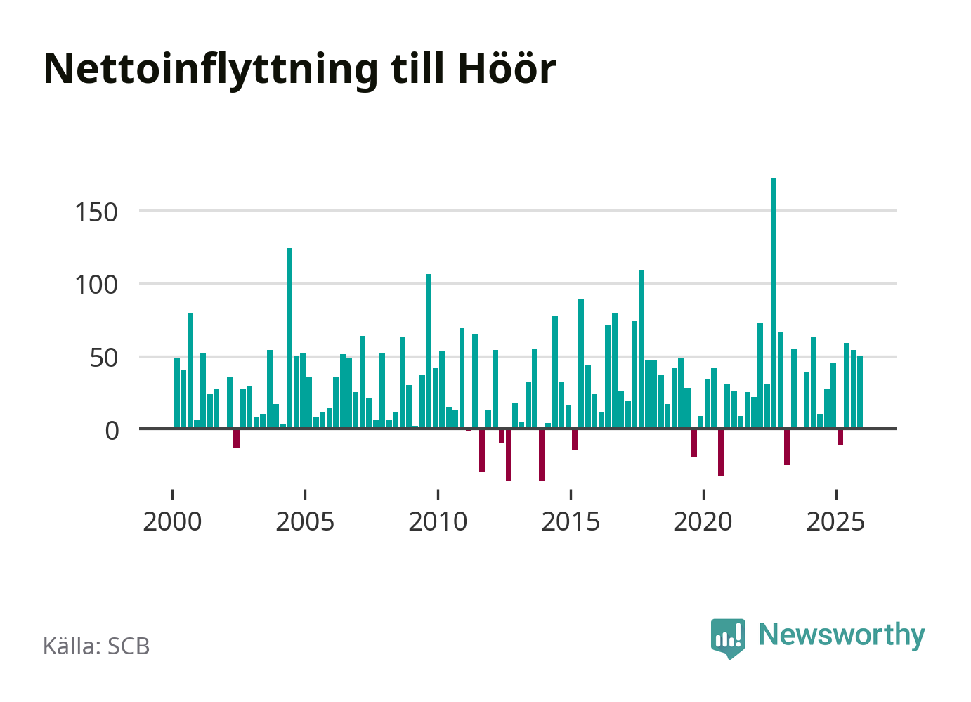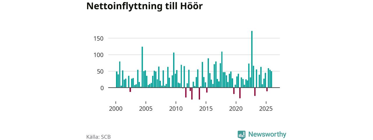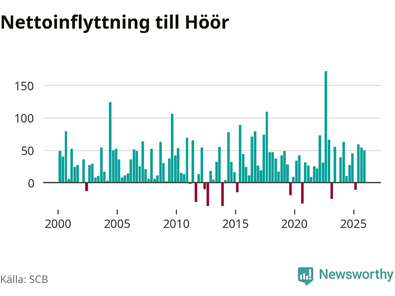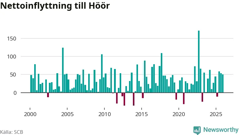 Under fjärde kvartalet 2025 flyttade 301 personer till kommunen medan 251 personer flyttade därifrån. Sedan seklets början har Höör haft ett positivt flyttnetto under nästan alla kvartal, inklusive det senaste kvartalet.