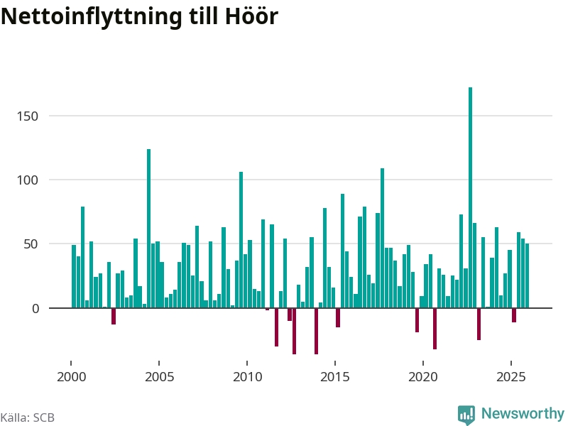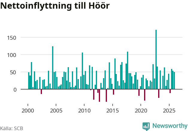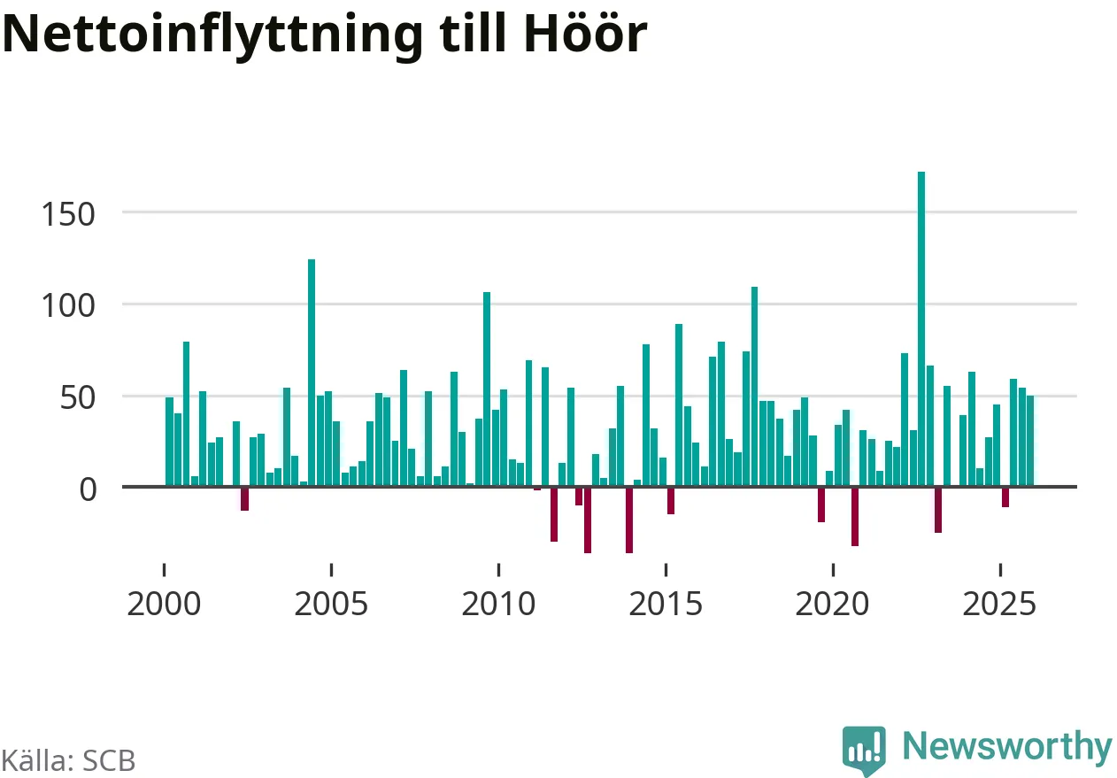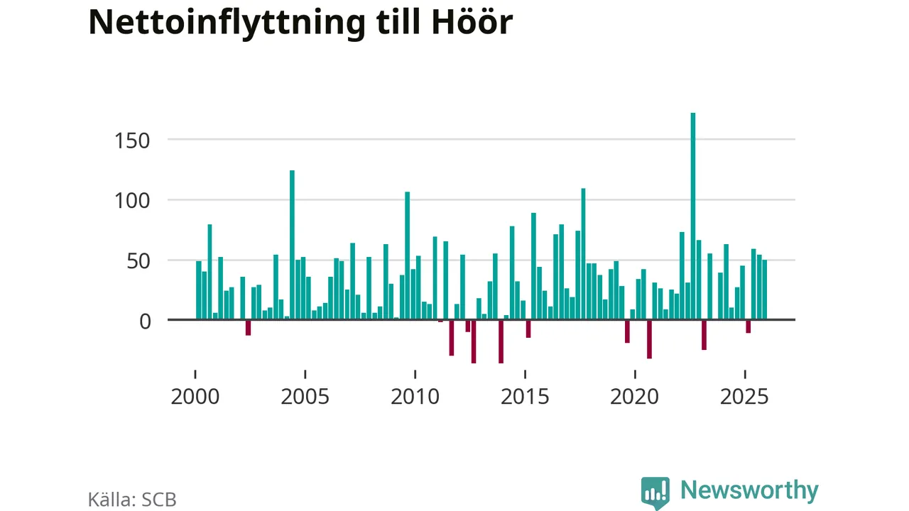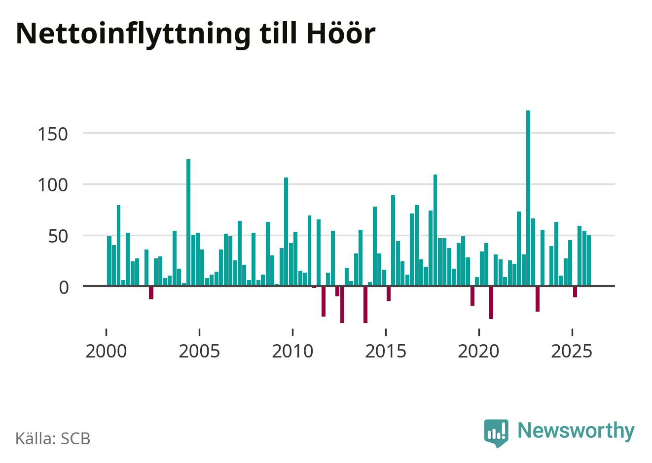 Under fjärde kvartalet 2025 flyttade 301 personer till kommunen medan 251 personer flyttade därifrån. Sedan seklets början har Höör haft ett positivt flyttnetto under nästan alla kvartal, inklusive det senaste kvartalet.