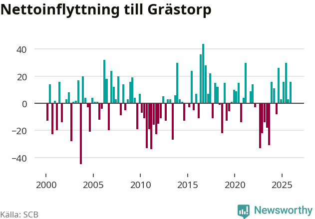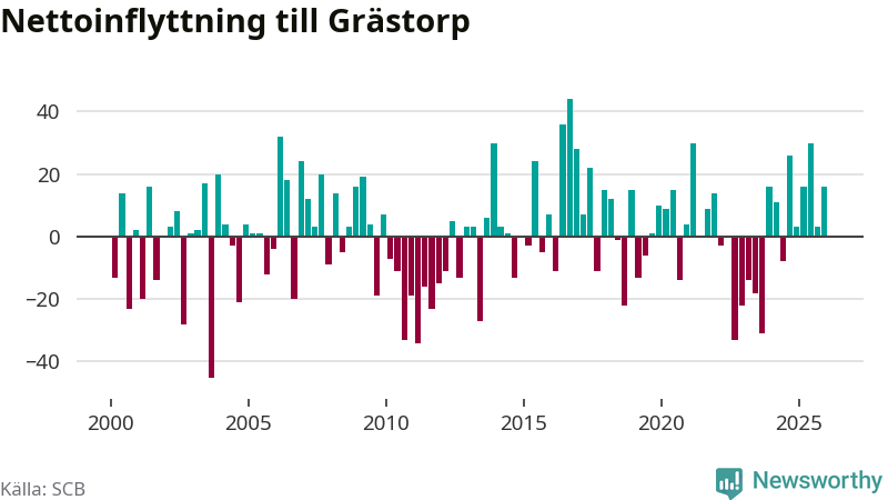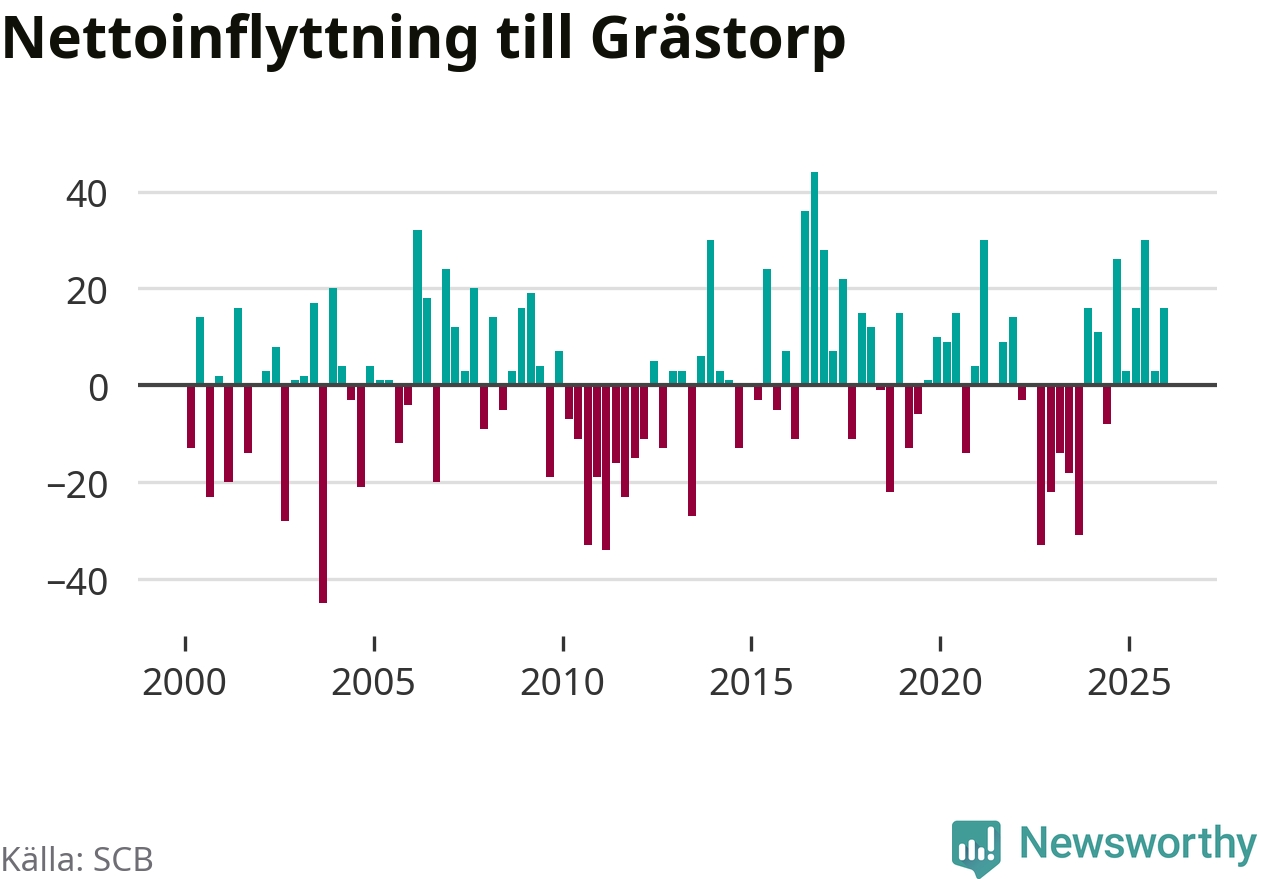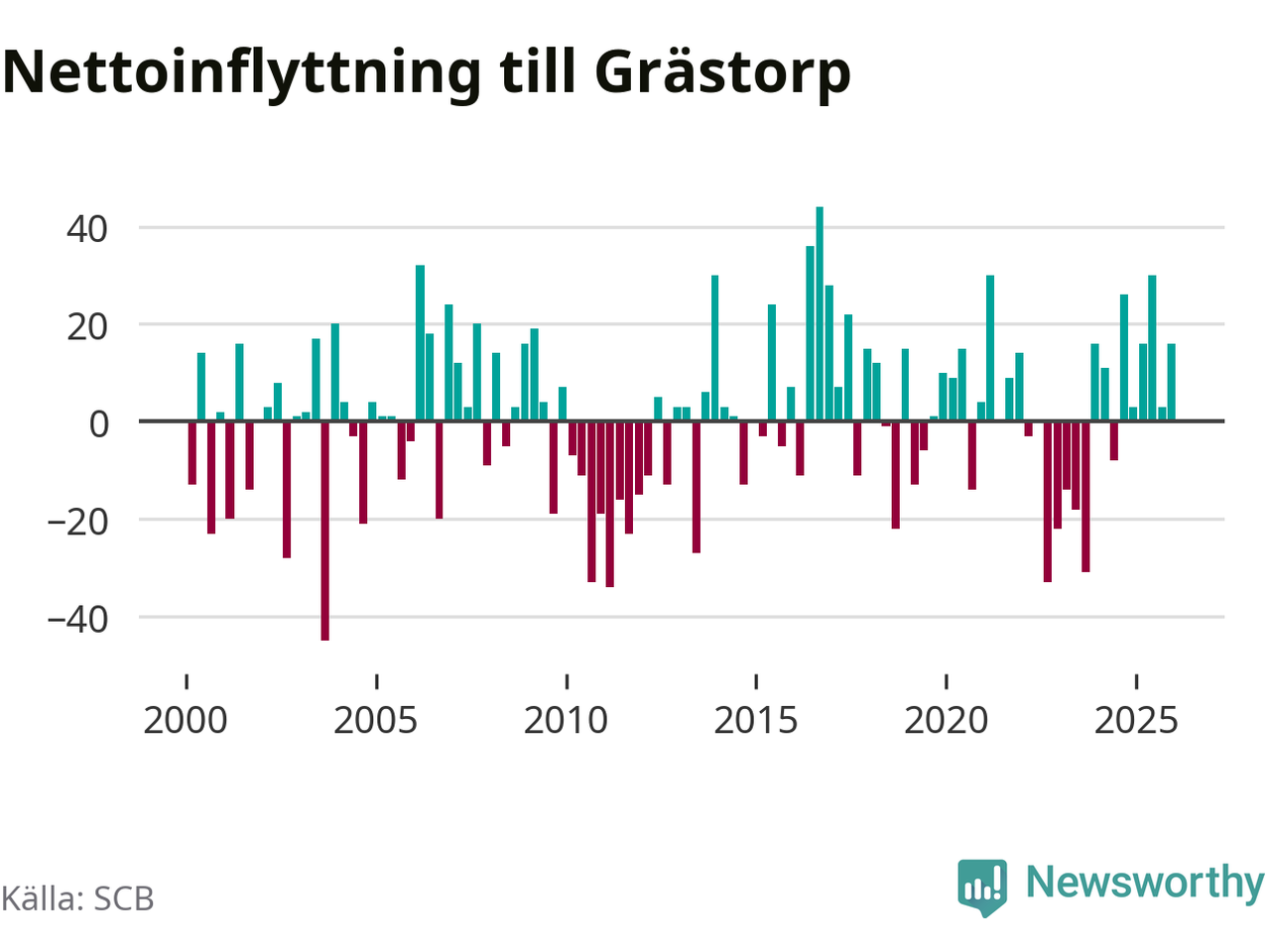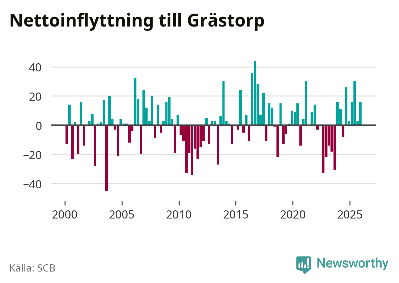 Fler flyttade till än från Grästorps kommun. Befolkningen ökade under det fjärde kvartalet 2025. Det visar nya siffror från SCB.