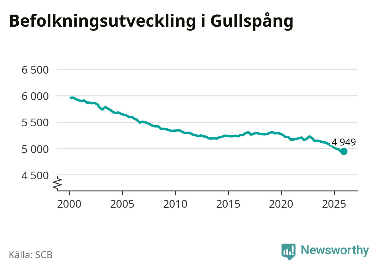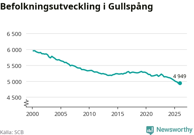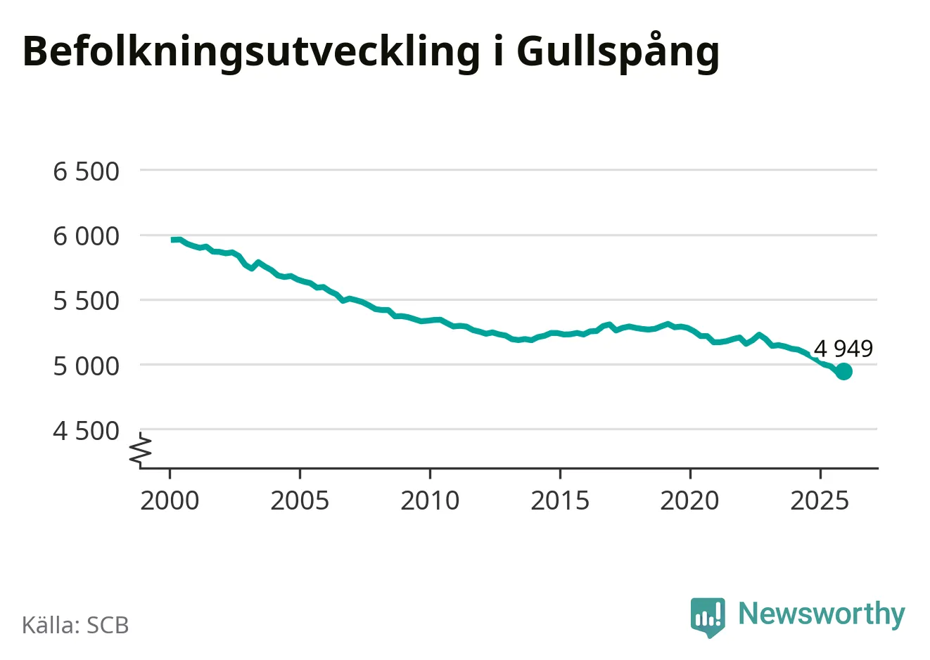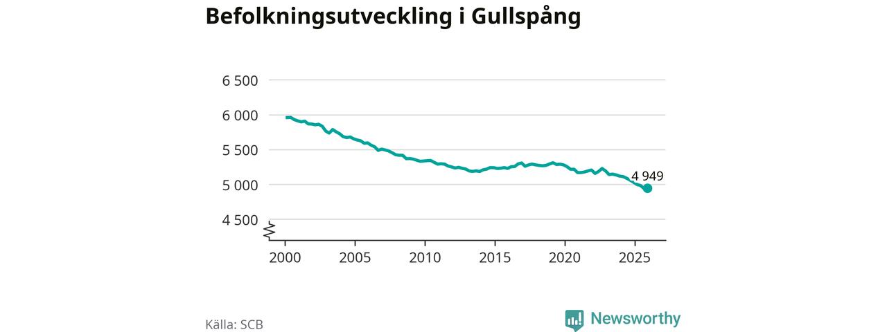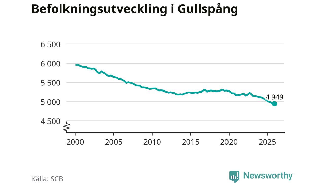 Befolkningen ökade i Gullspångs kommun under det fjärde kvartalet 2025. Den 31 december bodde enligt SCB:s senaste siffror 4 949 personer i kommunen, vilket är nio fler än i slutet av tredje kvartalet.