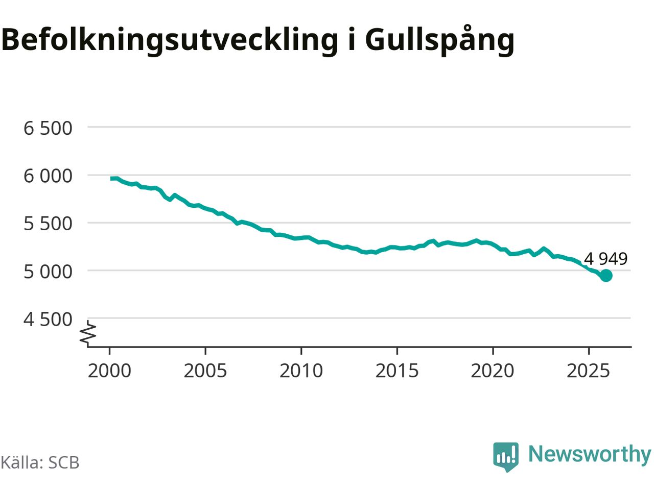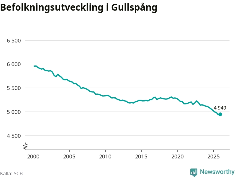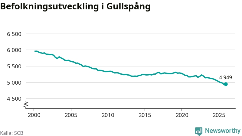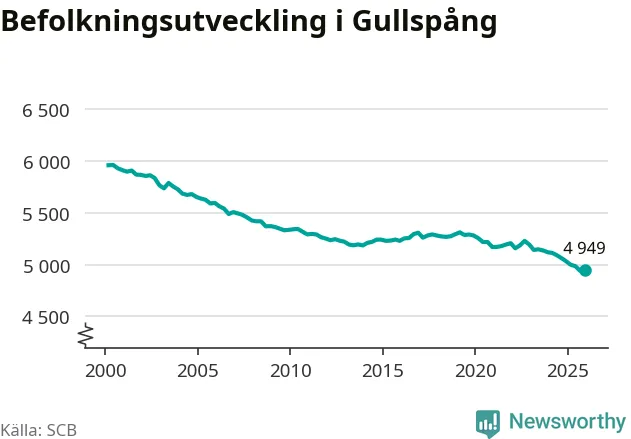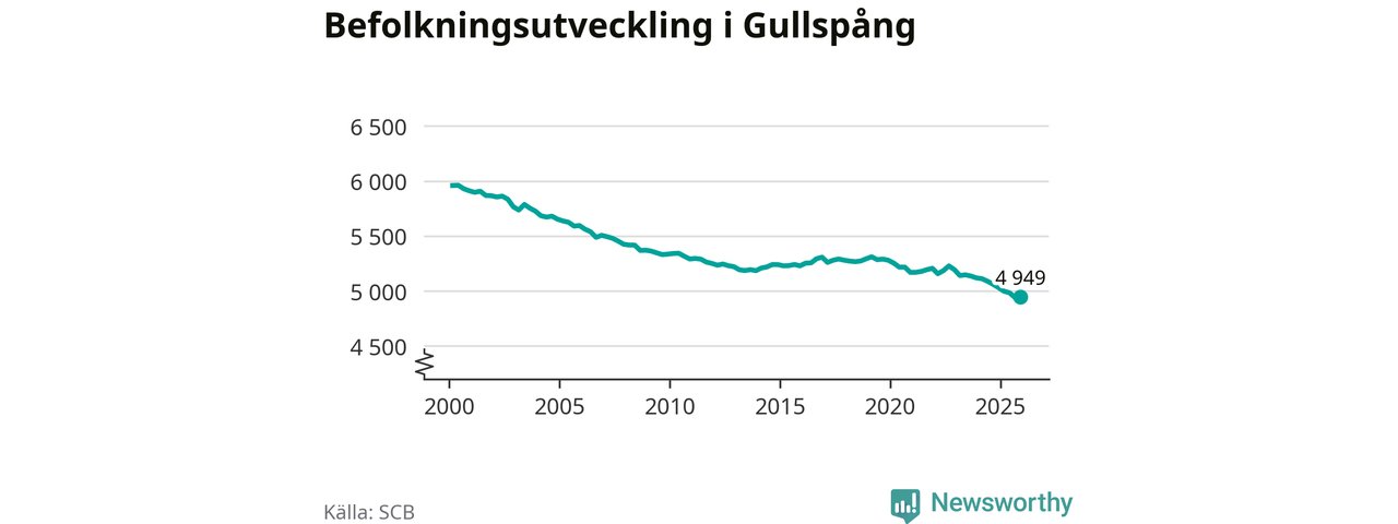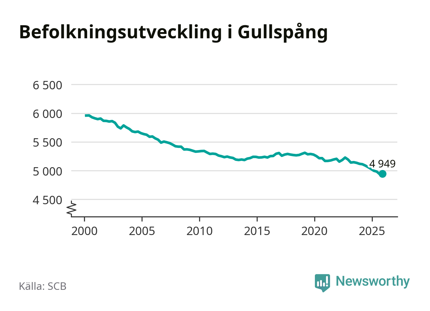 Befolkningen ökade i Gullspångs kommun under det fjärde kvartalet 2025. Den 31 december bodde enligt SCB:s senaste siffror 4 949 personer i kommunen, vilket är nio fler än i slutet av tredje kvartalet.