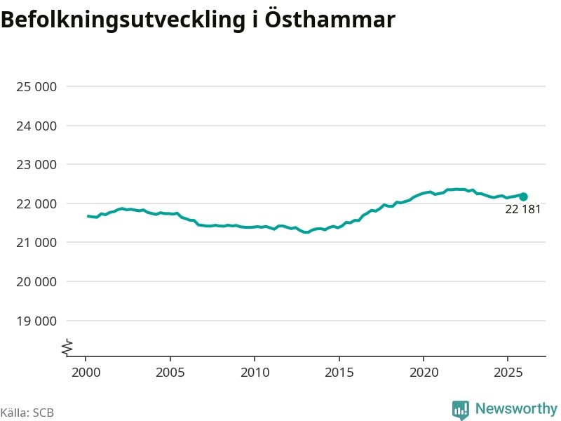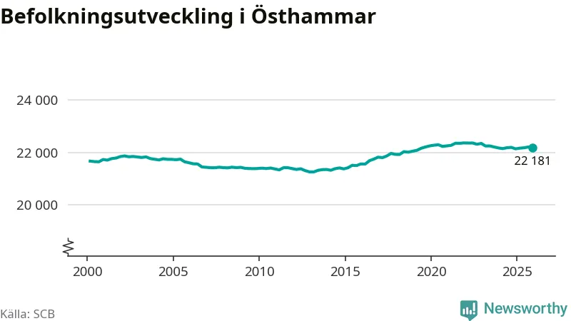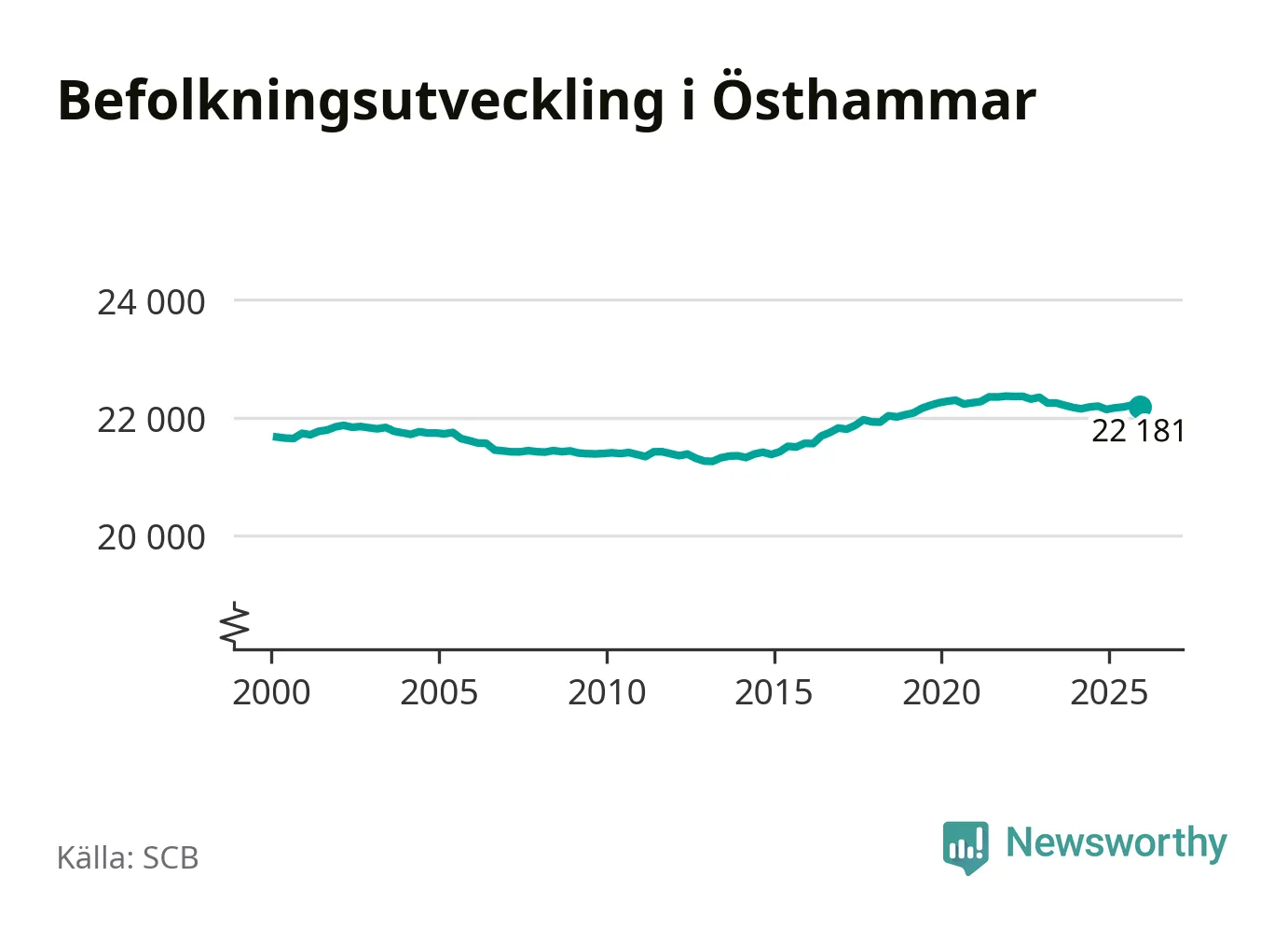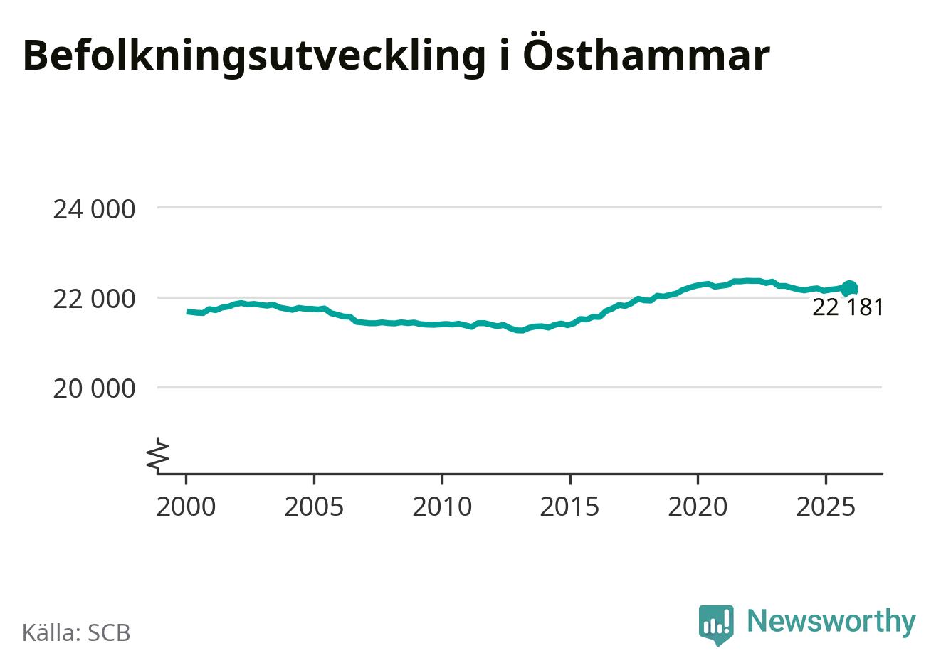 Jämfört med för ett år sedan har befolkningen i Östhammar ökat med drygt 40 personer. Sedan millennieskiftet har folkmängden ökat med runt 510 personer, eller två procent.