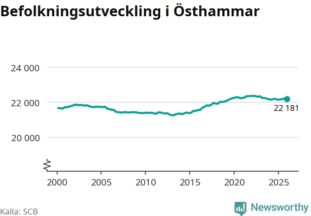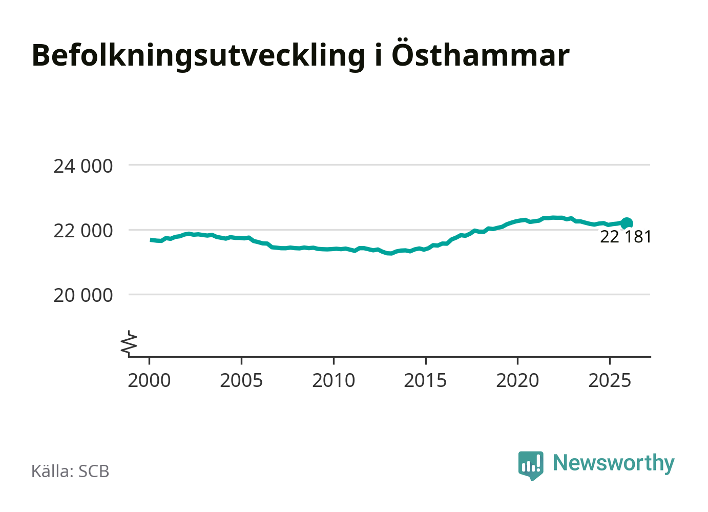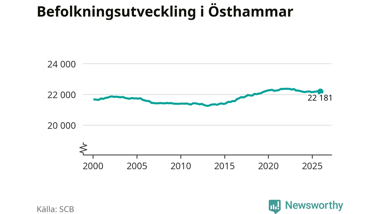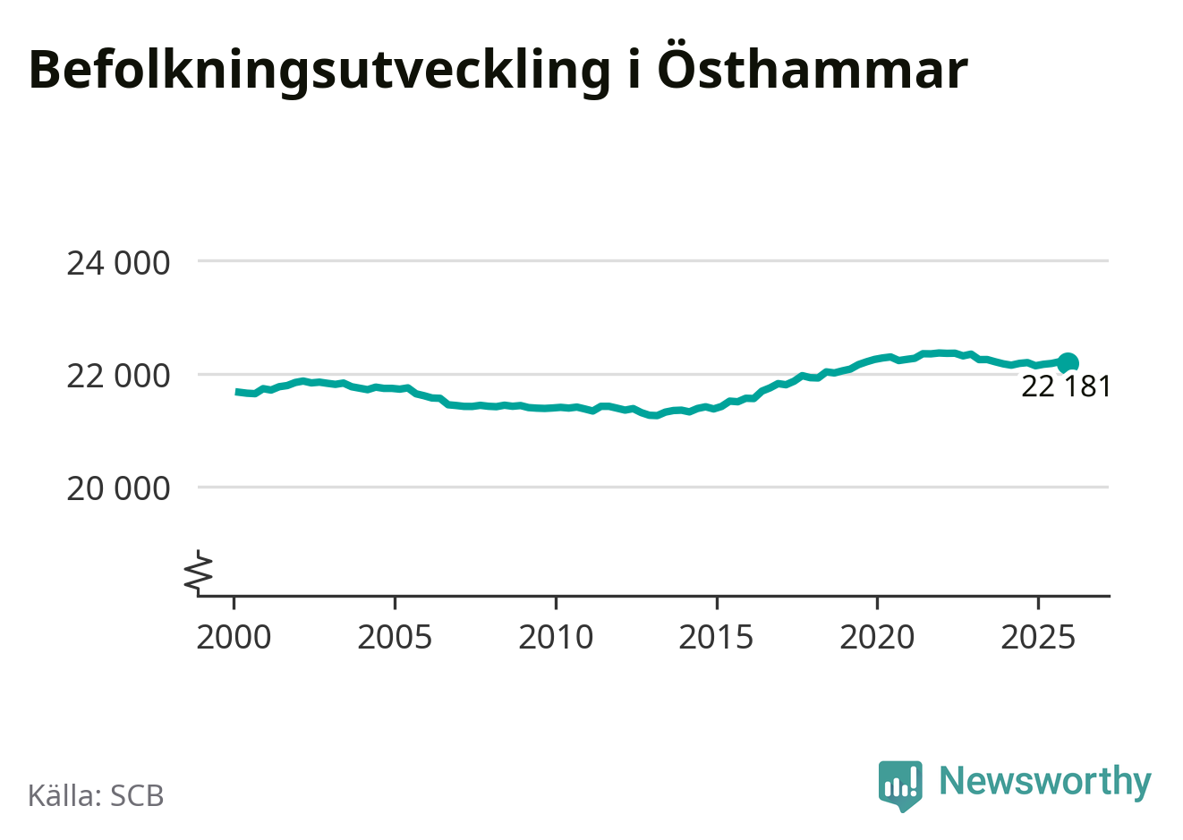 Befolkningen minskade i Östhammars kommun under det fjärde kvartalet 2025. Den 31 december bodde enligt SCB:s senaste siffror 22 181 personer i kommunen, vilket är 29 färre än i slutet av tredje kvartalet. Minskningen är procentuellt sett en av de största i Uppsala län.
