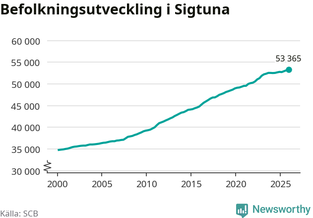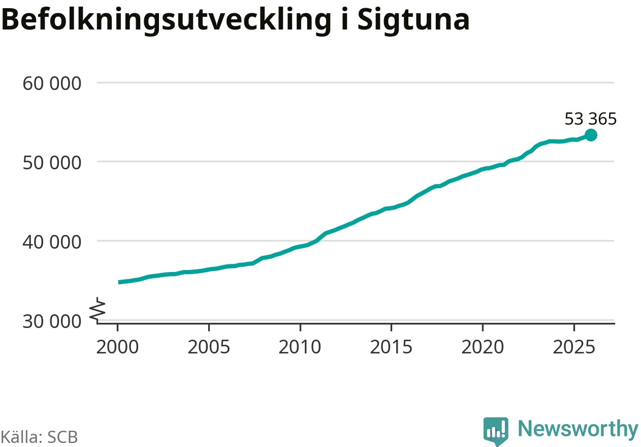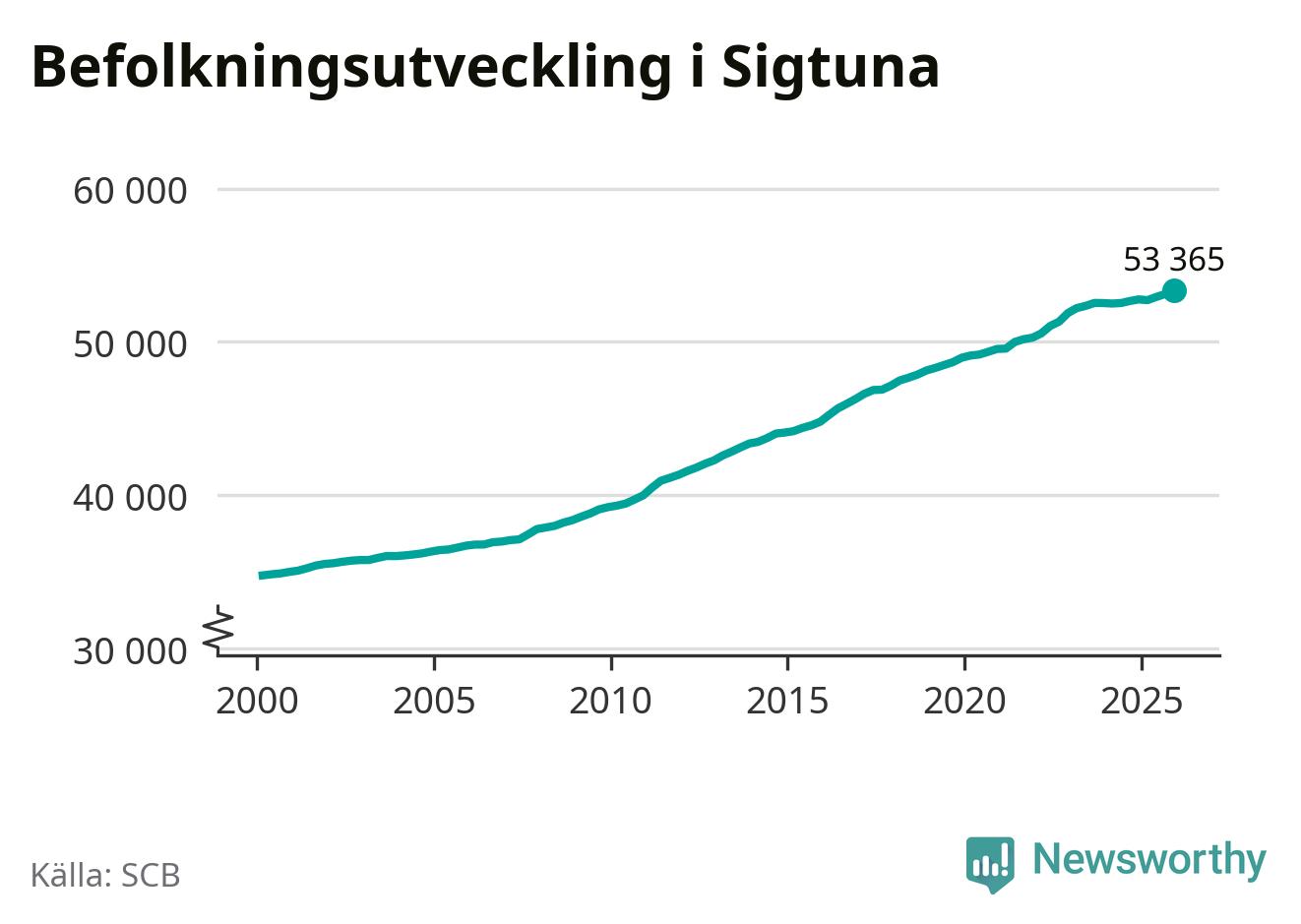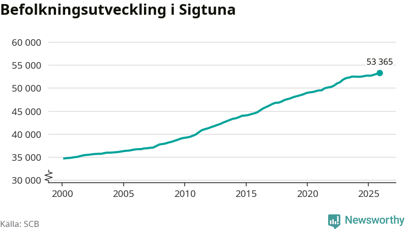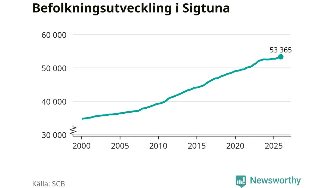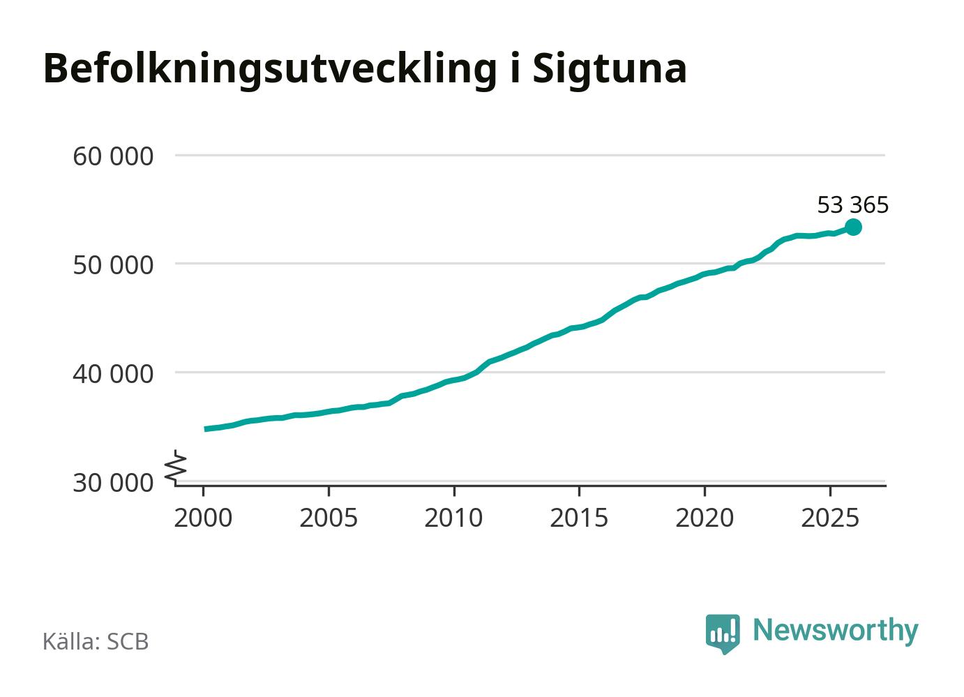 Befolkningen ökade i Sigtuna kommun under det fjärde kvartalet 2025. Den 31 december bodde enligt SCB:s senaste siffror 53 365 personer i kommunen, vilket är 242 fler än i slutet av tredje kvartalet. Det gör Sigtuna till en av de kommuner som ökar mest procentuellt i hela landet – och mest i Stockholms län.