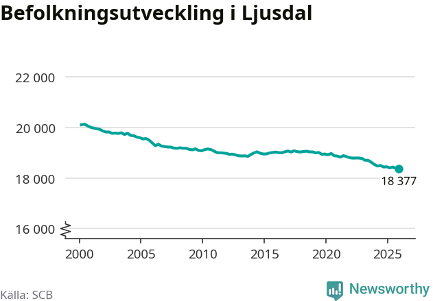 Befolkningen minskade i Ljusdals kommun under det fjärde kvartalet 2025. Den 31 december bodde enligt SCB:s senaste siffror 18 377 personer i kommunen, vilket är sju färre än i slutet av tredje kvartalet.