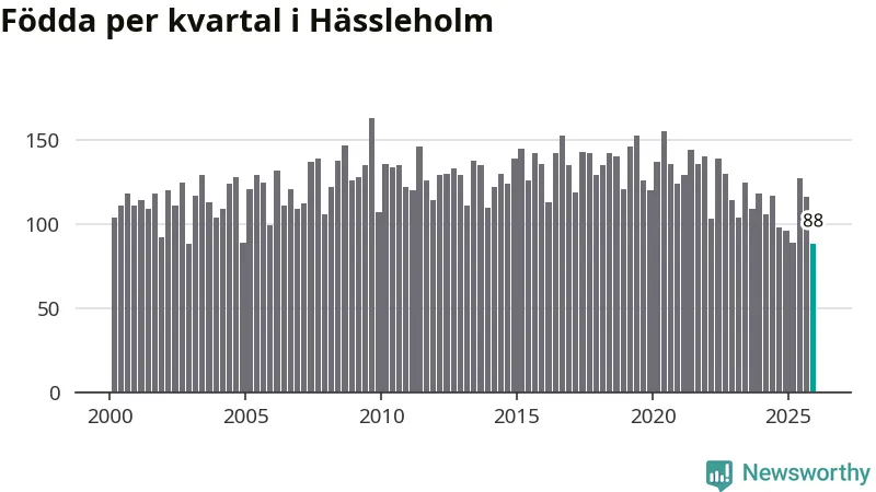 88 barn föddes i Hässleholms kommun under fjärde kvartalet 2025. Det är en av de lägsta sifforna hittills det här seklet. Det visar SCB:s senaste befolkningsstatistik.
