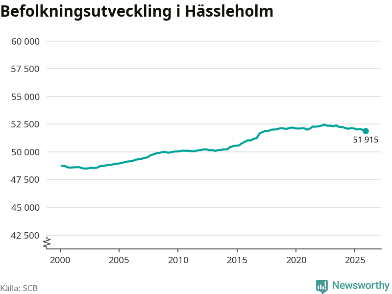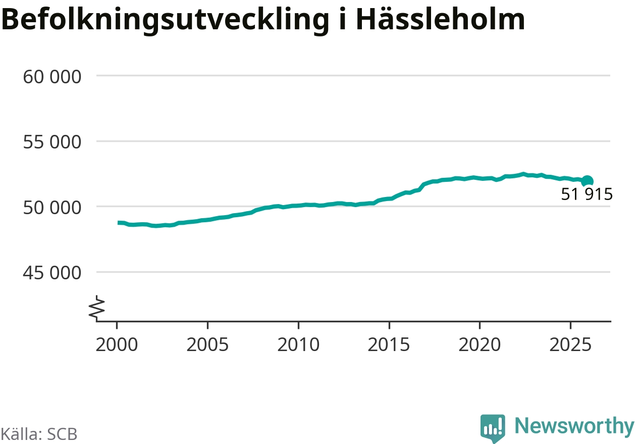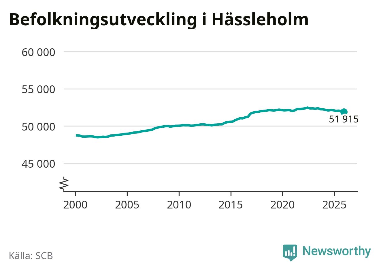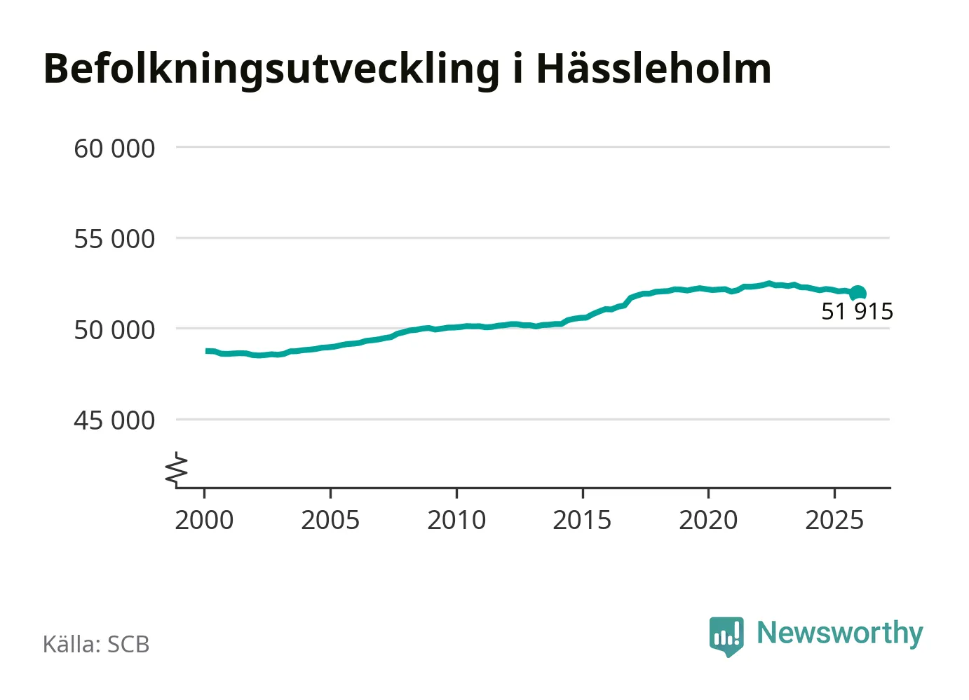Befolkningen minskade i Hässleholms kommun under det fjärde kvartalet 2025. Den 31 december bodde enligt SCB:s senaste siffror 51 915 personer i kommunen, vilket är 75 färre än i slutet av tredje kvartalet.