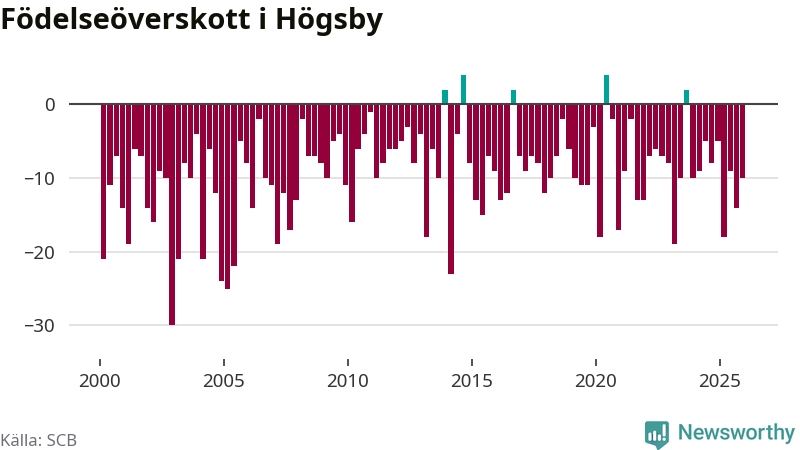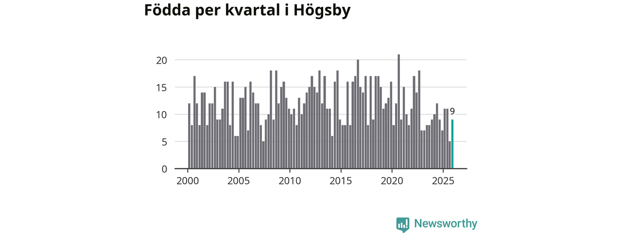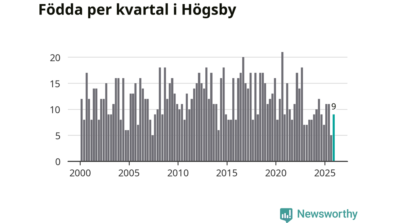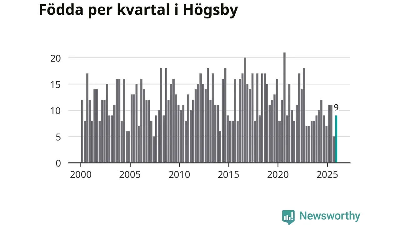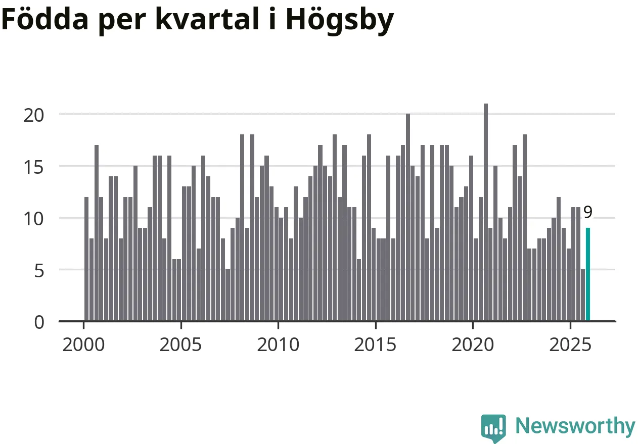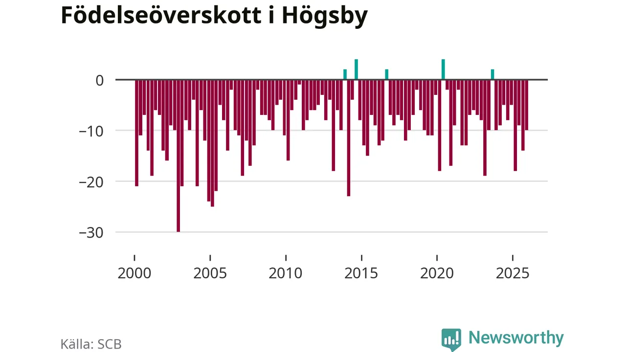 Enligt SCB:s siffror föddes nio barn i Högsby under det senaste kvartalet. Samtidigt avled 19 personer. Högsby hade alltså ett negativt födelsenetto, vilket kommunen historiskt sett nästan alltid har haft.