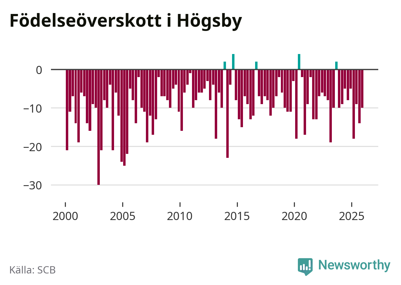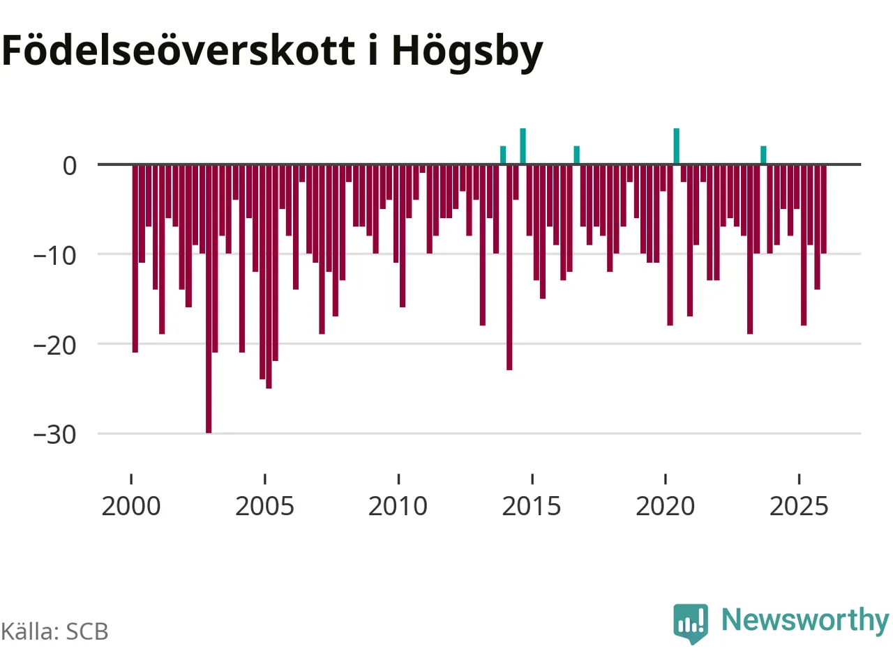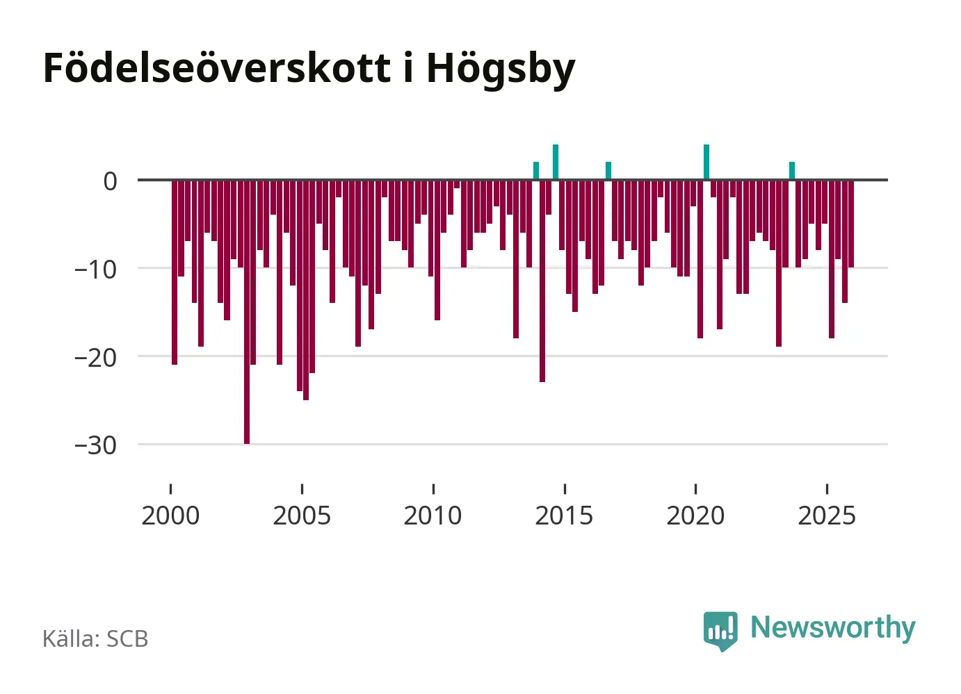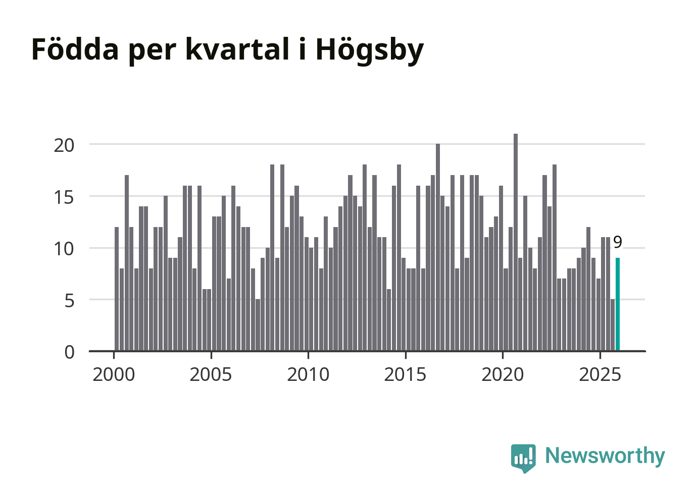 Enligt SCB:s siffror föddes nio barn i Högsby under det senaste kvartalet. Samtidigt avled 19 personer. Högsby hade alltså ett negativt födelsenetto, vilket kommunen historiskt sett nästan alltid har haft.