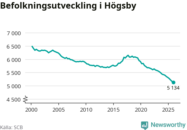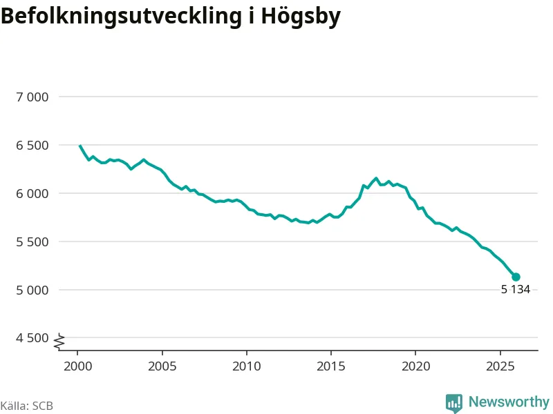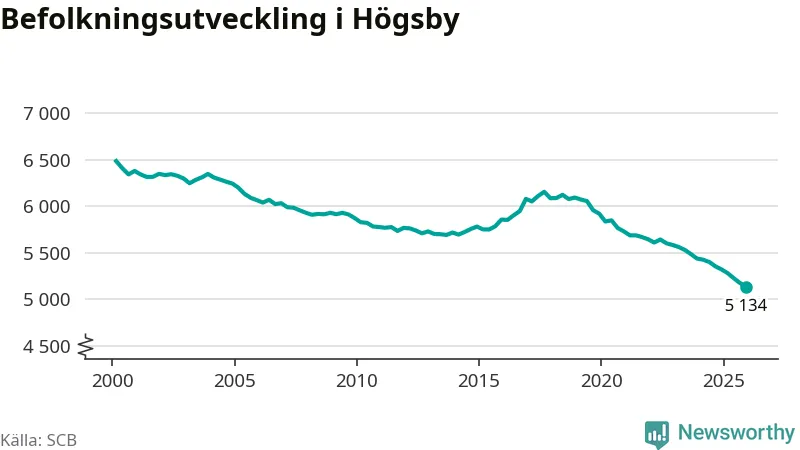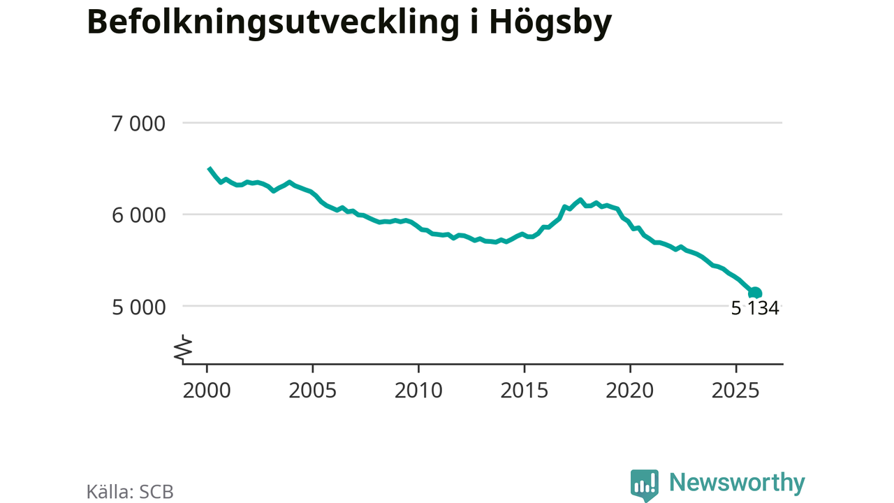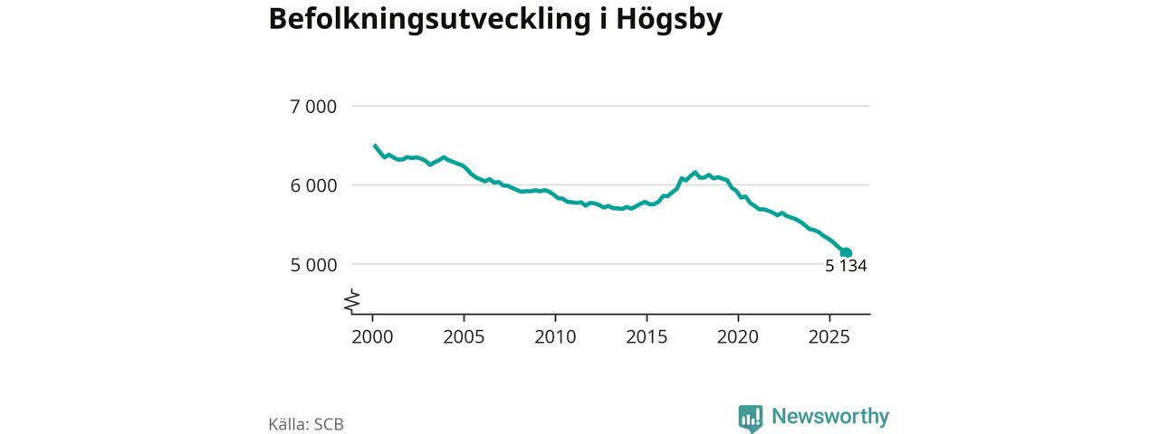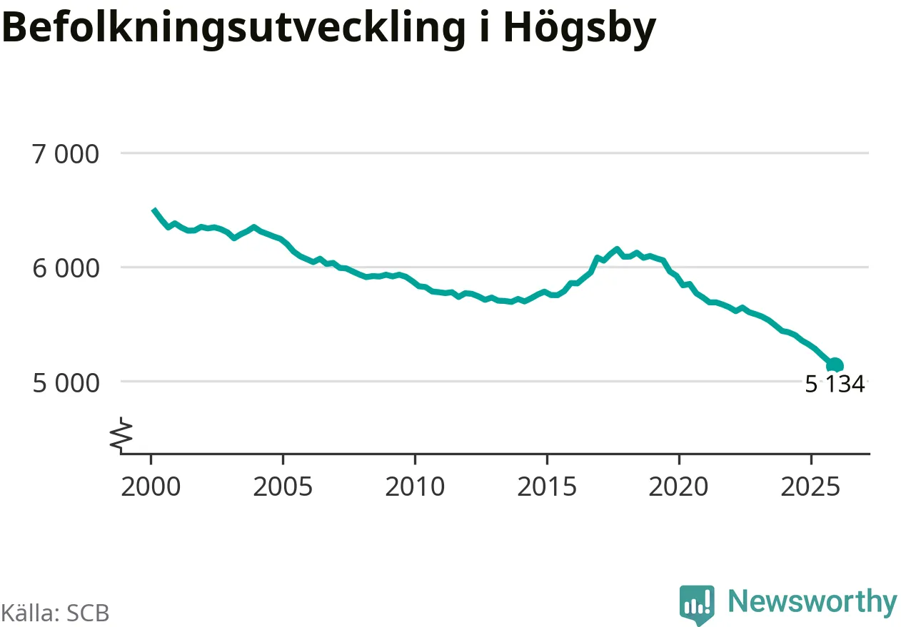 Befolkningen minskade i Högsby kommun under det fjärde kvartalet 2025. Den 31 december bodde enligt SCB:s senaste siffror 5 134 personer i kommunen, vilket är 42 färre än i slutet av tredje kvartalet. Minskningen är den näst största i Kalmar län procentuellt sett.