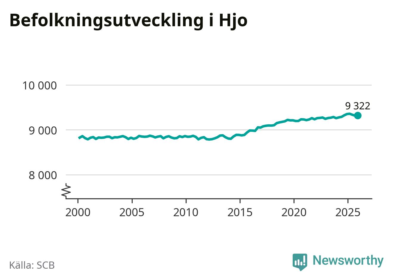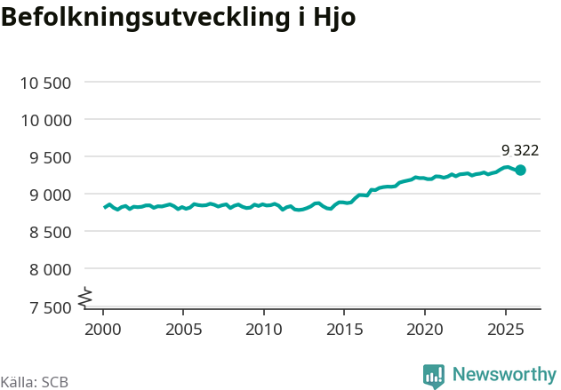 Befolkningen ökade i Hjo kommun under det fjärde kvartalet 2025. Den 31 december bodde enligt SCB:s senaste siffror 9 322 personer i kommunen, vilket är åtta fler än i slutet av tredje kvartalet.