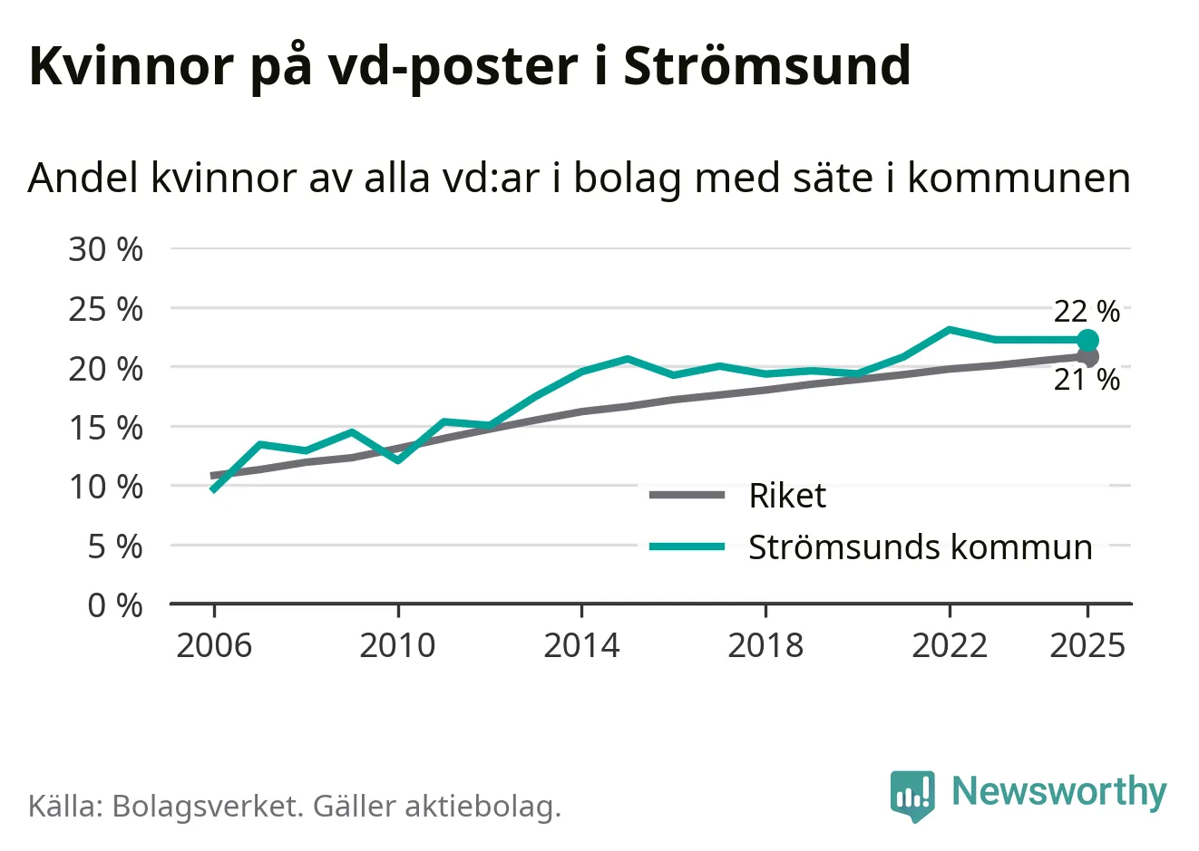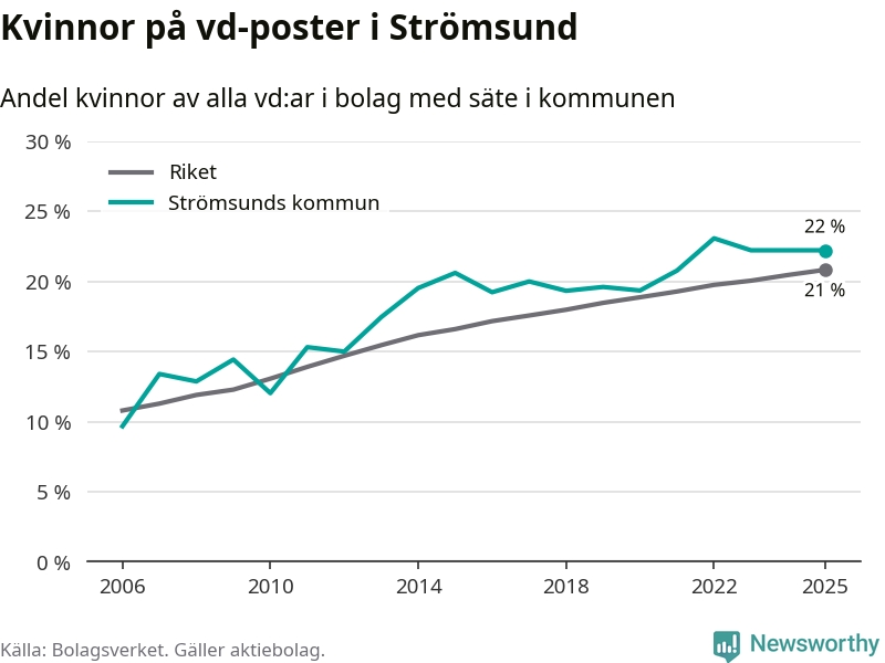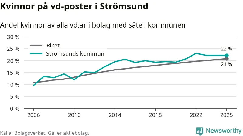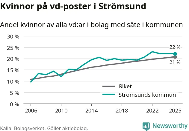 Bara var femte svenskt aktiebolag leds av en kvinna. Och Strömsundsföretagen ligger nära rikssnittet. Det visar siffror från Bolagsverket.