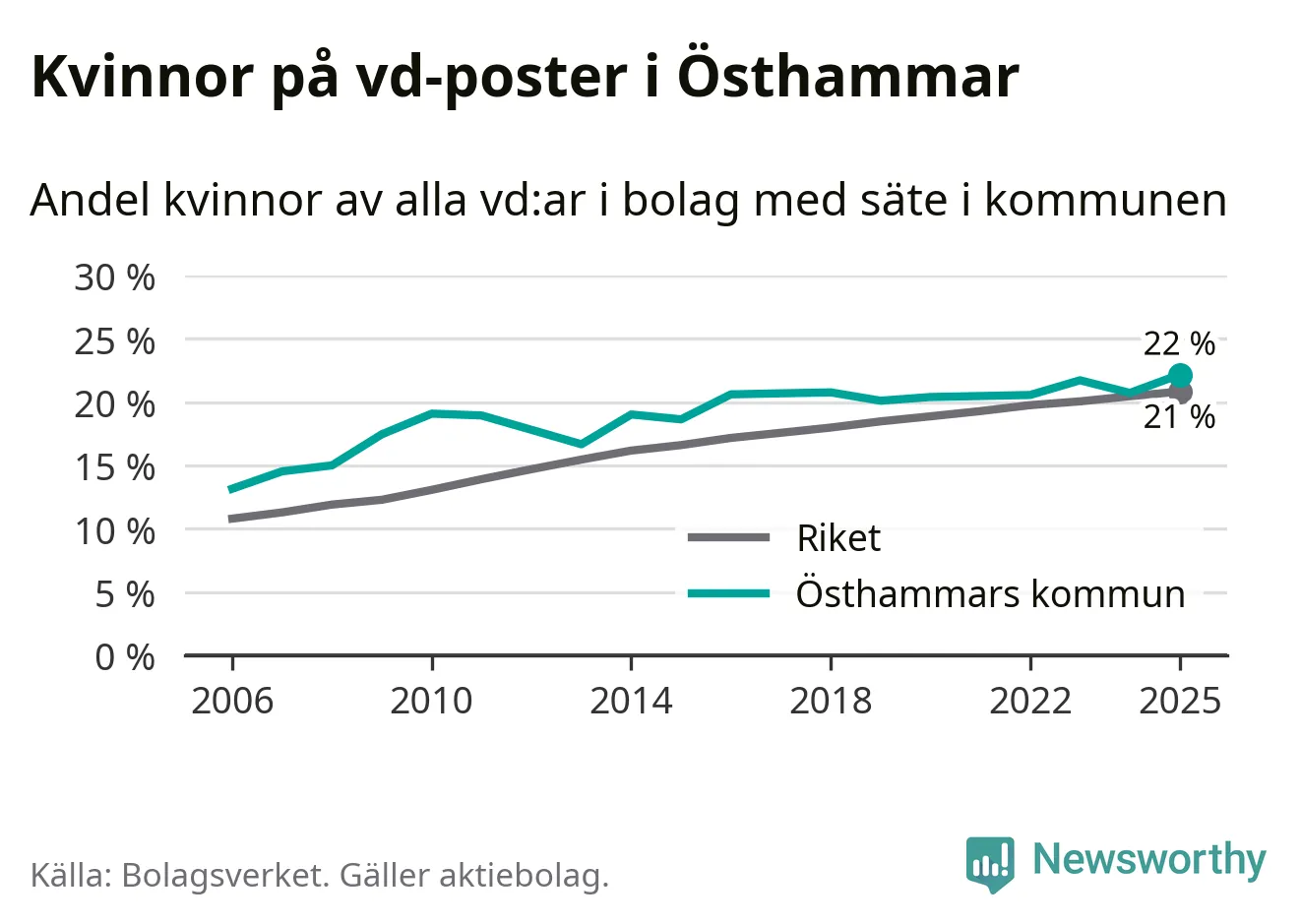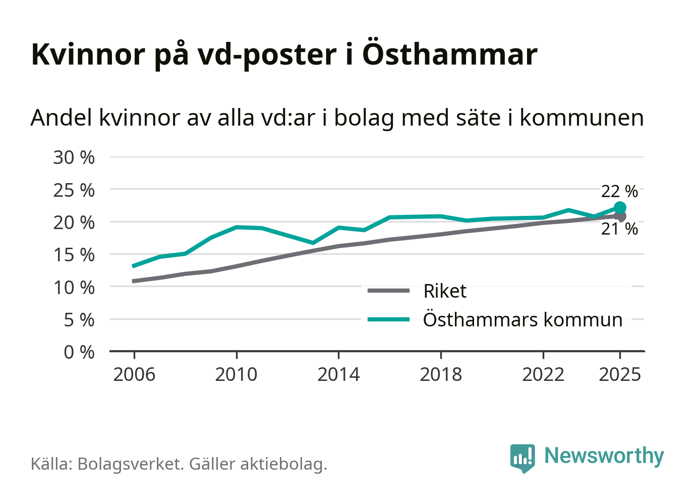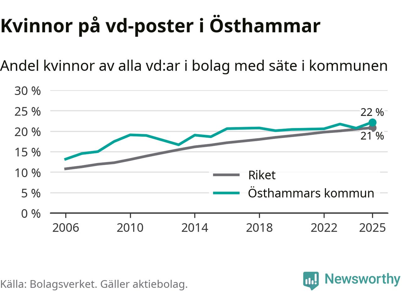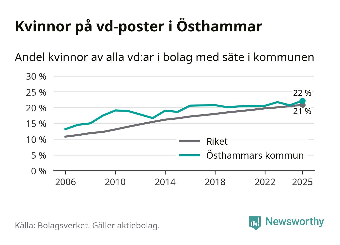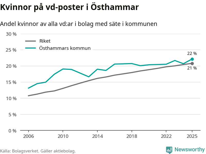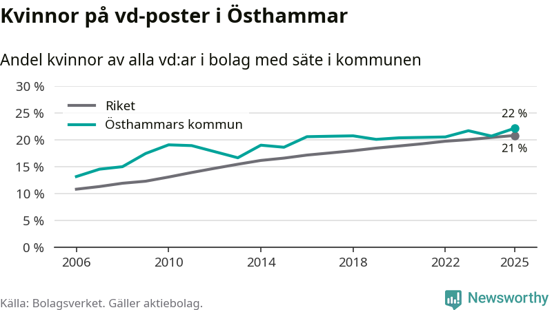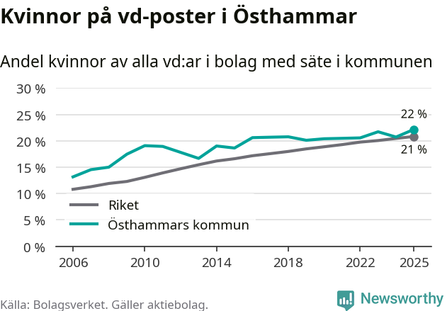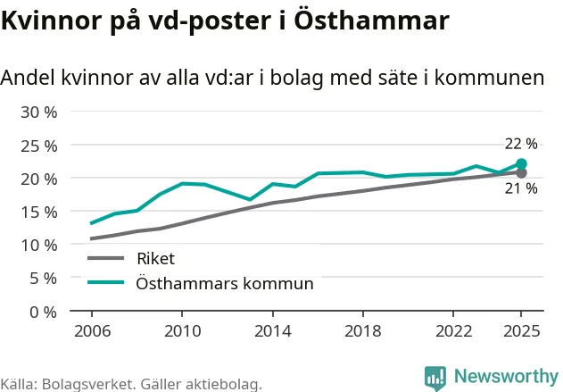 Bara var femte svenskt aktiebolag leds av en kvinna. Och Östhammarföretagen ligger nära rikssnittet. Det visar siffror från Bolagsverket.