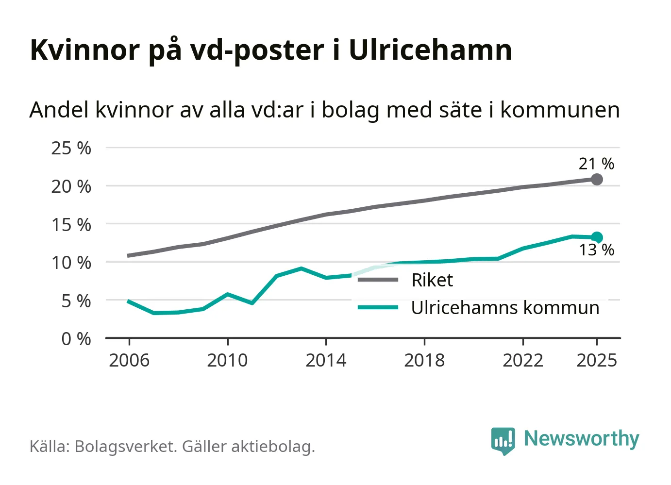 Bara var femte svenskt aktiebolag leds av en kvinna. I Ulricehamn är andelen ännu lägre. Det visar siffror från Bolagsverket.