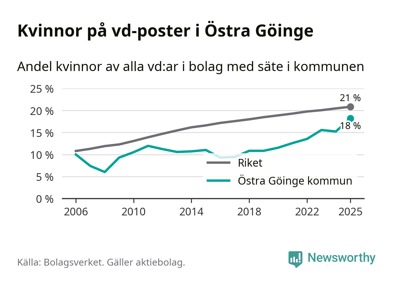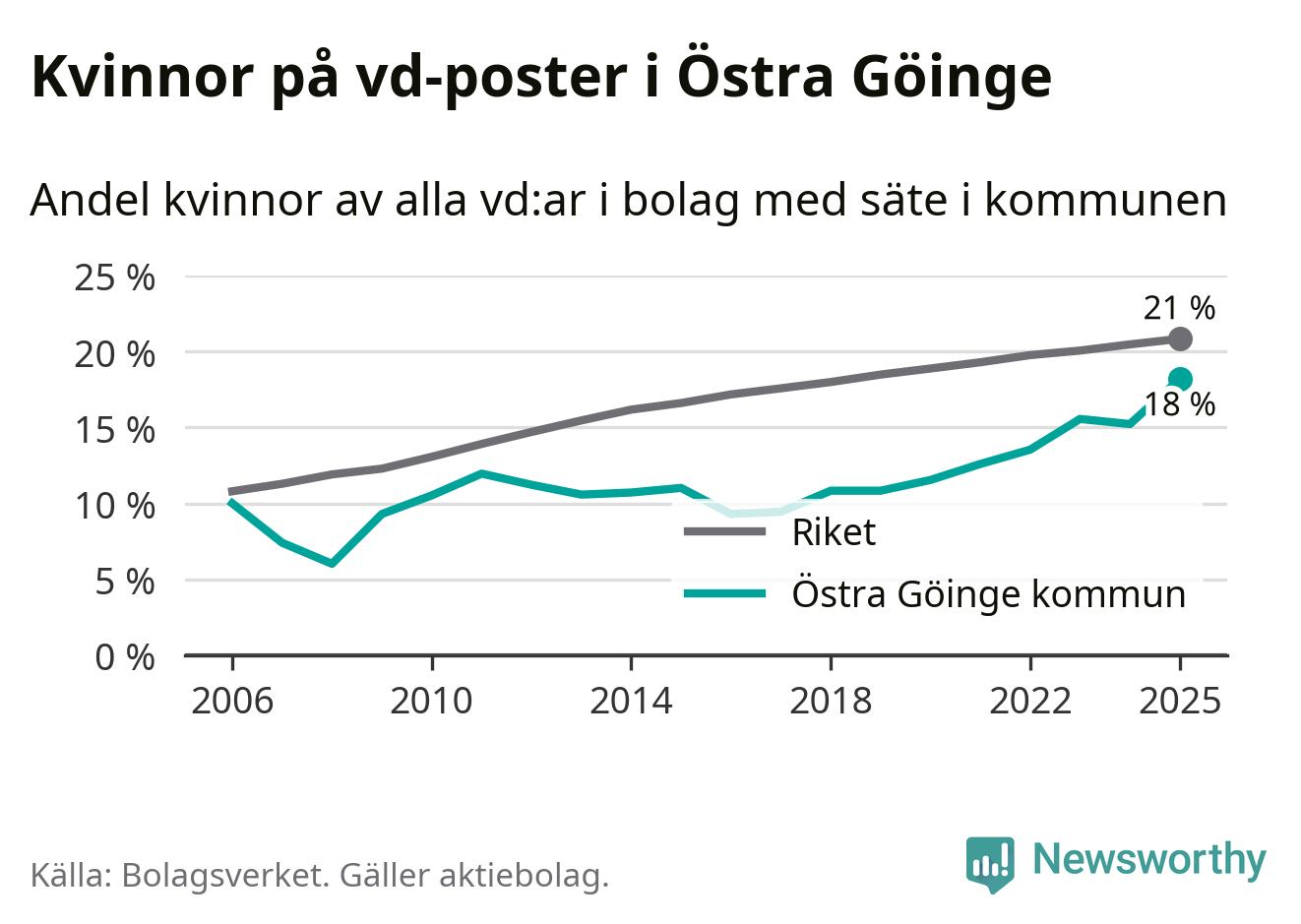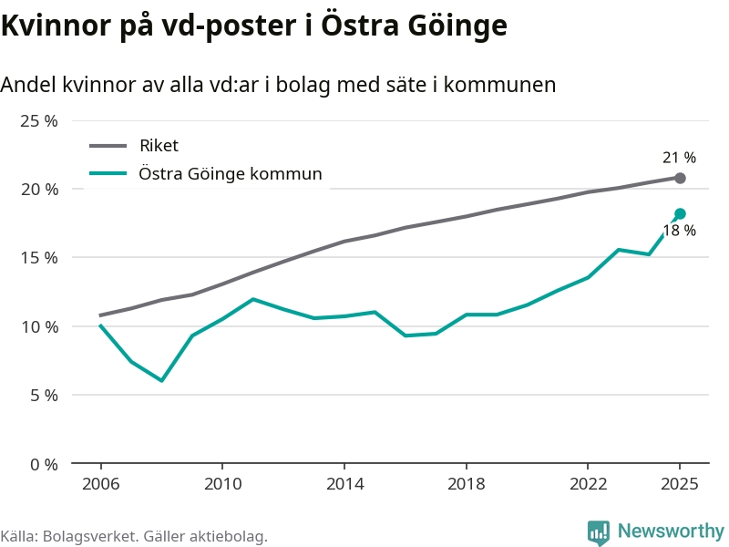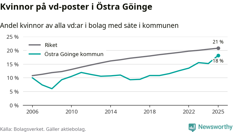 Det är fortfarande män som är vd i nästan fyra av fem bolag i Sverige och i Östra Göinge är det alltså en lägre andel kvinnor på vd-posten. Högst andel kvinnliga vd:ar i Skåne har företagen med säte i Tomelilla kommun, 30 procent. Lägst är andelen bland företagen med säte i Perstorps kommun, 13 procent. I Perstorp rör det sig om 62 företag totalt och även små förändringar får stora utslag i andelen kvinnliga vd:ar.