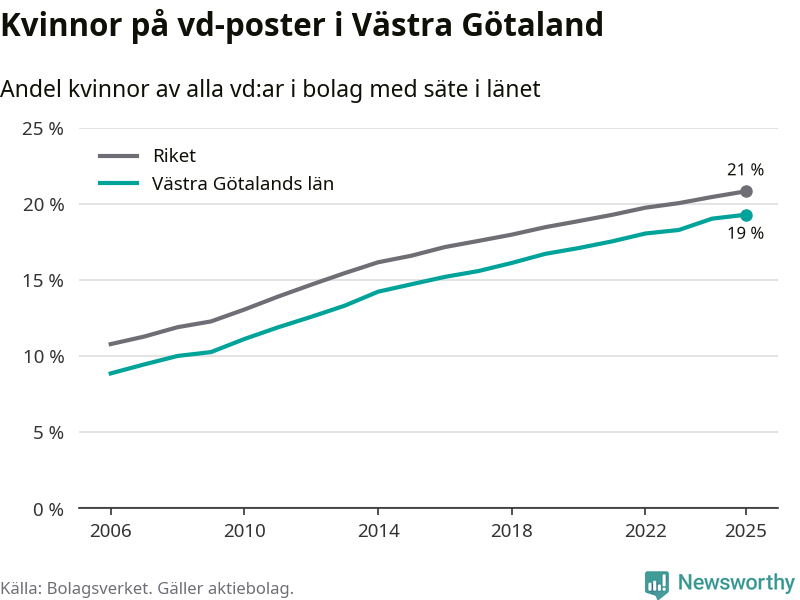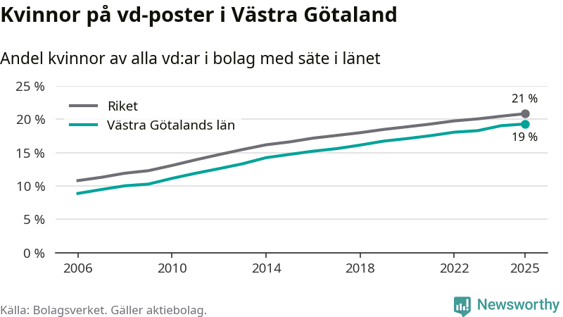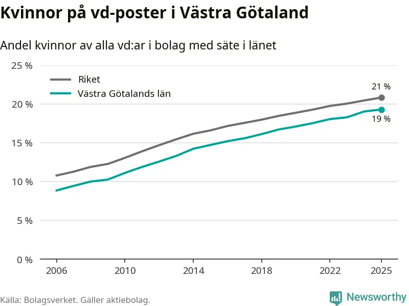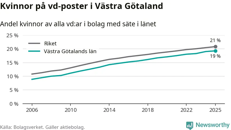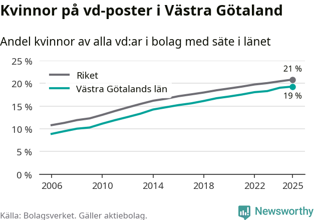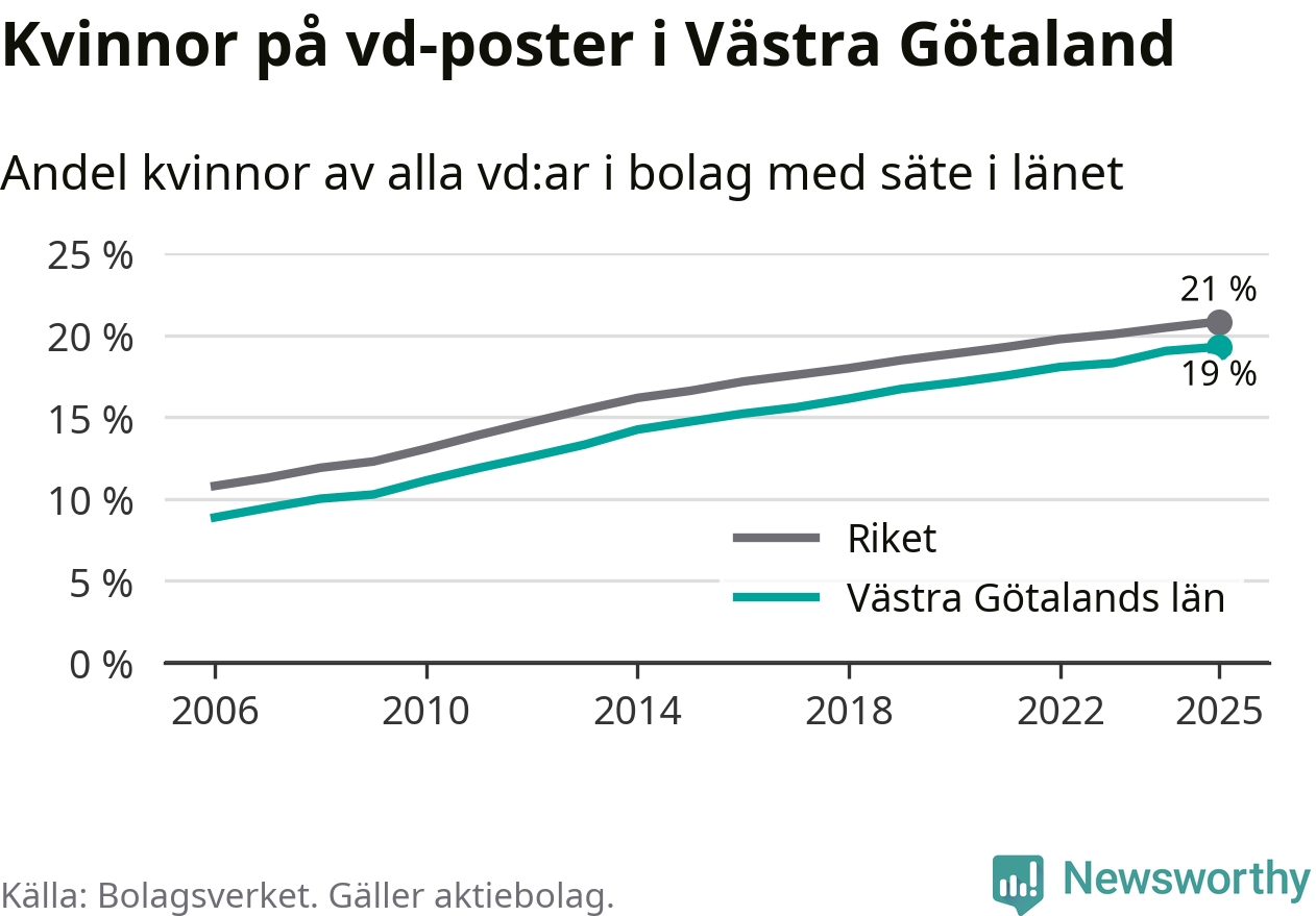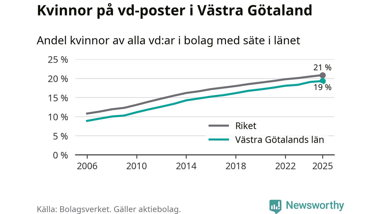 Andel kvinnliga vd:ar i Västra Götaland 2025