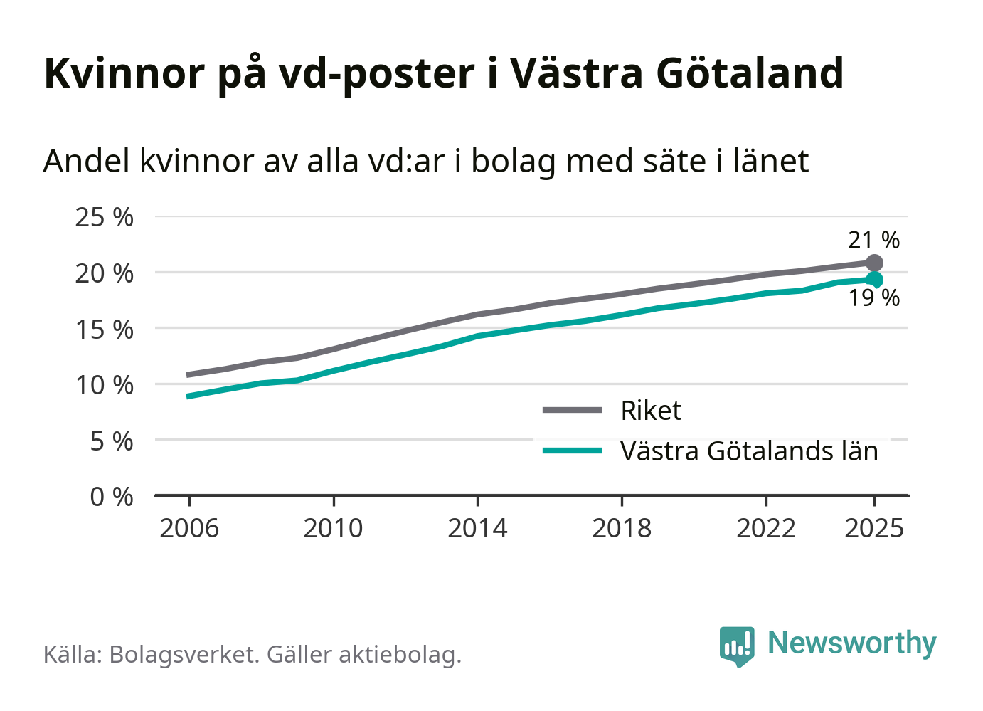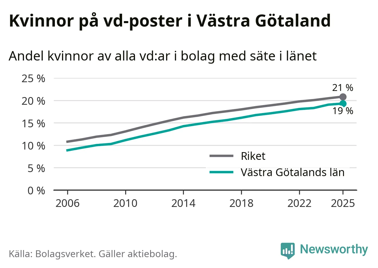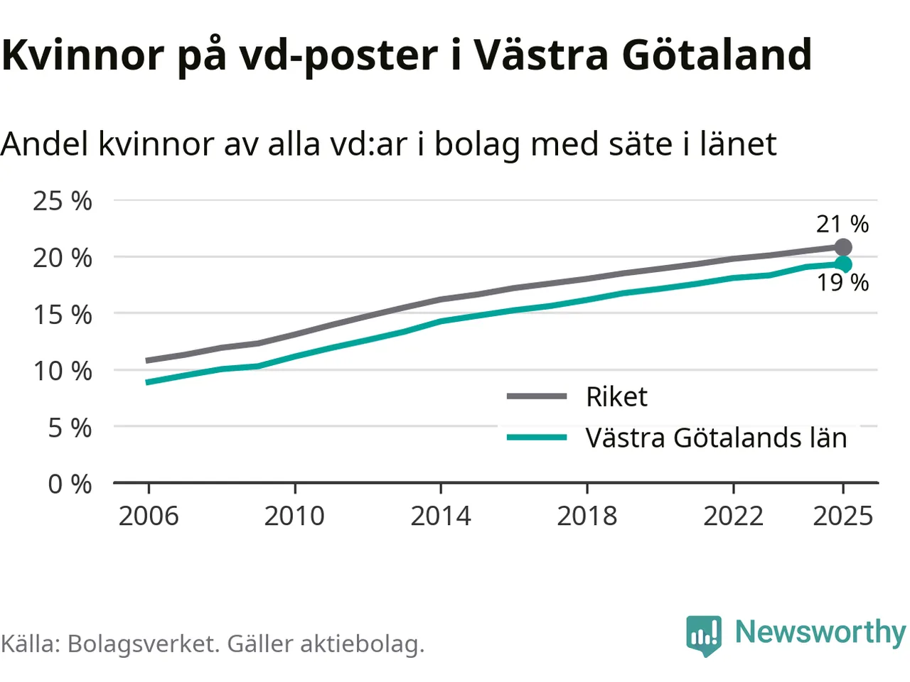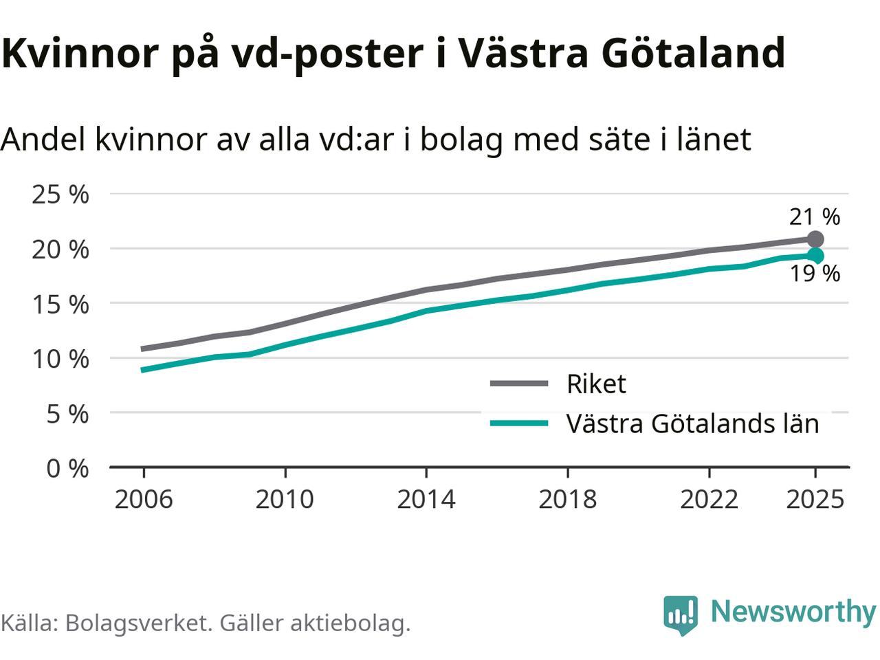 Andel kvinnliga vd:ar i Västra Götaland 2025