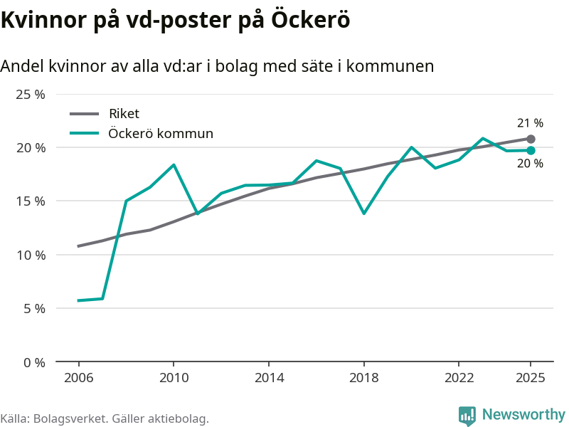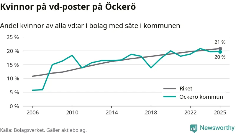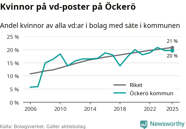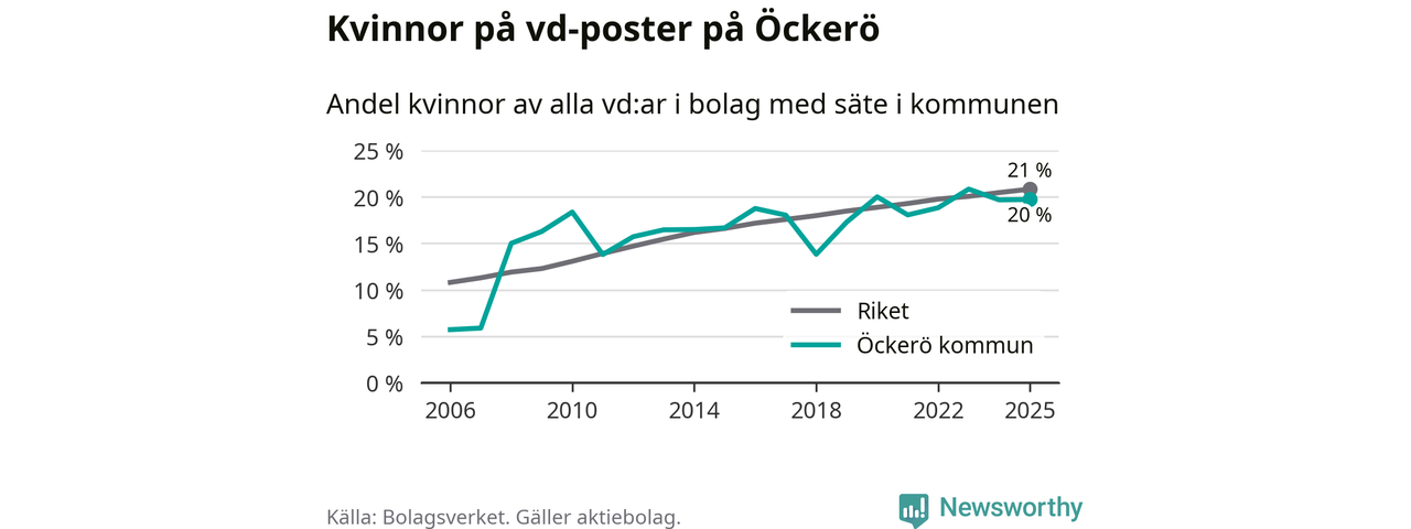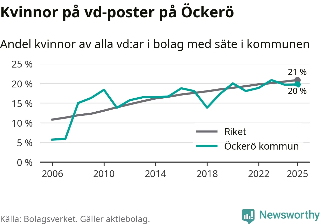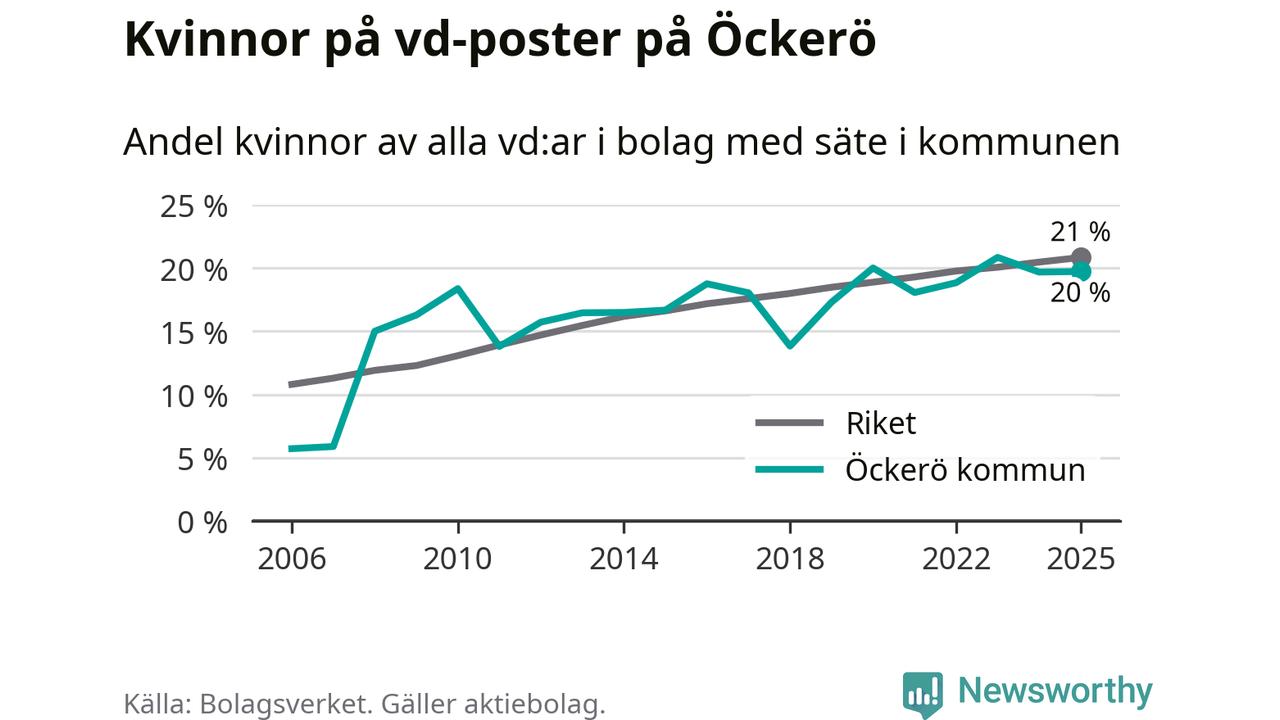 Bara var femte svenskt aktiebolag leds av en kvinna. Och Öckeröföretagen ligger nära rikssnittet. Det visar siffror från Bolagsverket.