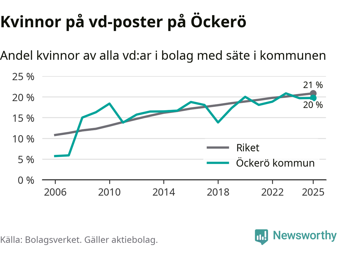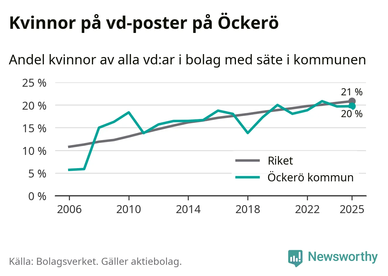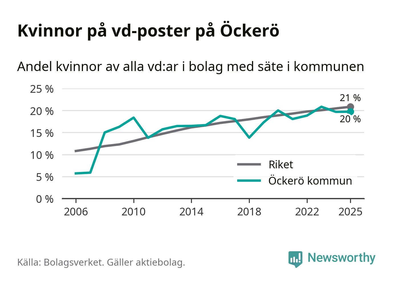 Bara var femte svenskt aktiebolag leds av en kvinna. Och Öckeröföretagen ligger nära rikssnittet. Det visar siffror från Bolagsverket.