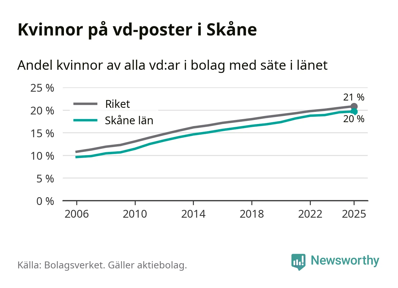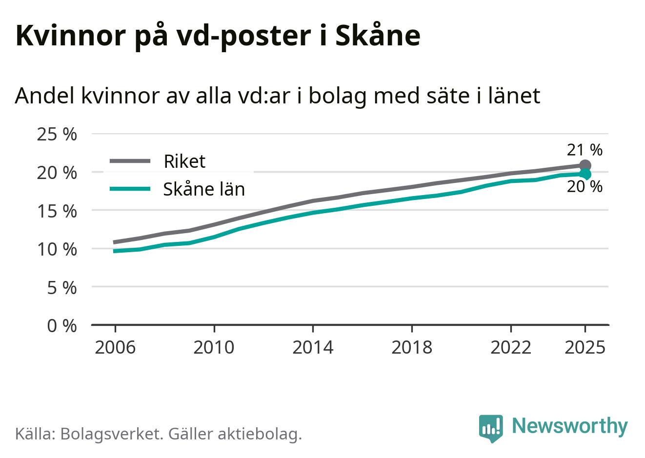 Bara var femte svenskt aktiebolag leds av en kvinna. Och Skåneföretagen ligger nära rikssnittet. Det visar siffror från Bolagsverket.