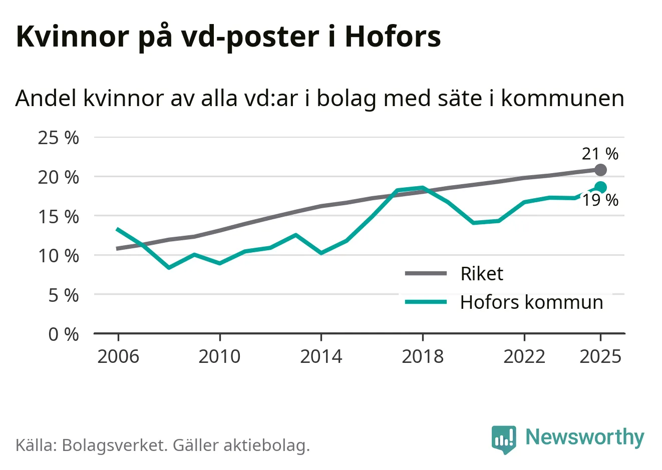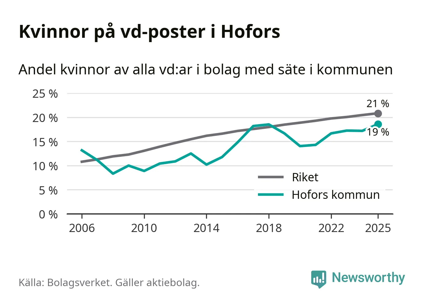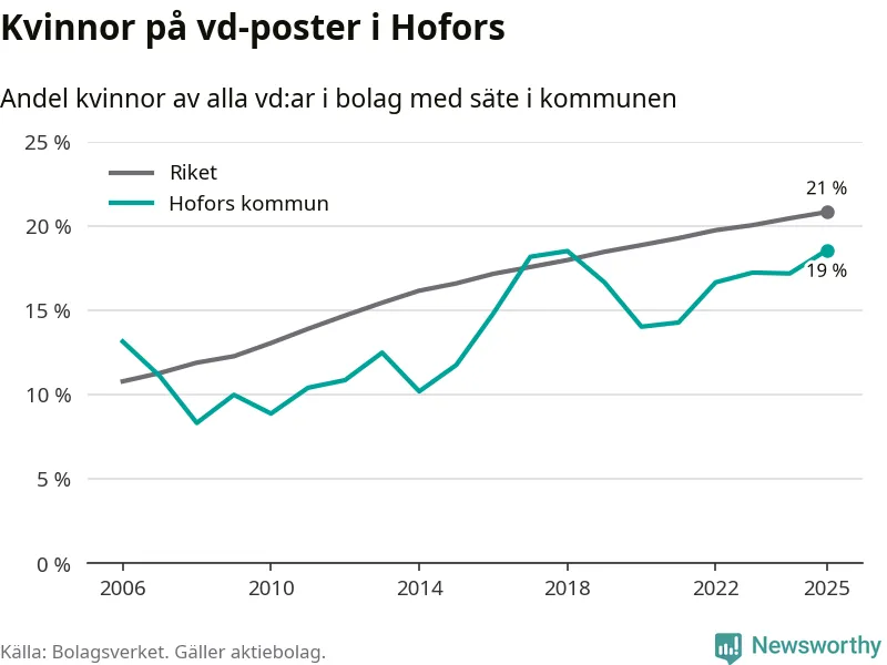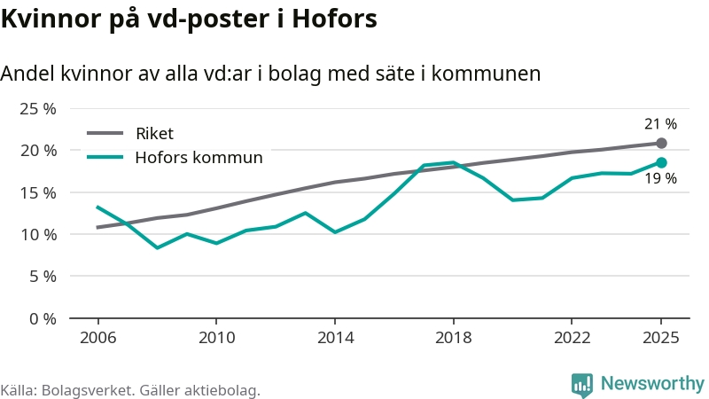 Bara var femte svenskt aktiebolag leds av en kvinna. I Hofors är andelen ännu lägre. Det visar siffror från Bolagsverket.