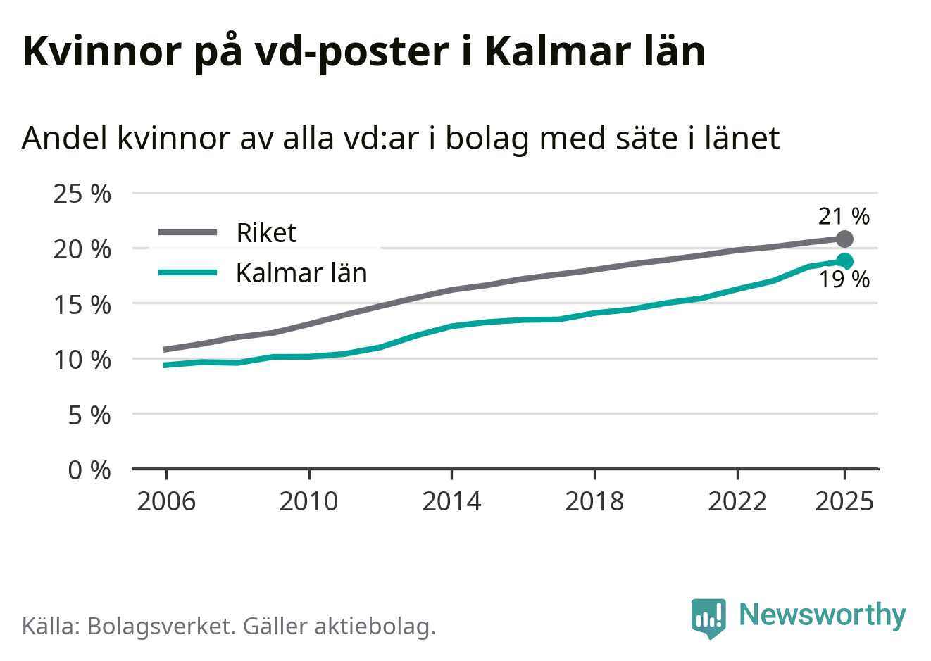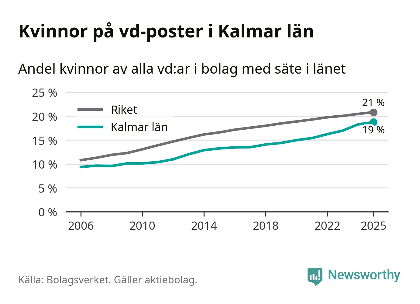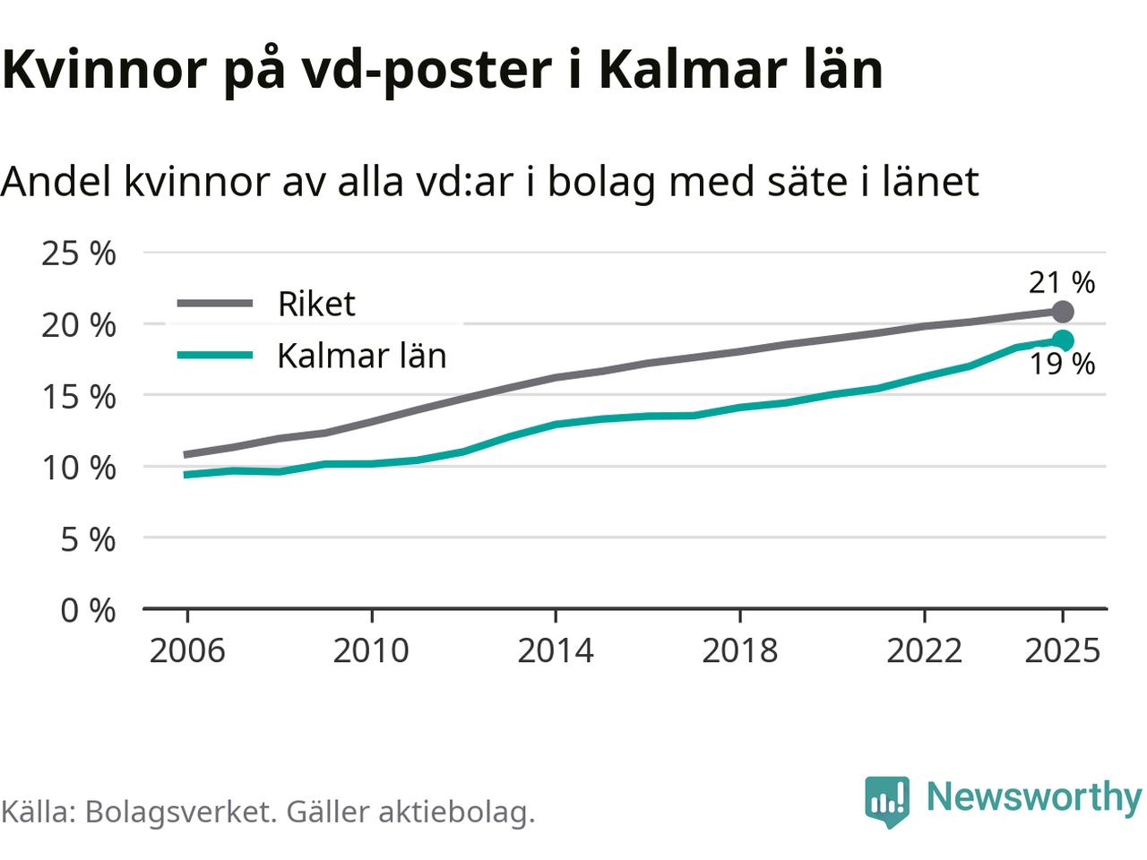 Bara var femte svenskt aktiebolag leds av en kvinna. I Kalmar län är andelen ännu lägre. Det visar siffror från Bolagsverket.