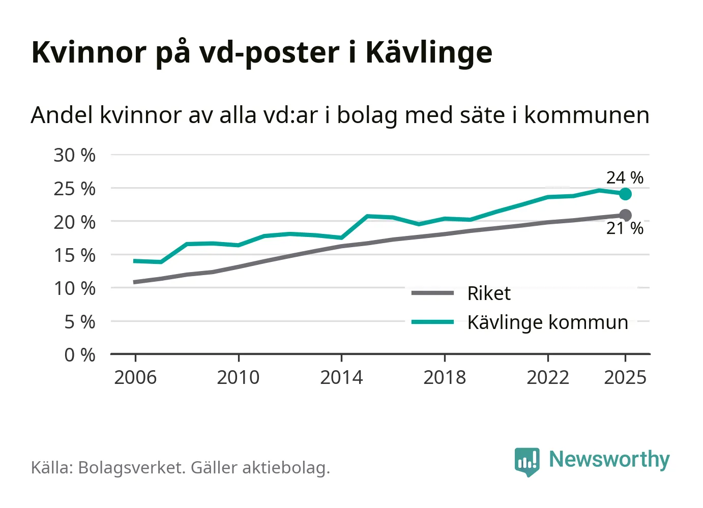 Bara var femte svenskt aktiebolag leds av en kvinna. Men i Kävlinge är andelen något högre. Det visar siffror från Bolagsverket.