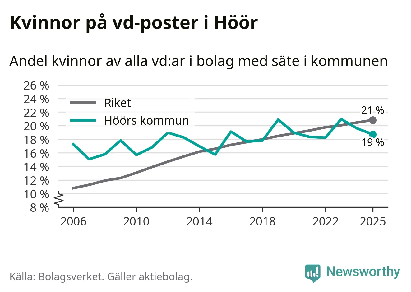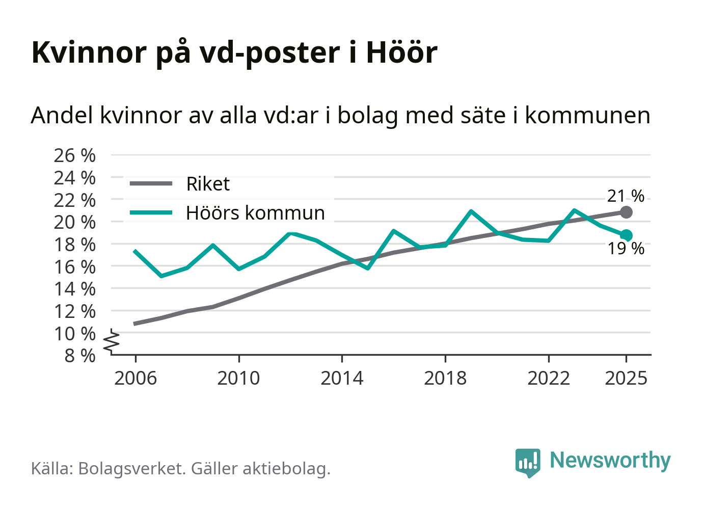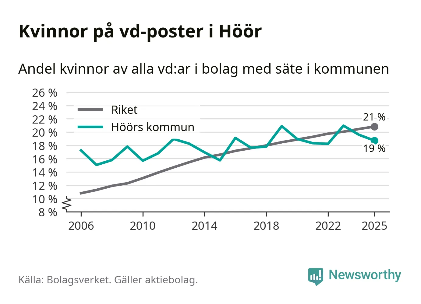 Bara var femte svenskt aktiebolag leds av en kvinna. I Höör är andelen ännu lägre. Det visar siffror från Bolagsverket.