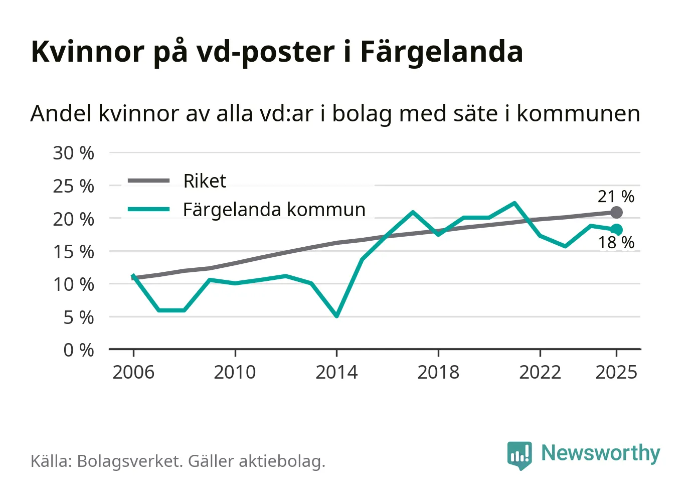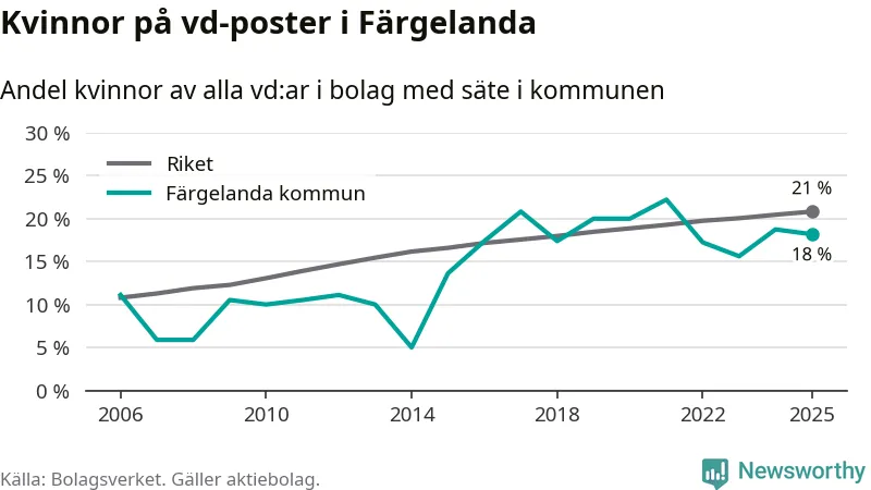 Bara var femte svenskt aktiebolag leds av en kvinna. I Färgelanda är andelen ännu lägre. Det visar siffror från Bolagsverket.