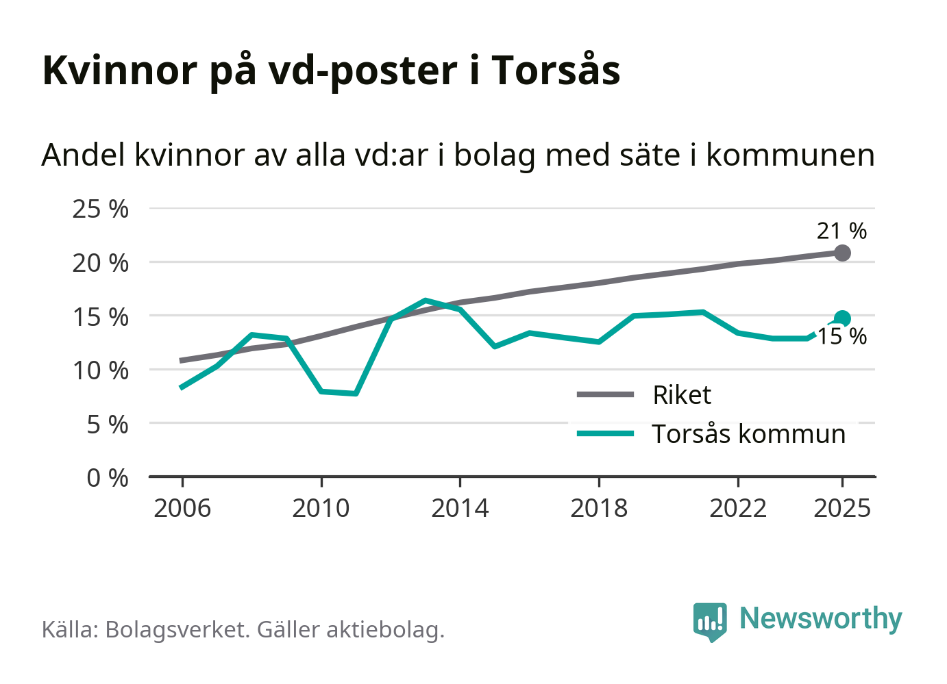 Bara var femte svenskt aktiebolag leds av en kvinna. I Torsås är andelen ännu lägre. Det visar siffror från Bolagsverket.