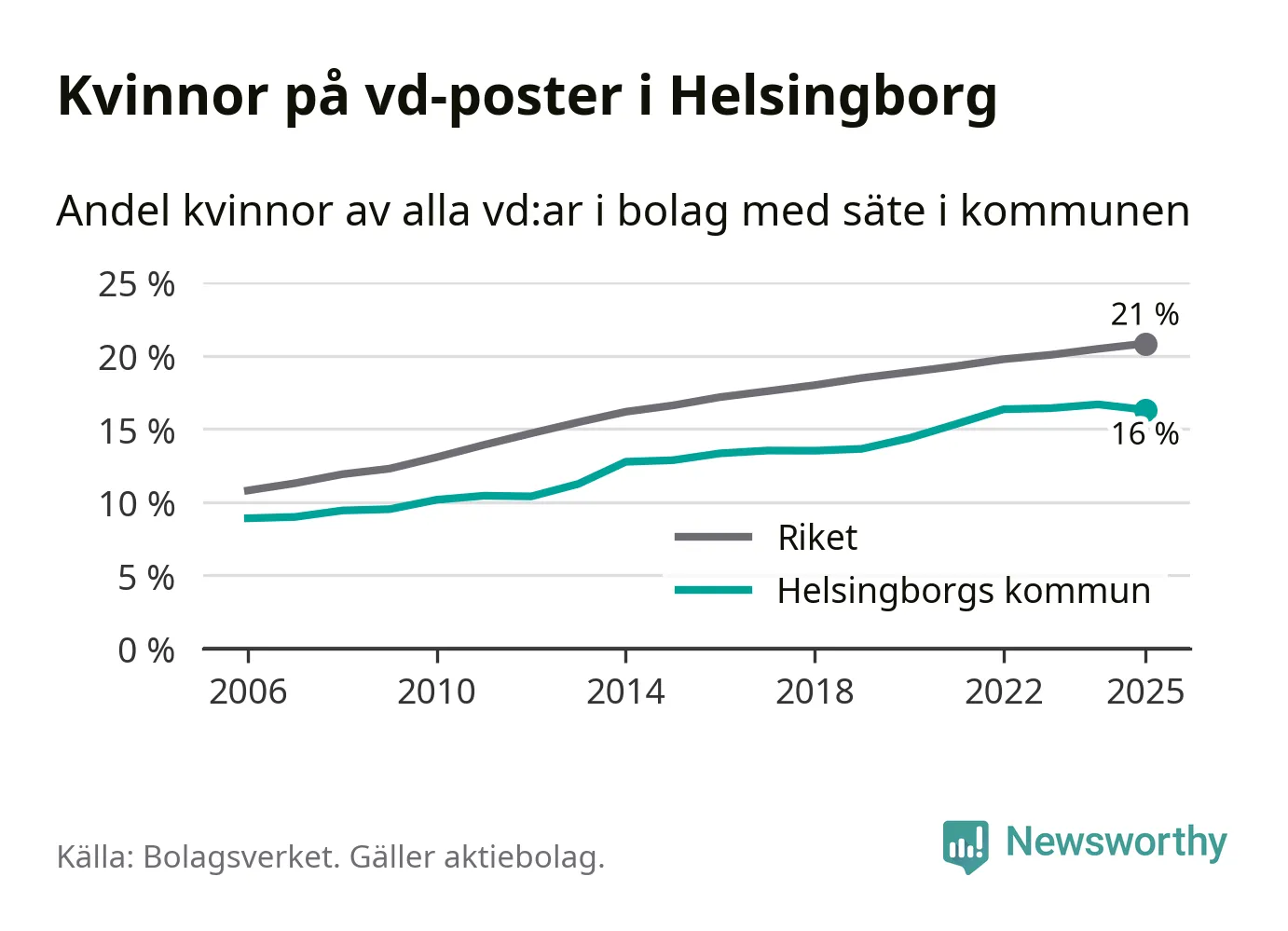 Bara var femte svenskt aktiebolag leds av en kvinna. I Helsingborg är andelen ännu lägre. Det visar siffror från Bolagsverket.