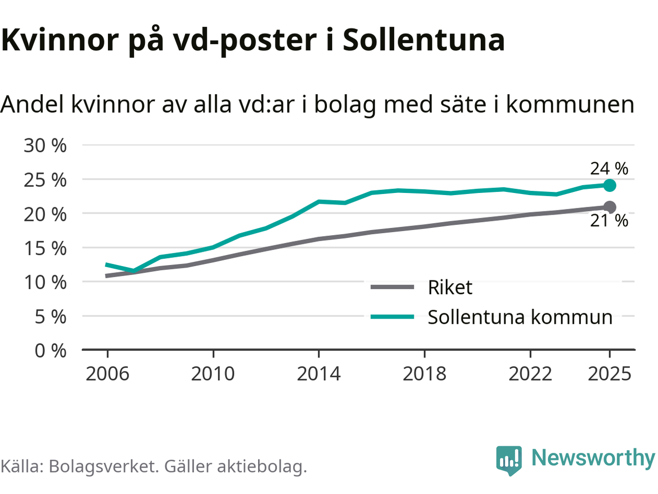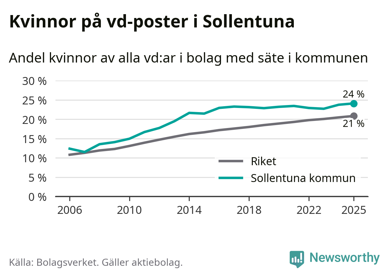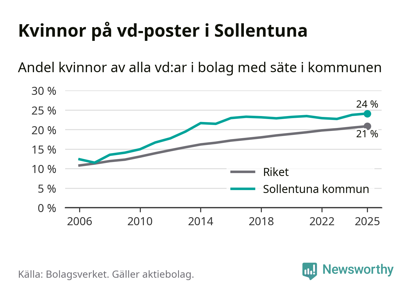Bara var femte svenskt aktiebolag leds av en kvinna. Men i Sollentuna är andelen något högre. Det visar siffror från Bolagsverket.