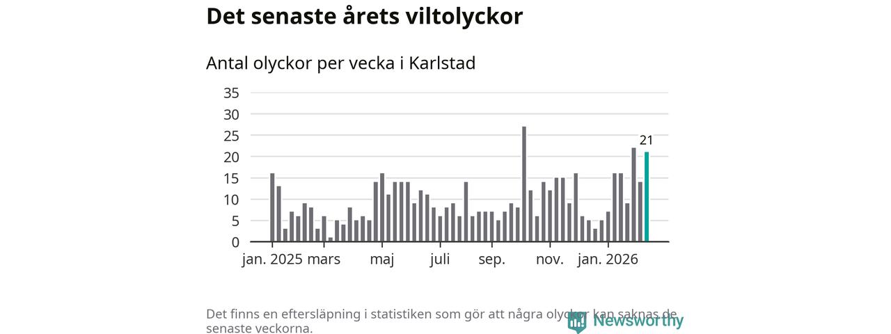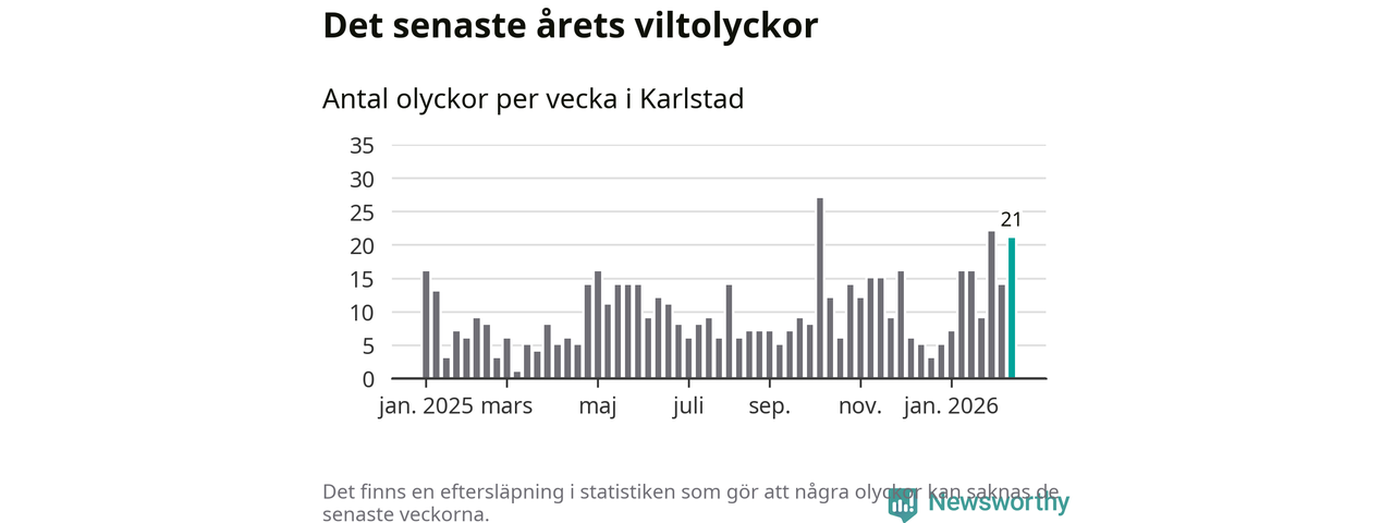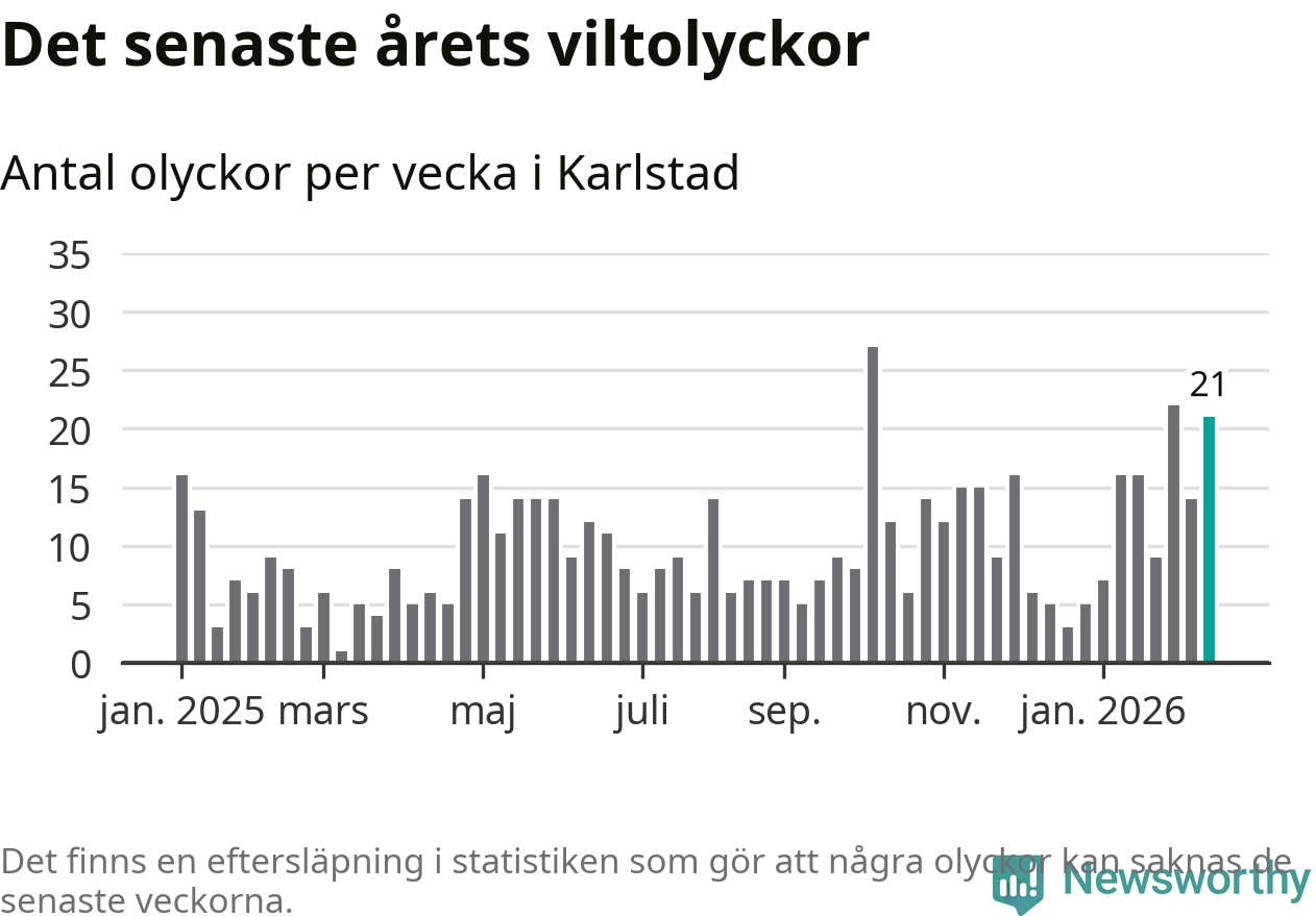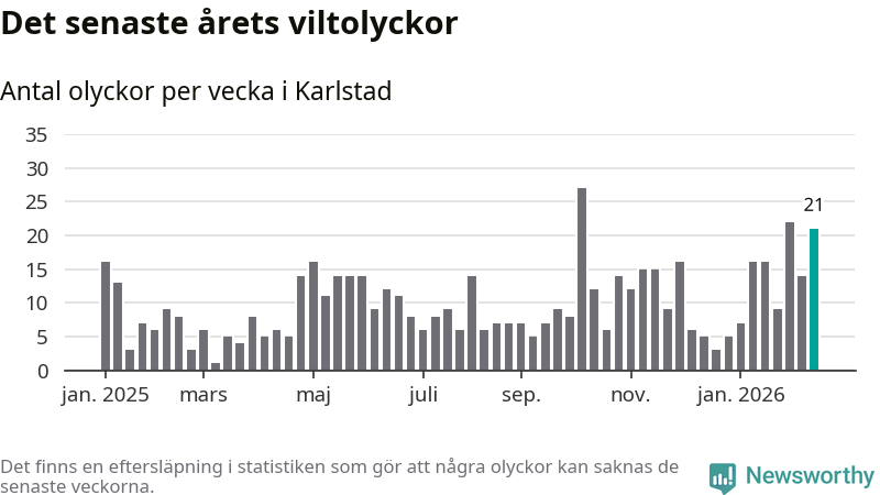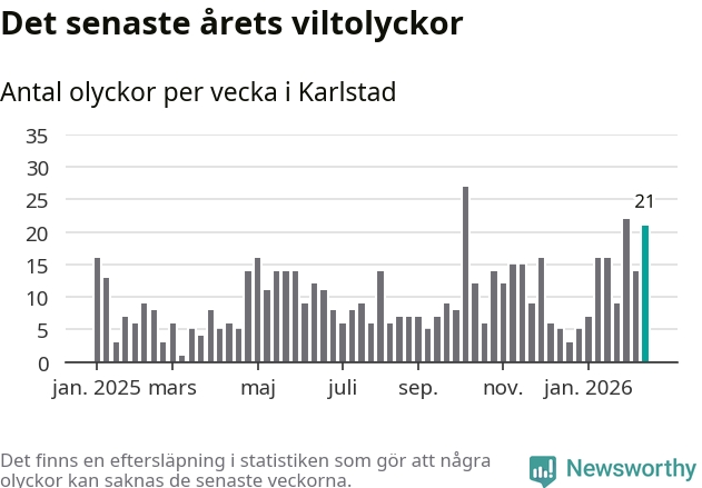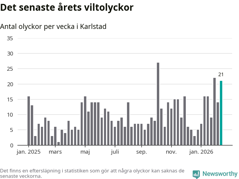 21 olyckor på en enda vecka är också ovanligt många totalt sett. Bara fyra gånger tidigare sedan 2015 har det skett