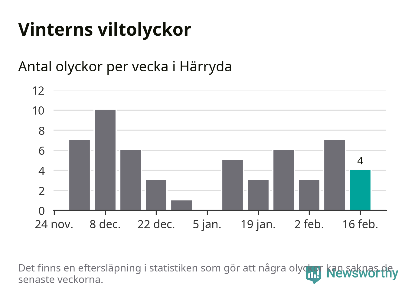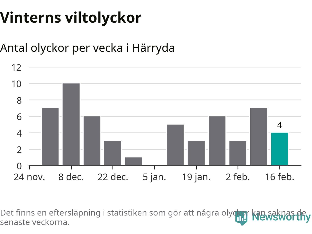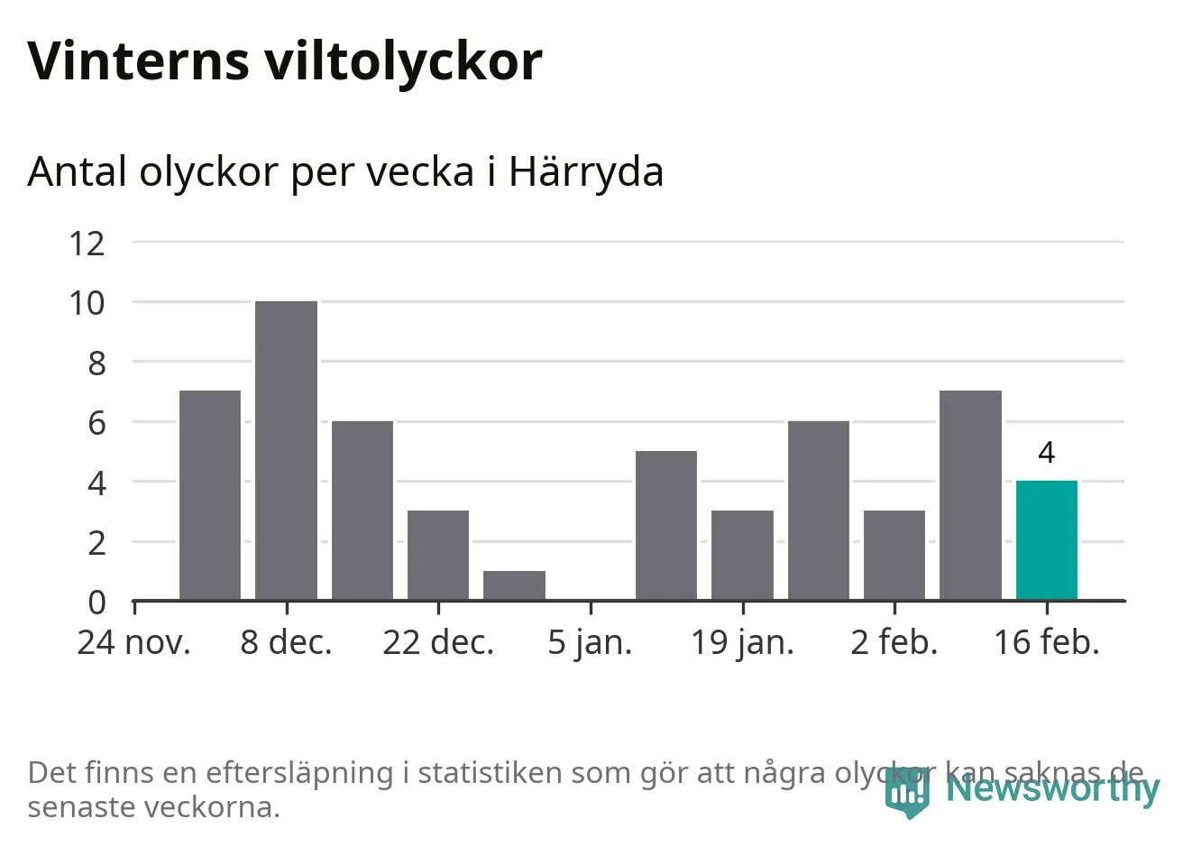 Under vecka 8 rapporterades fyra viltolyckor in i Härryda kommun. Därmed har det inträffat dubbelt så många viltolyckor den här vintern, än det brukar göra en hel genomsnittlig vinter.