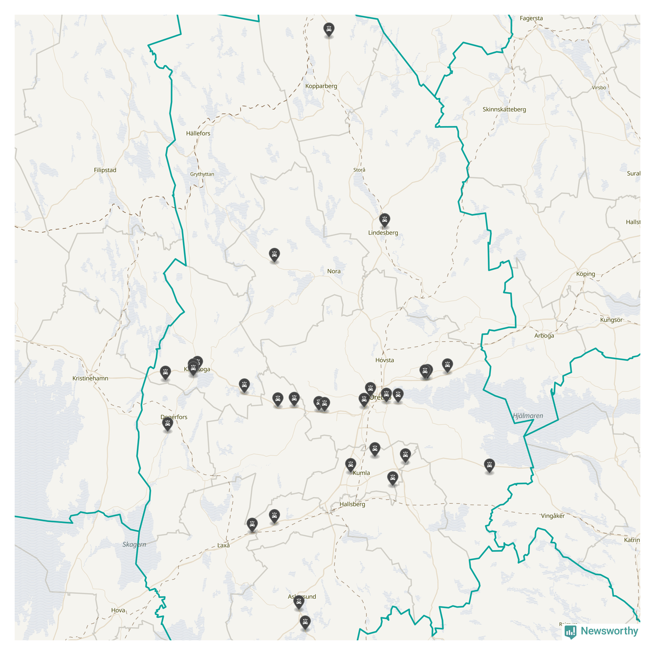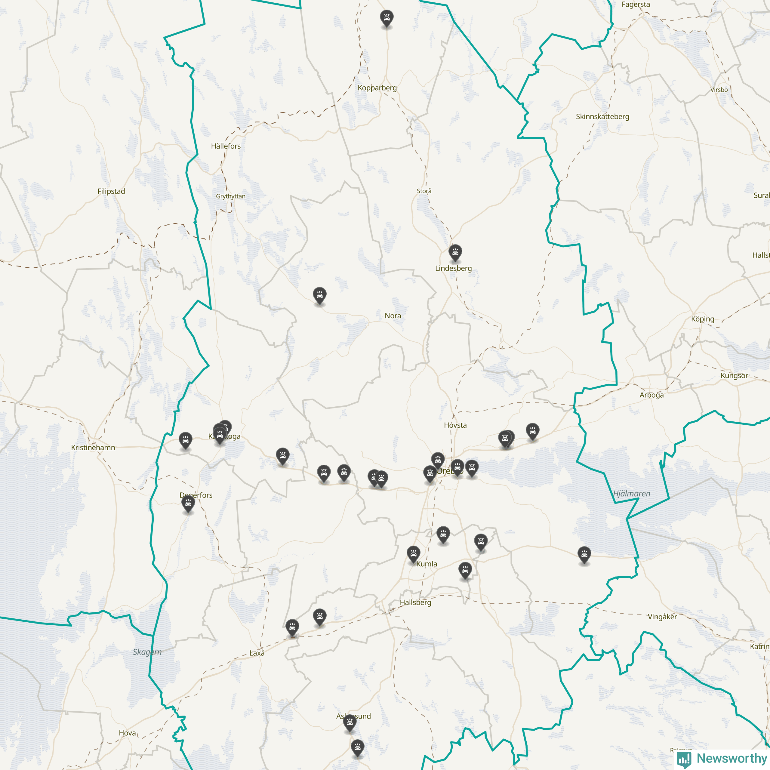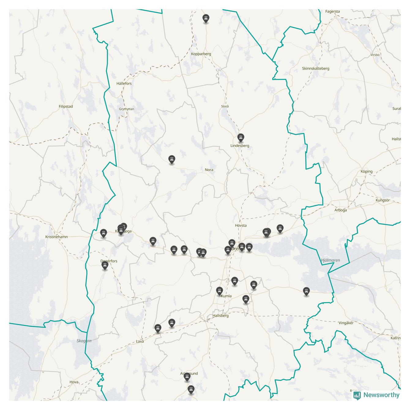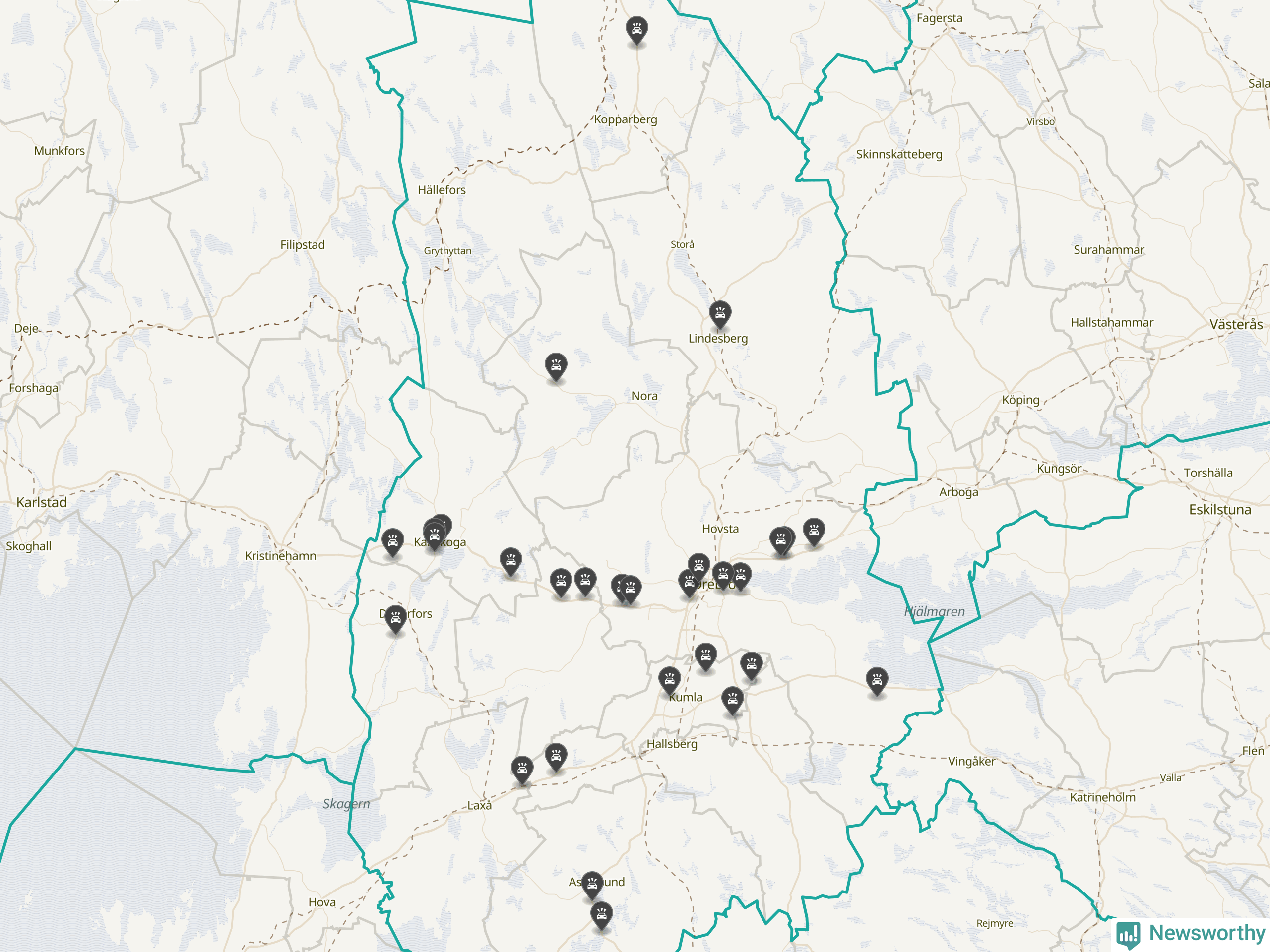 I Örebro län var trafikolyckorna färre än genomsnittligt i februari: 32 olyckor längs de stora vägarna i länet. Det visar data från Trafikverket som Newsworthy sammanställt.