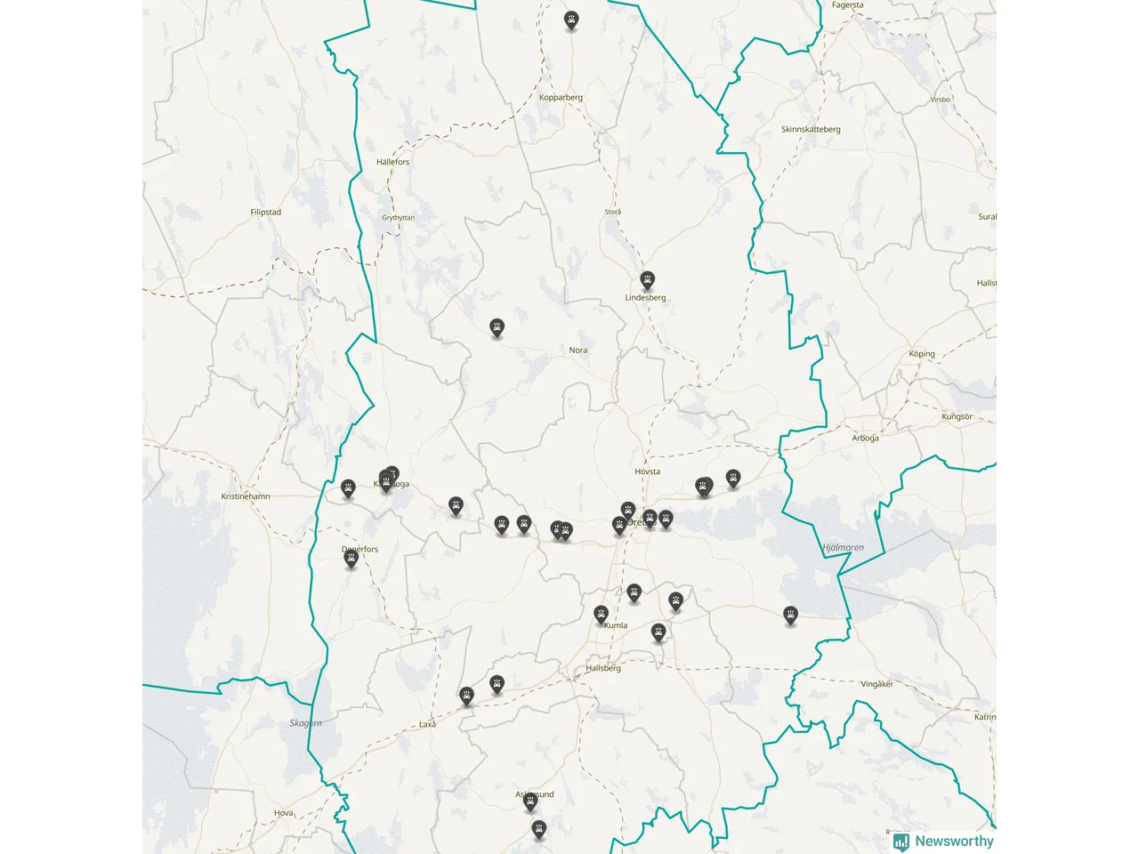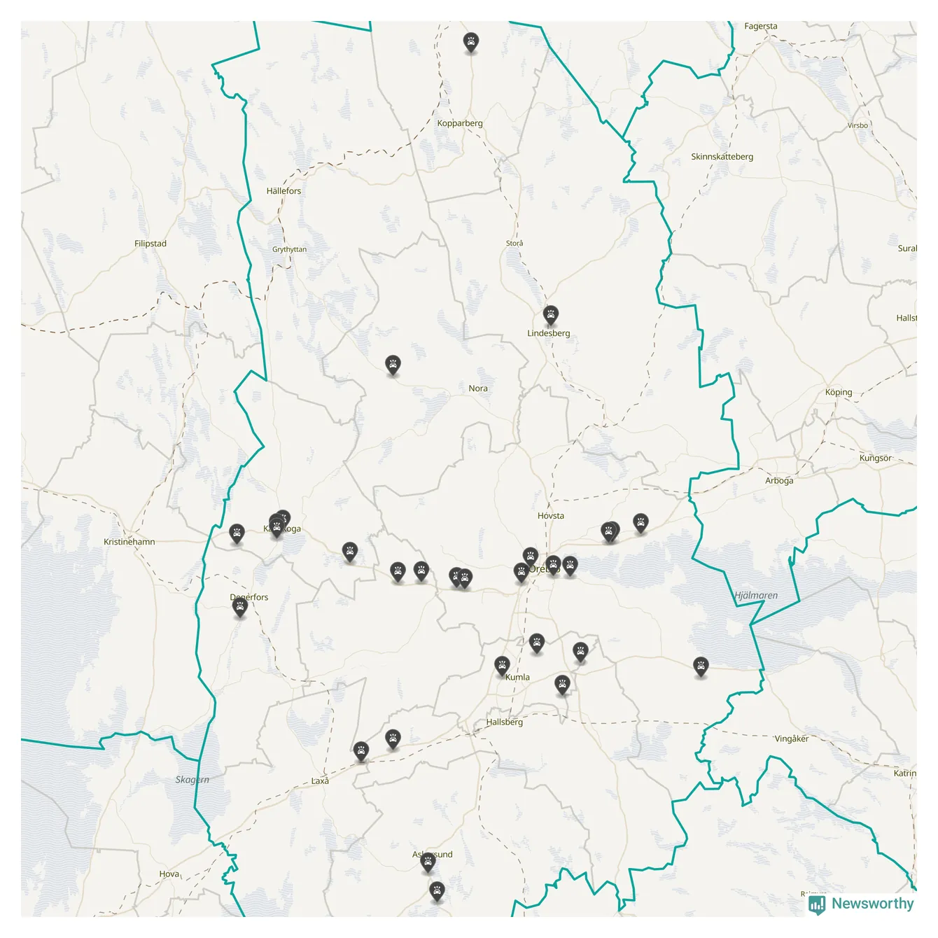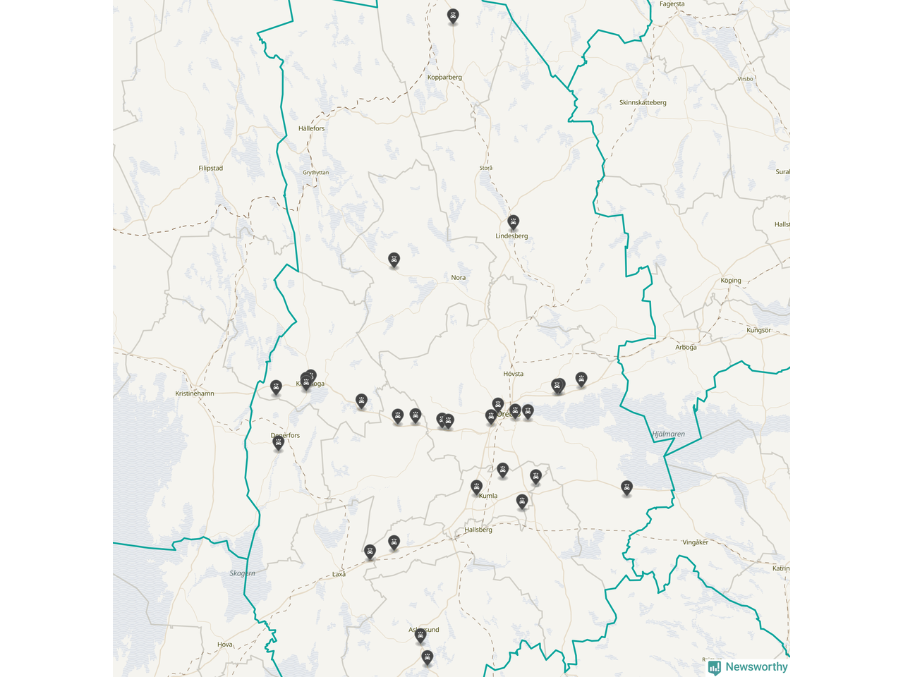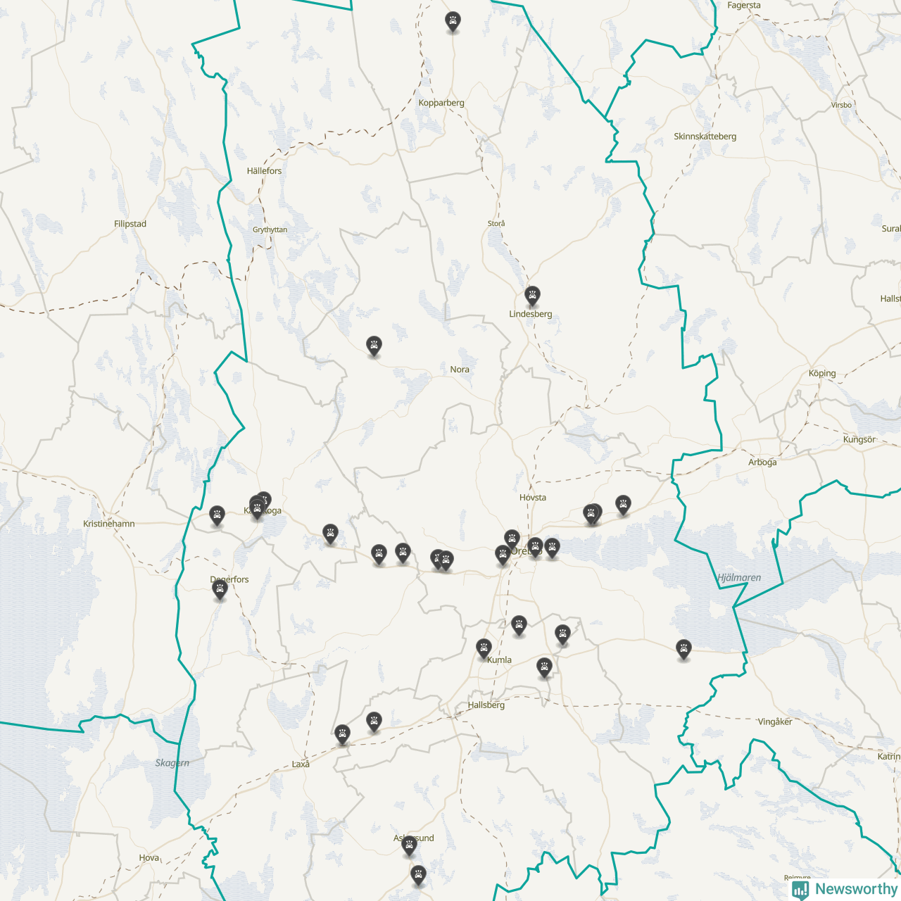 I Örebro län var trafikolyckorna färre än genomsnittligt i februari: 32 olyckor längs de stora vägarna i länet. Det visar data från Trafikverket som Newsworthy sammanställt.