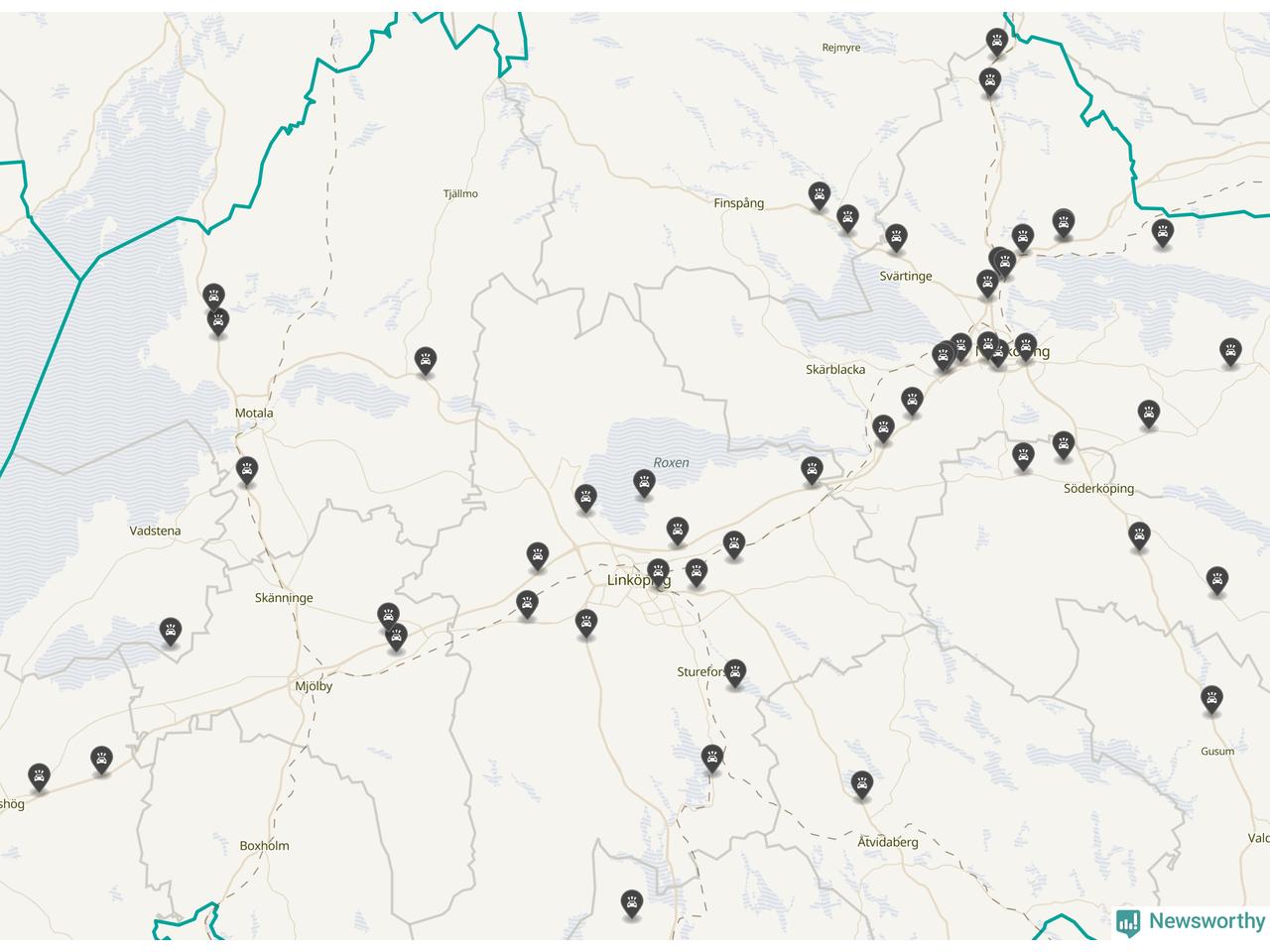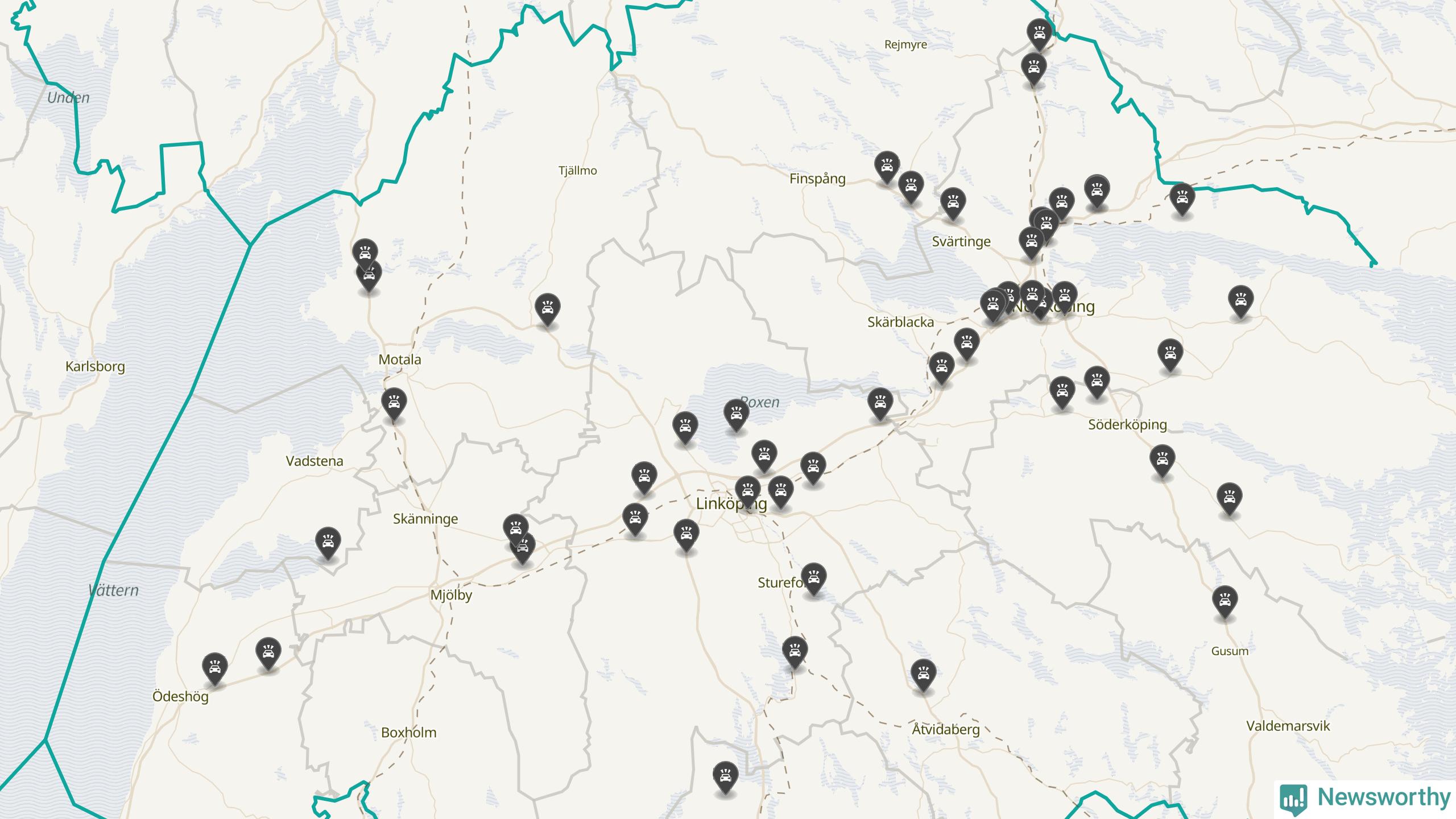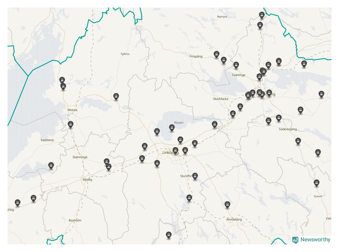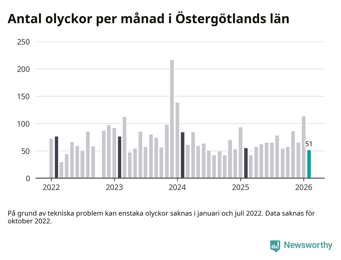 I Östergötlands län var trafikolyckorna färre än genomsnittligt i februari: 51 olyckor längs de stora vägarna i länet. Det visar data från Trafikverket som Newsworthy sammanställt.