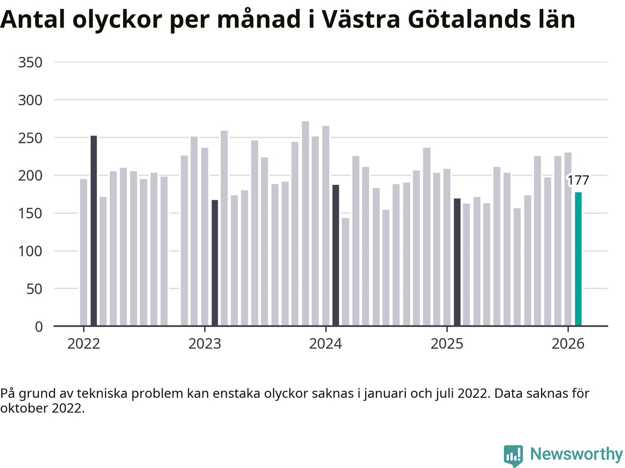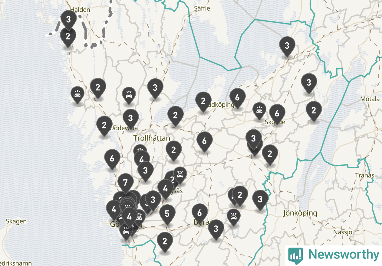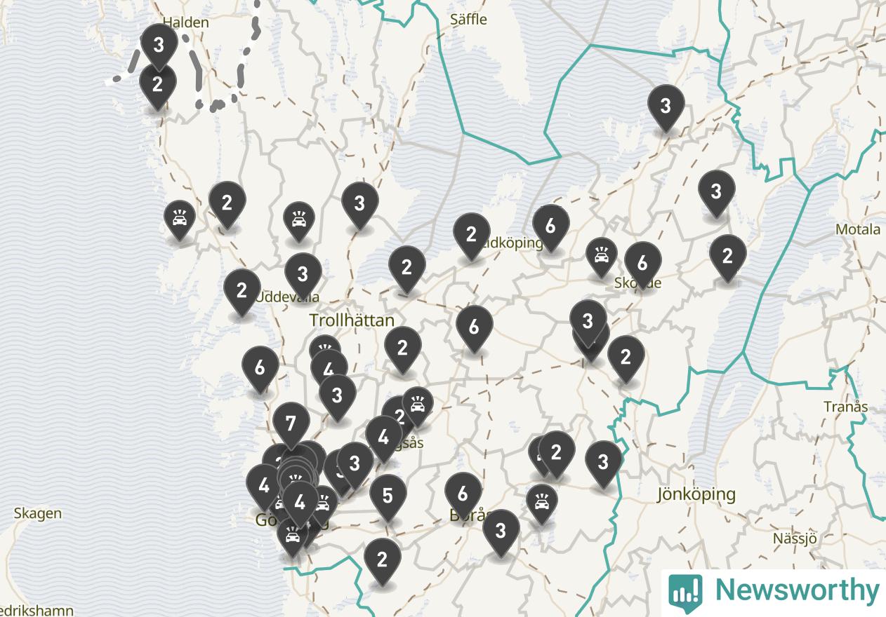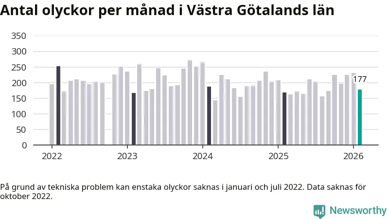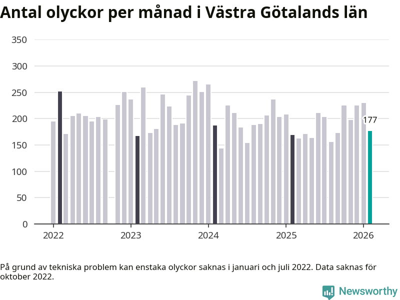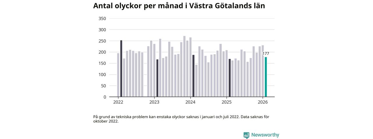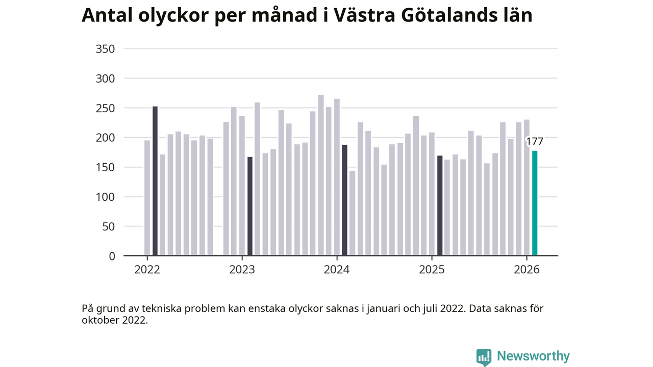 I Västra Götalands län rapporterades 177 längs de stora vägarna i länet under februari, visar data från Trafikverket som Newsworthy sammanställt.