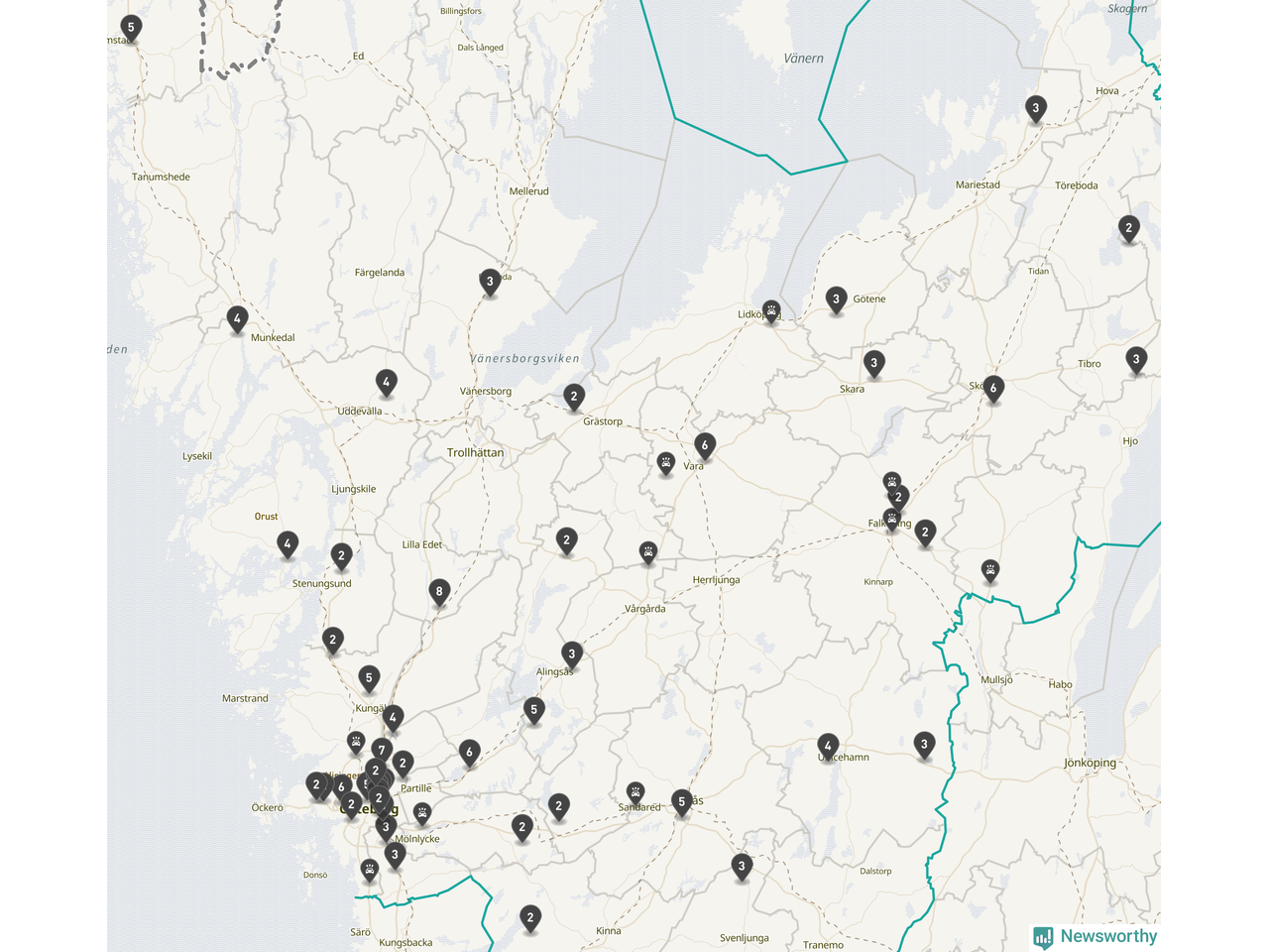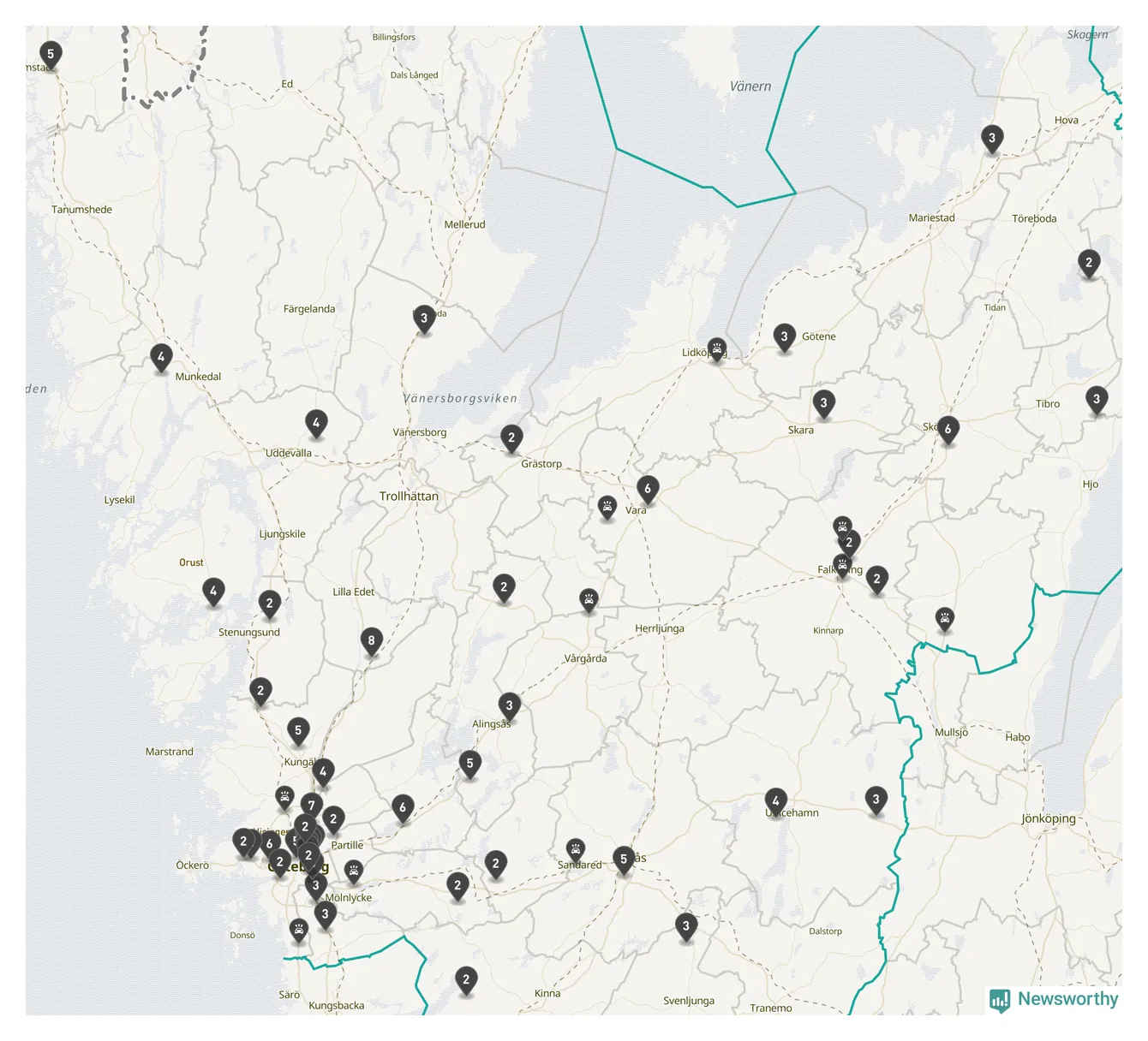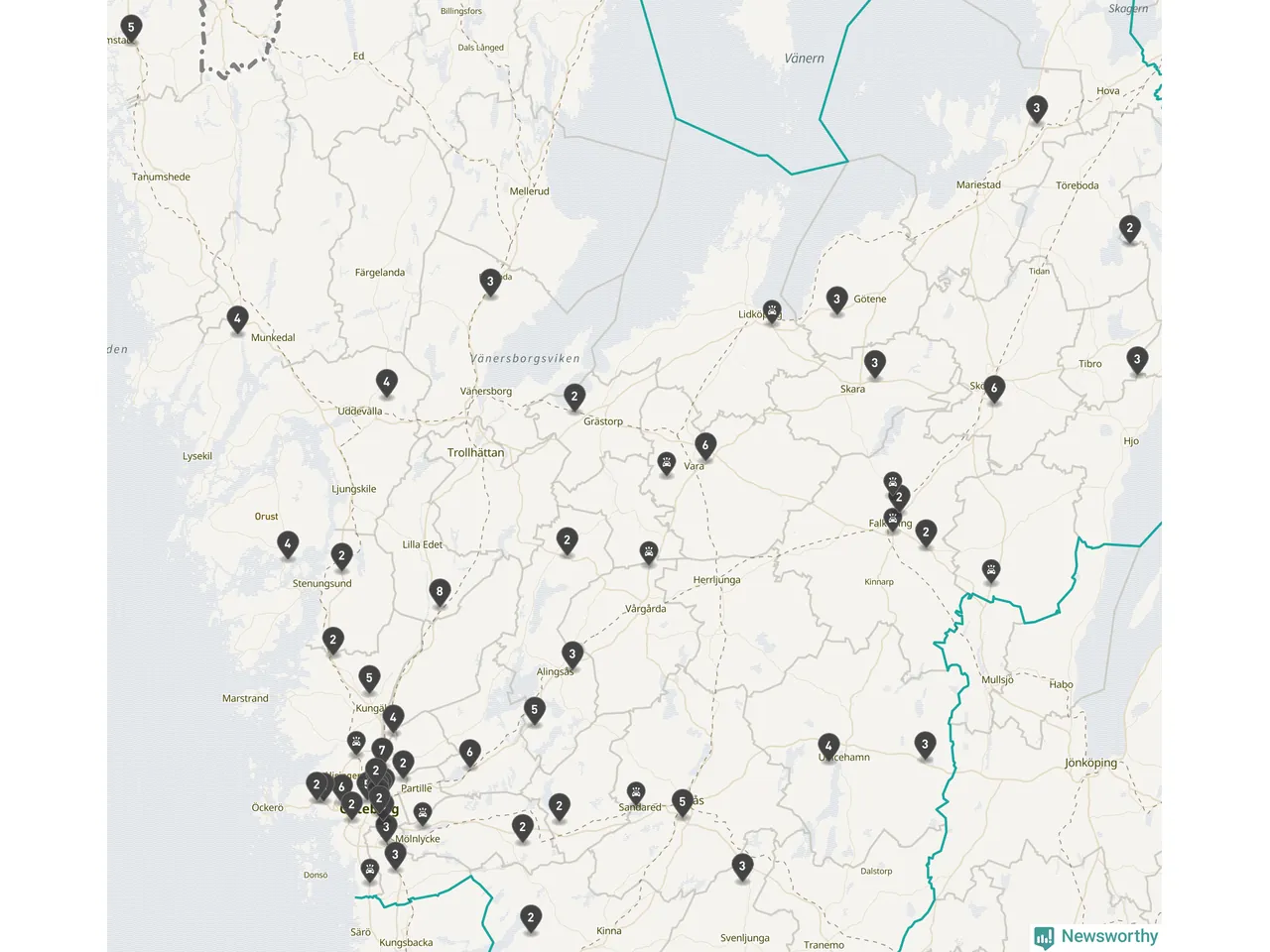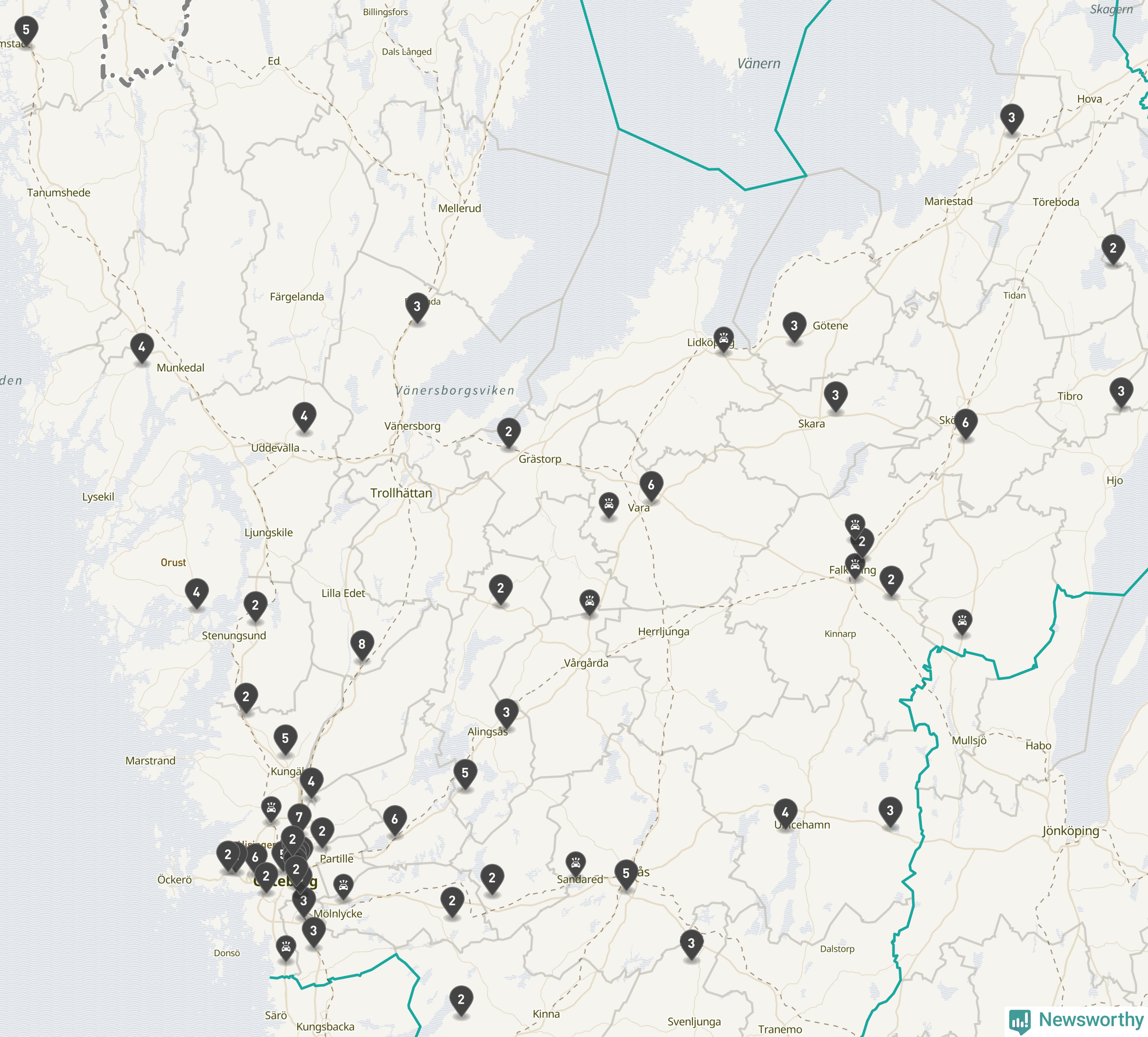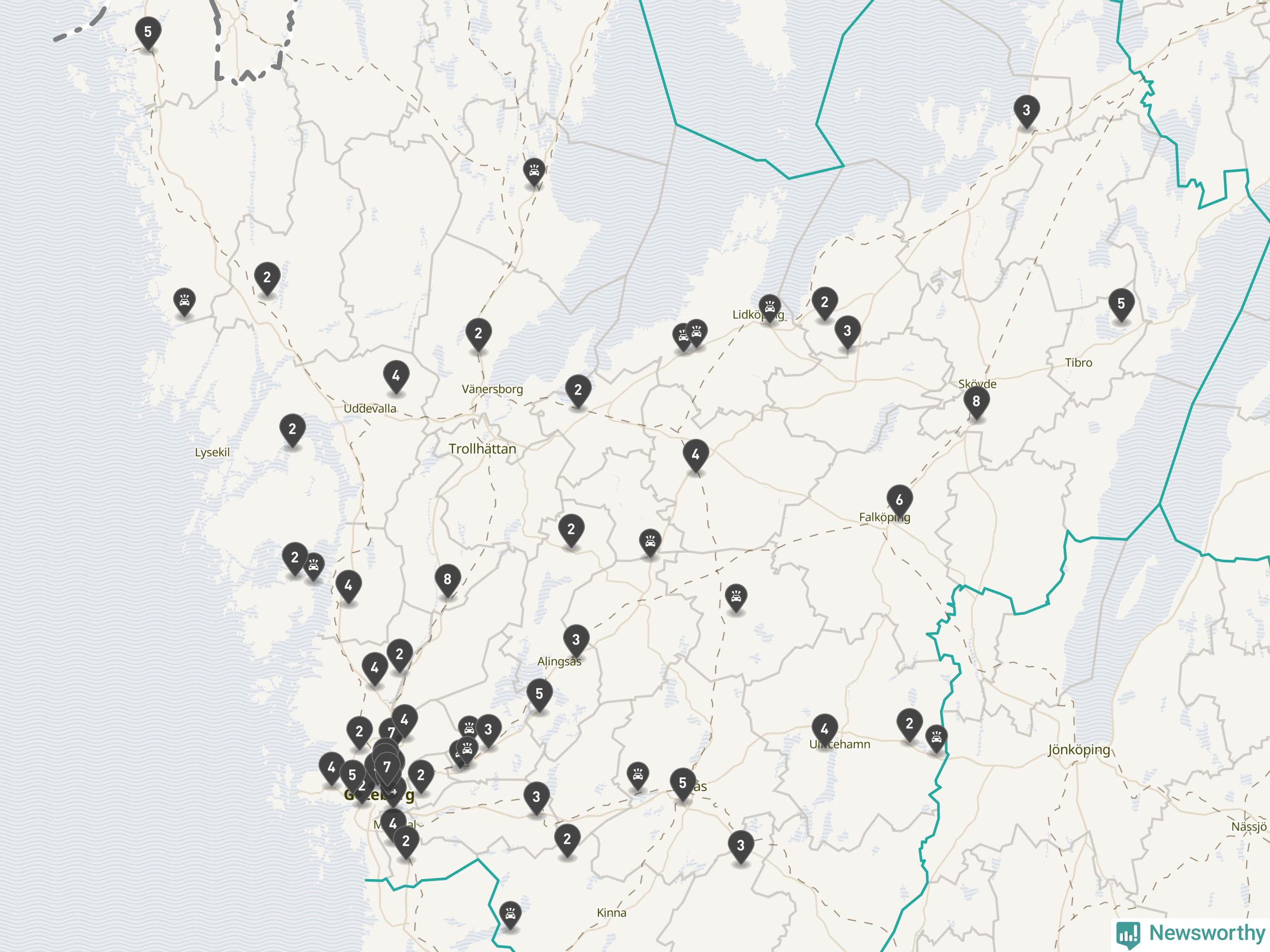 I Västra Götalands län rapporterades 177 längs de stora vägarna i länet under februari, visar data från Trafikverket som Newsworthy sammanställt.