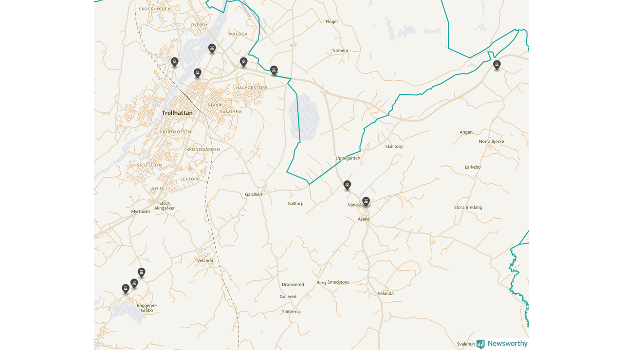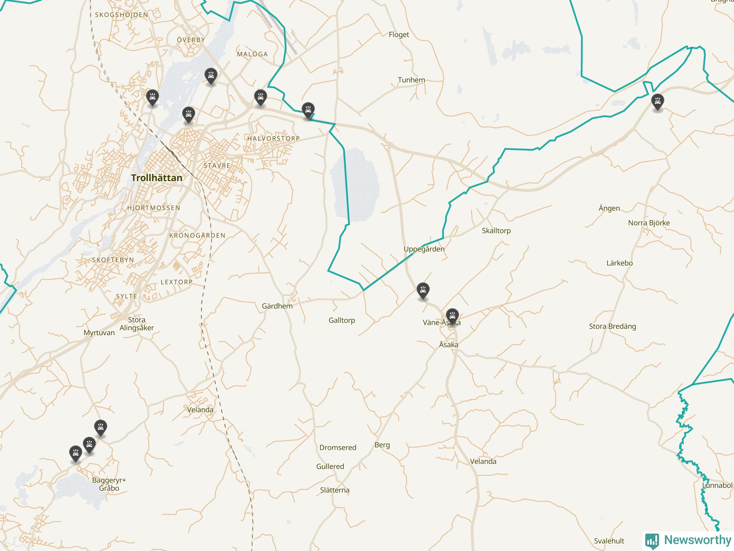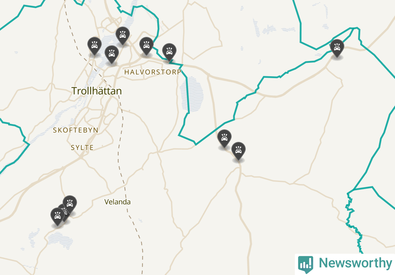 Karta över viltolyckor i Trollhättans kommun