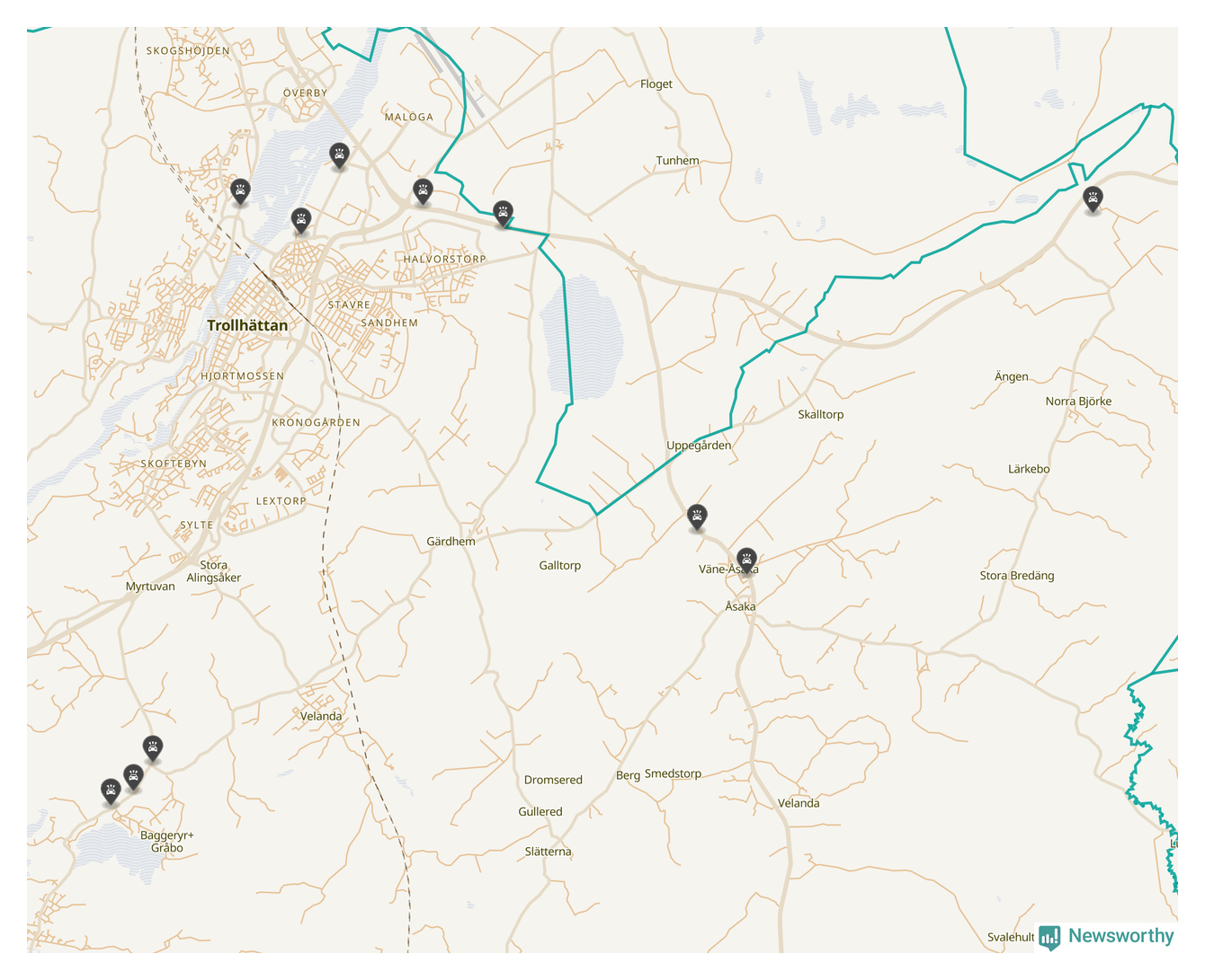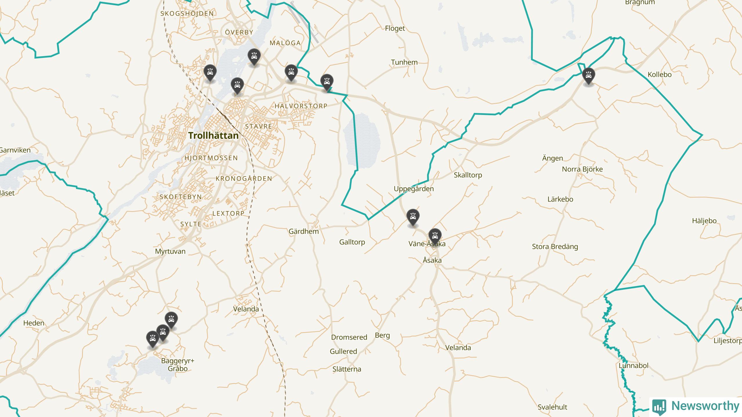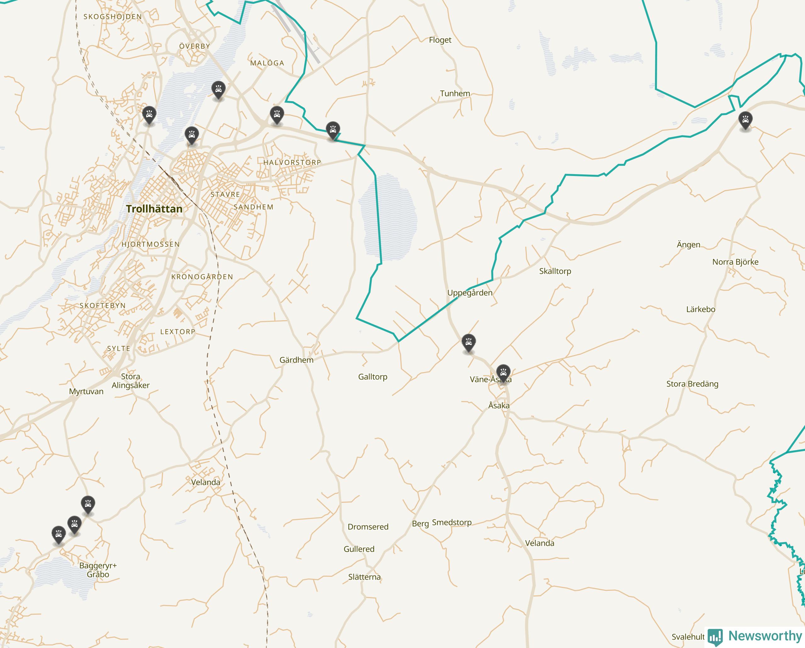 Karta över viltolyckor i Trollhättans kommun