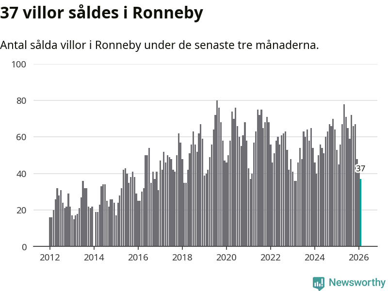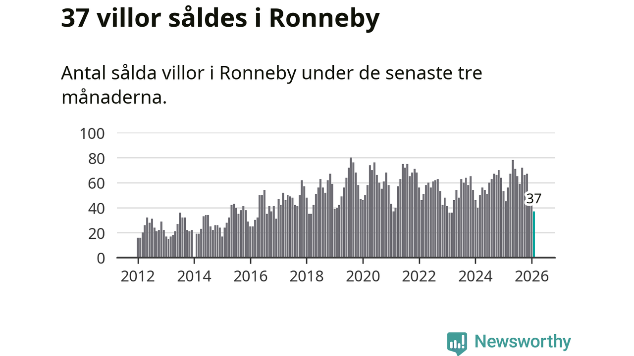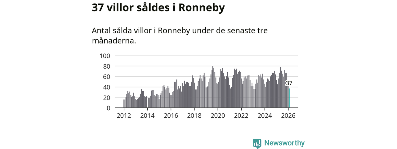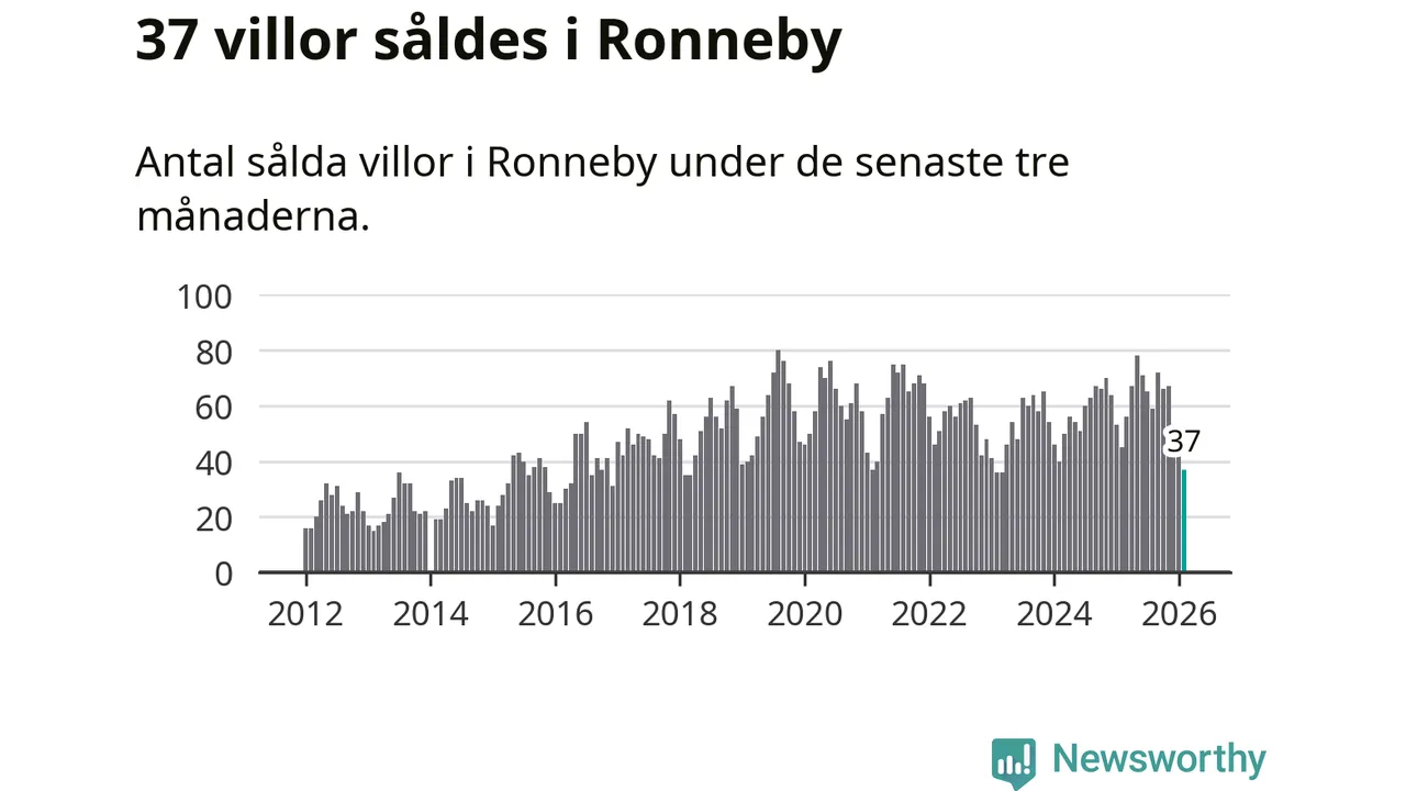 Sammanlagt såldes 37 villor i Ronneby kommun mellan december och februari till ett genomsnittligt pris på 1,6 miljoner kronor. I fjol gjordes 45 affärer vid den här tiden på året.