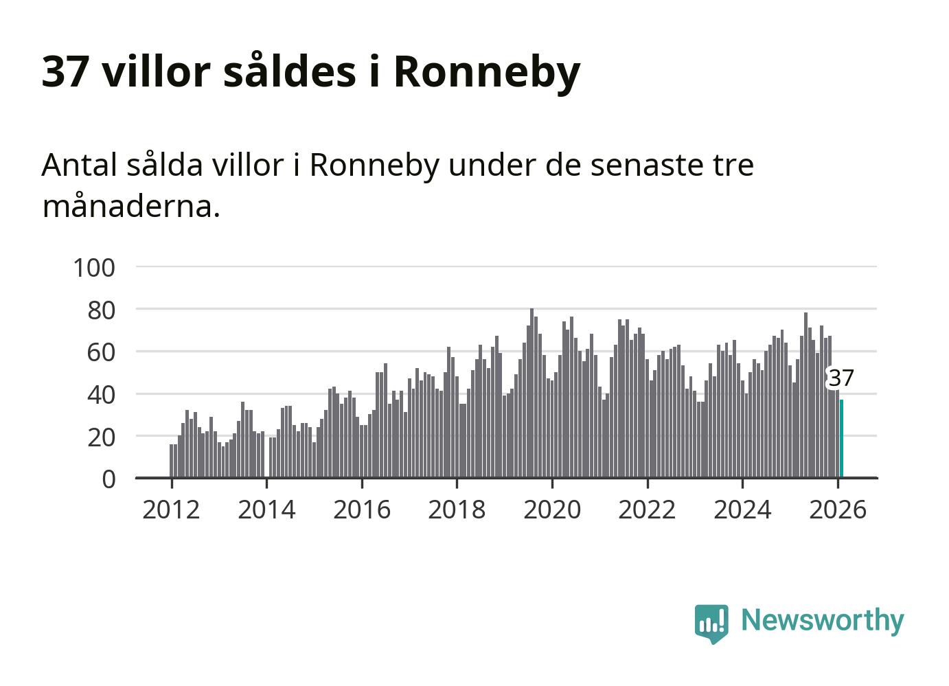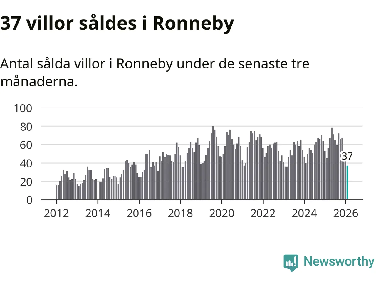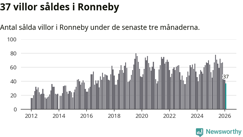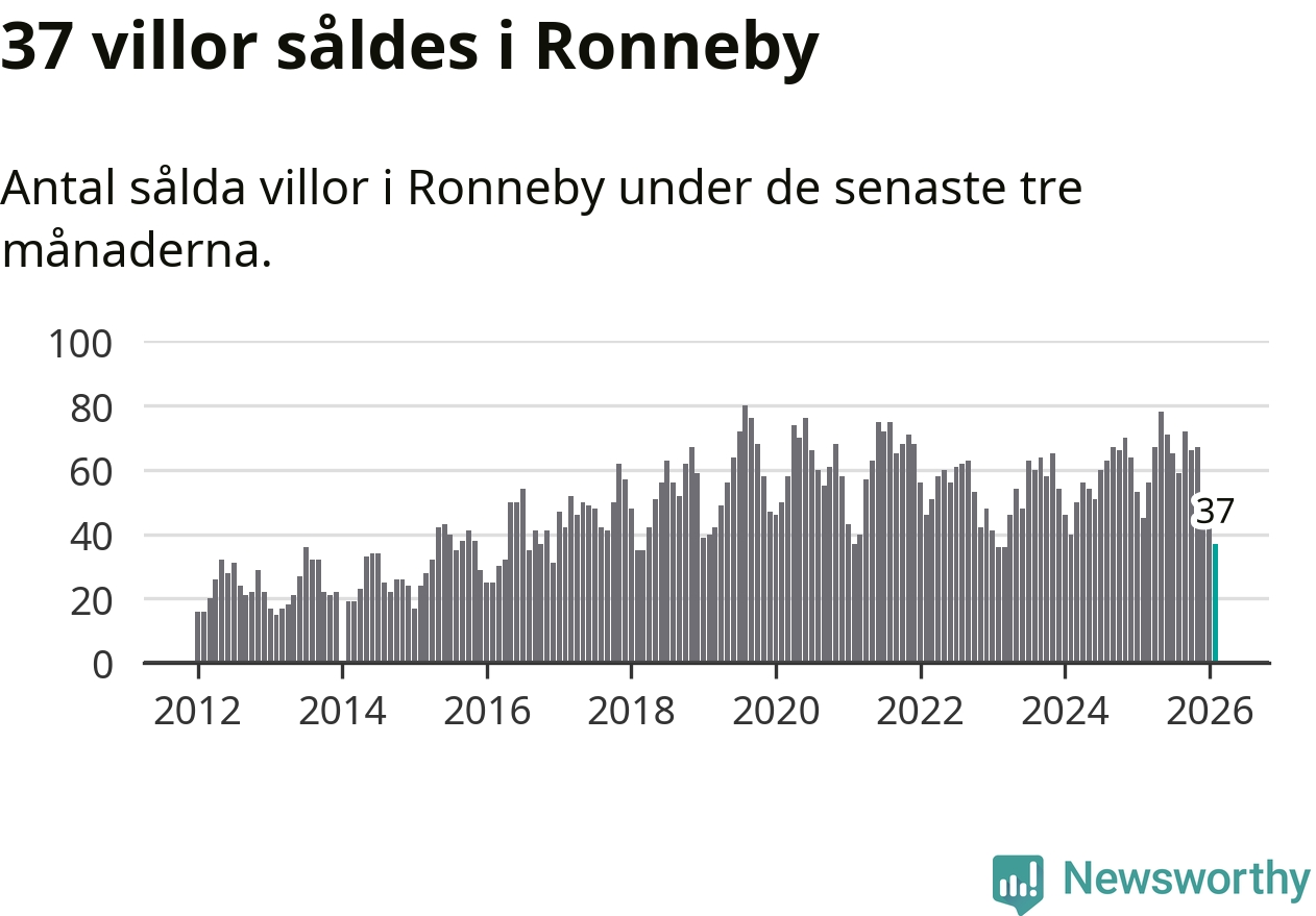 Sammanlagt såldes 37 villor i Ronneby kommun mellan december och februari till ett genomsnittligt pris på 1,6 miljoner kronor. I fjol gjordes 45 affärer vid den här tiden på året.