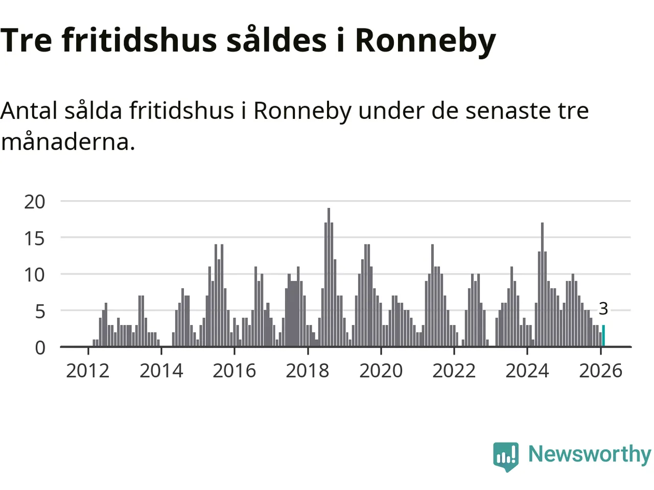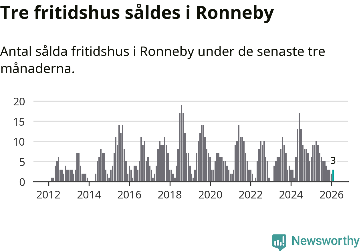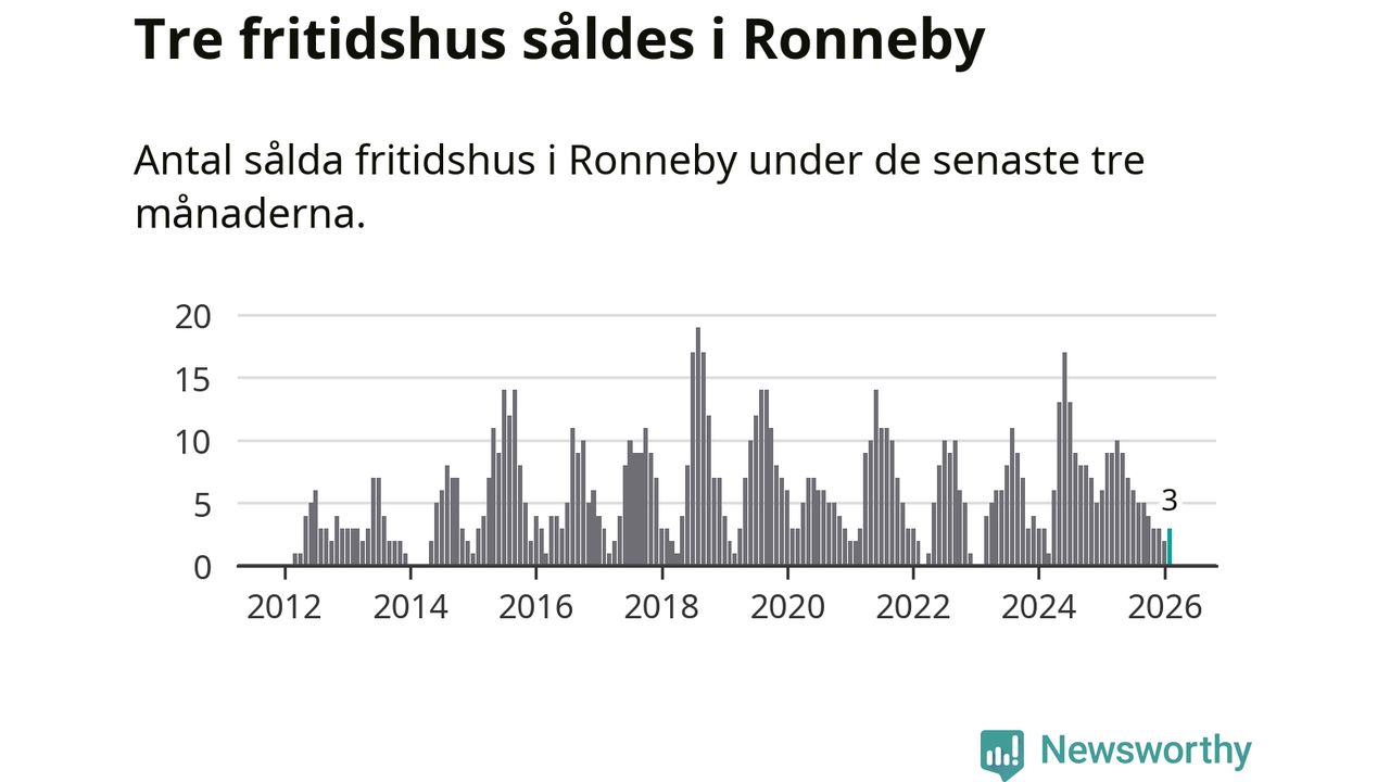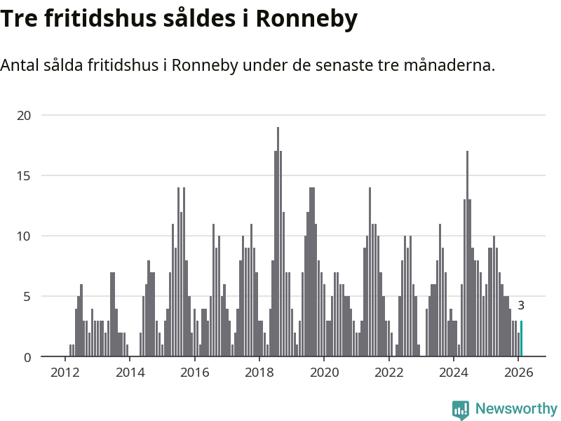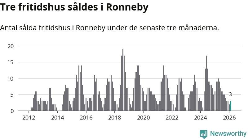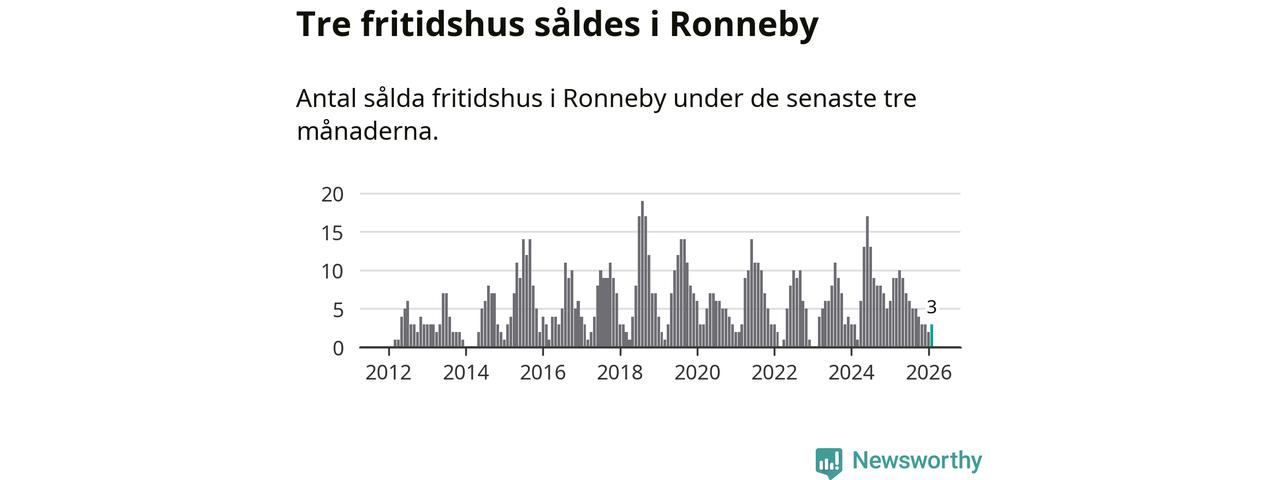 Mellan december och februari gjordes sammanlagt tre affärer med fritidshus i Ronneby kommun. Det kan jämföras med nio vid motsvarande tid i fjol.