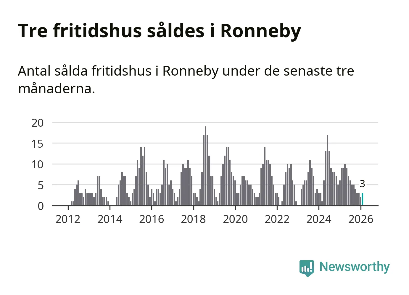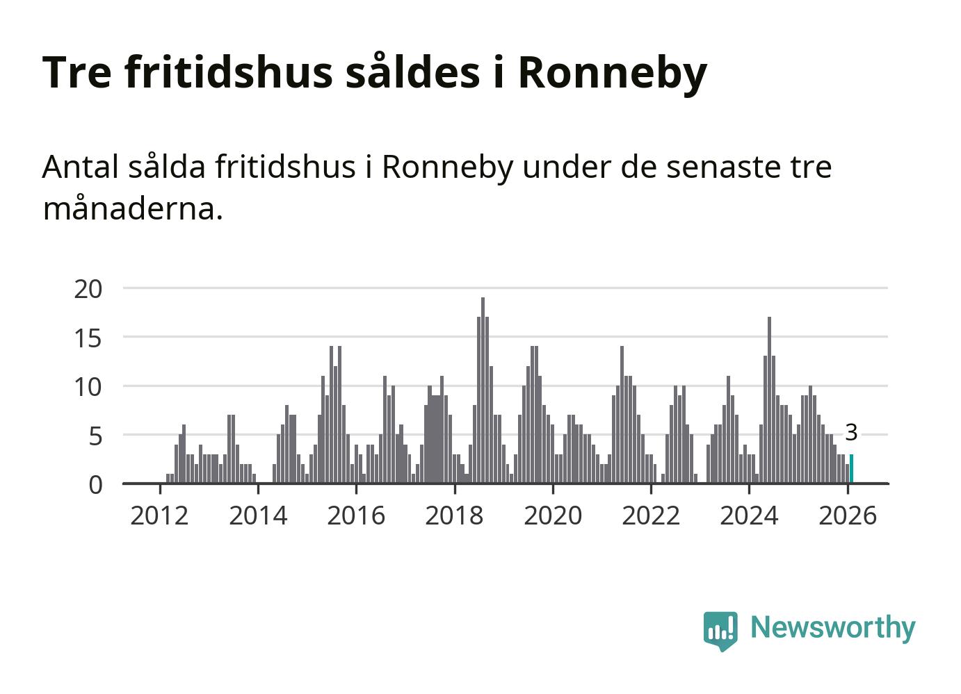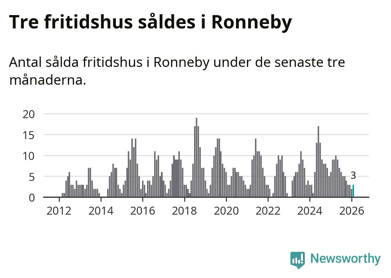 Mellan december och februari gjordes sammanlagt tre affärer med fritidshus i Ronneby kommun. Det kan jämföras med nio vid motsvarande tid i fjol.