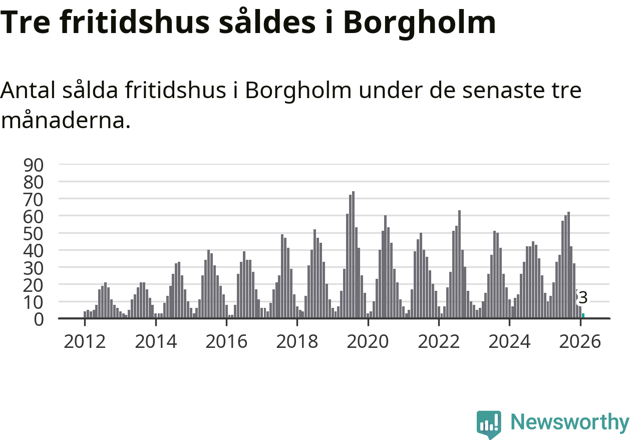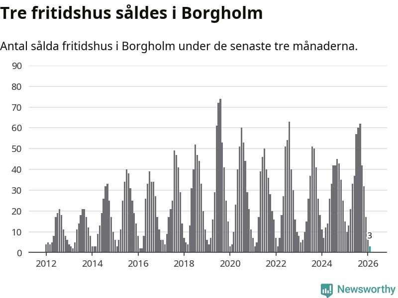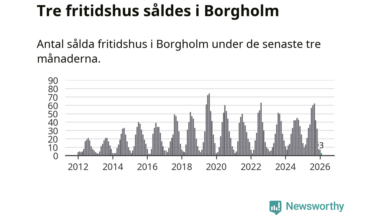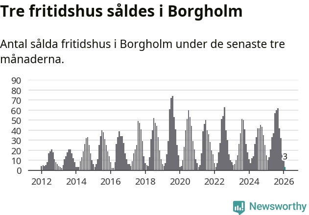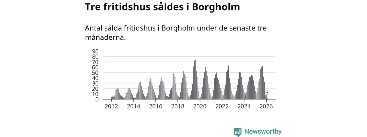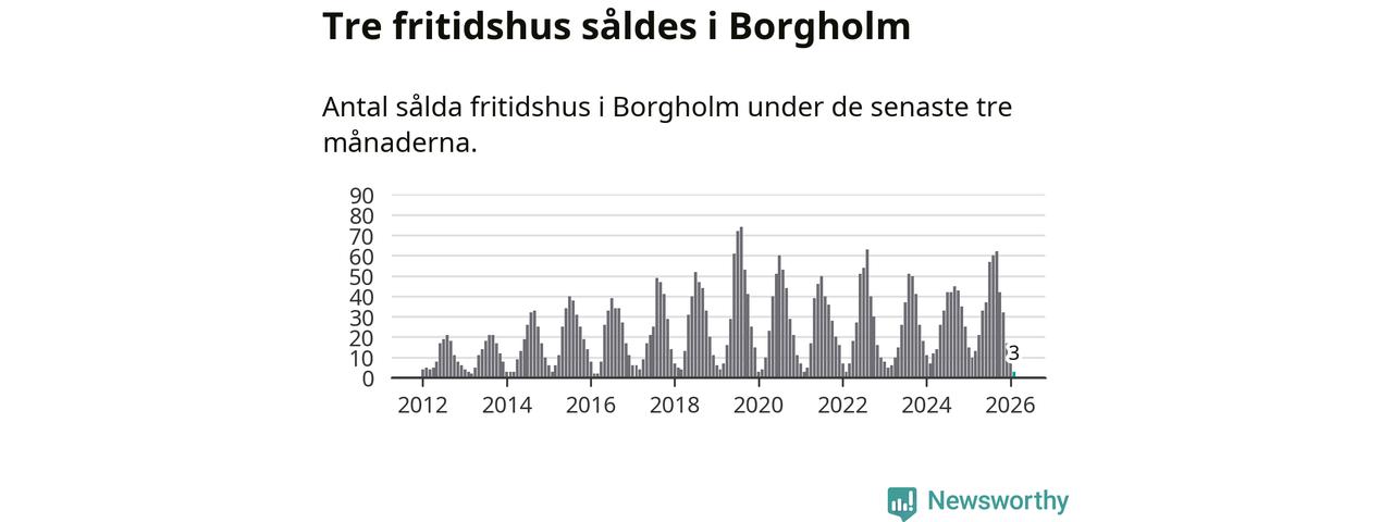 Sammanlagt såldes tre fritidshus i Borgholms kommun mellan december 2025 och februari till ett genomsnittligt pris på 2,6 miljoner kronor. Det är fler försäljningar än på fyra år. I fjol gjordes tio affärer vid den här tiden på året.