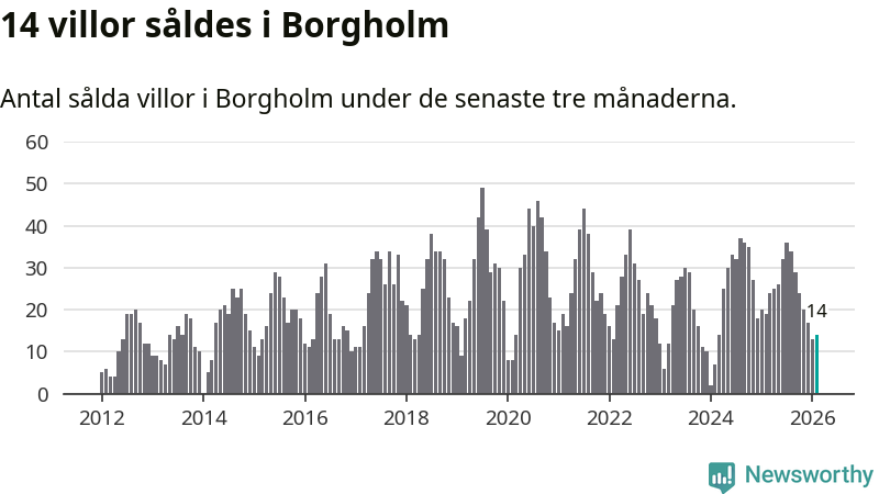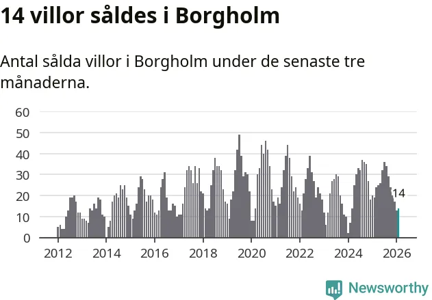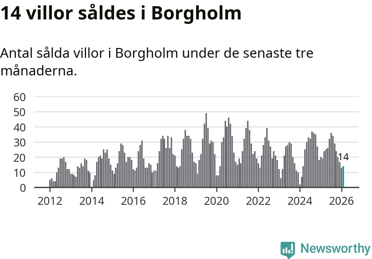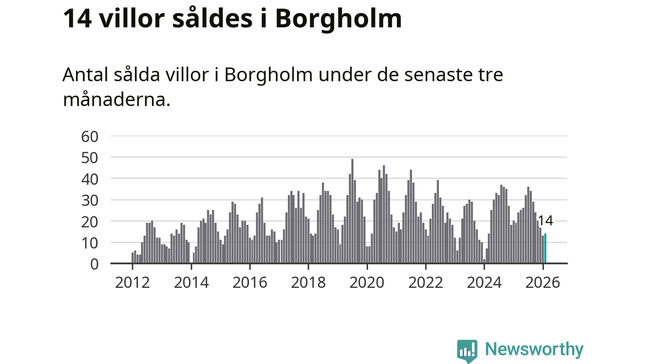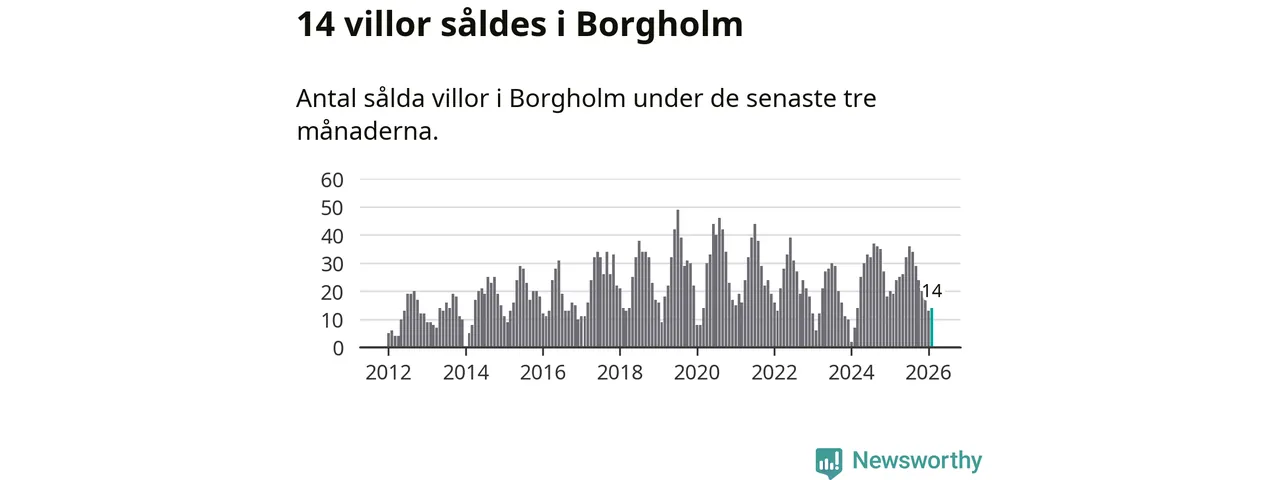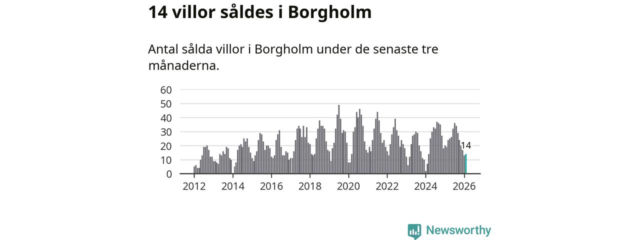 Mellan december och februari gjordes sammanlagt 14 affärer med villor i Borgholms kommun. Det kan jämföras med 19 vid motsvarande tid i fjol.