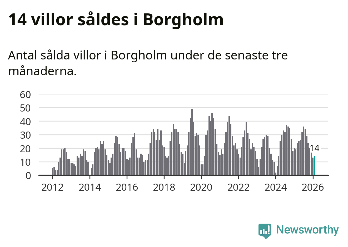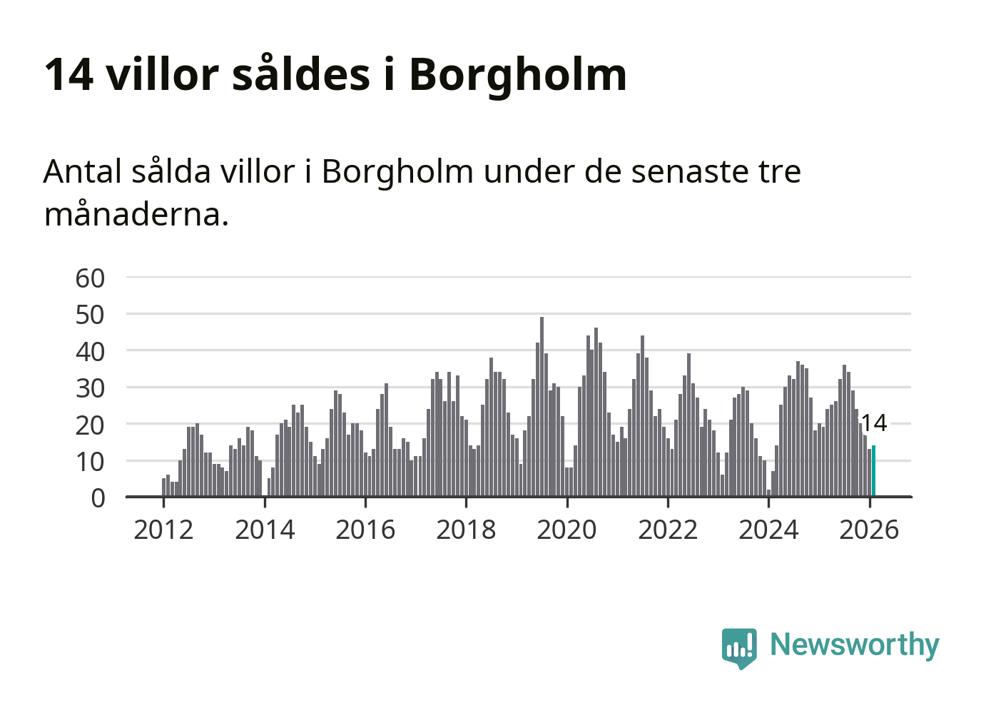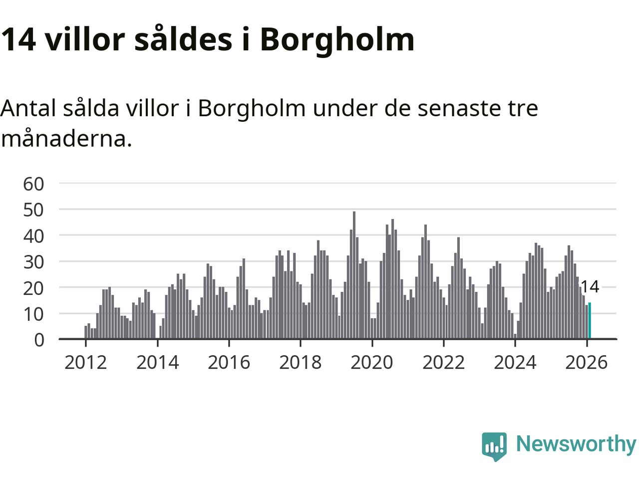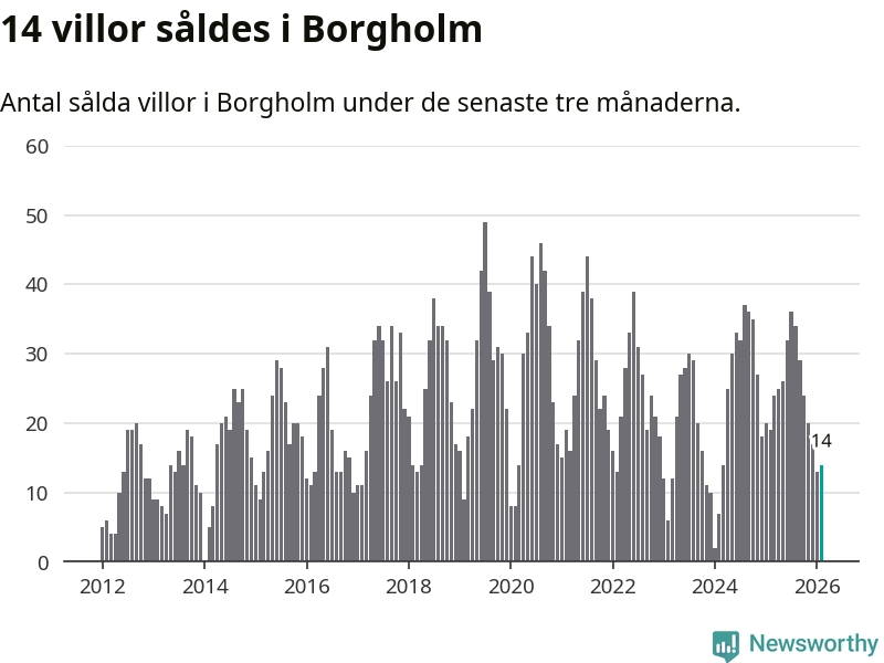 Mellan december och februari gjordes sammanlagt 14 affärer med villor i Borgholms kommun. Det kan jämföras med 19 vid motsvarande tid i fjol.